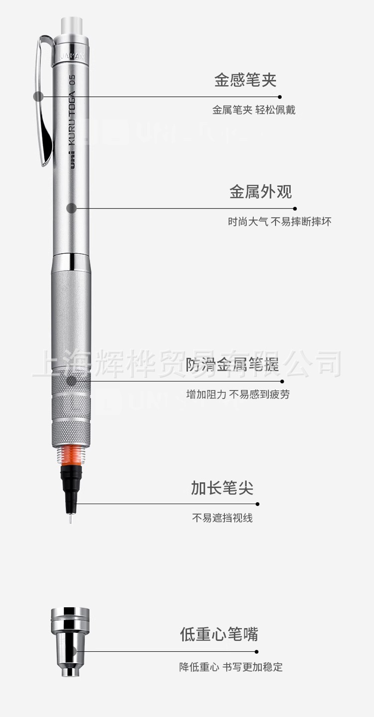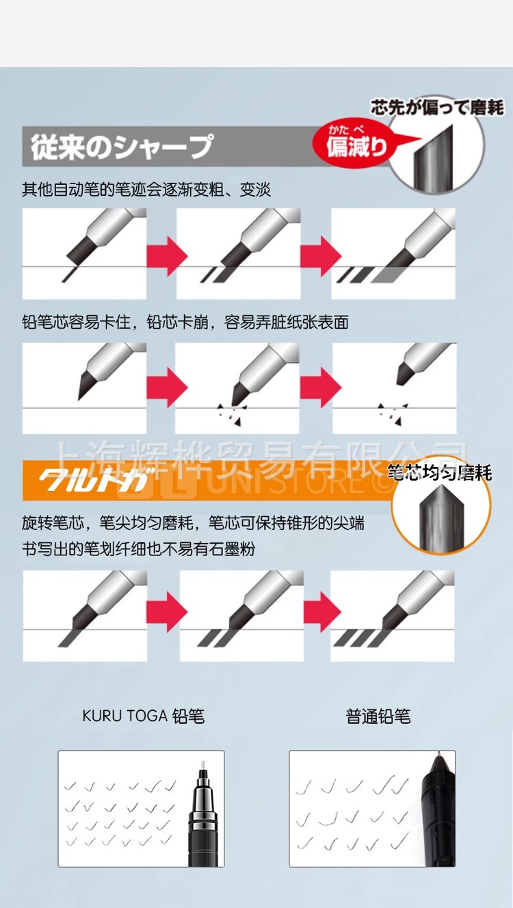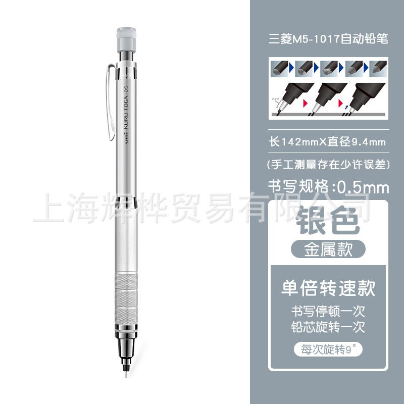 유니 일본 미쓰비시 자동 연필 KuruToga 연속 리드 금속 그립 1017 리드 자동 회전 0.5