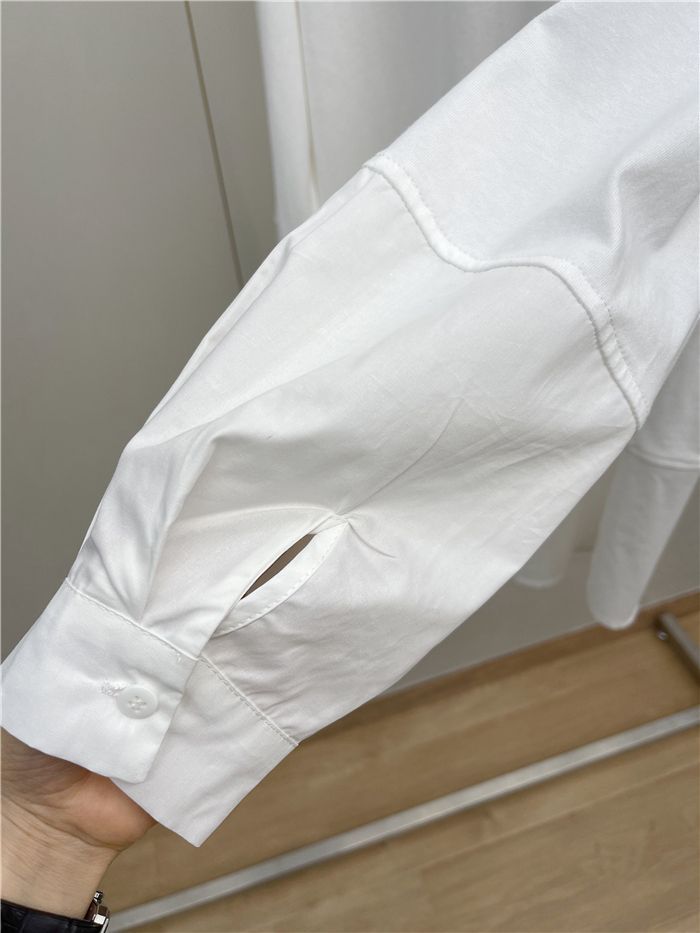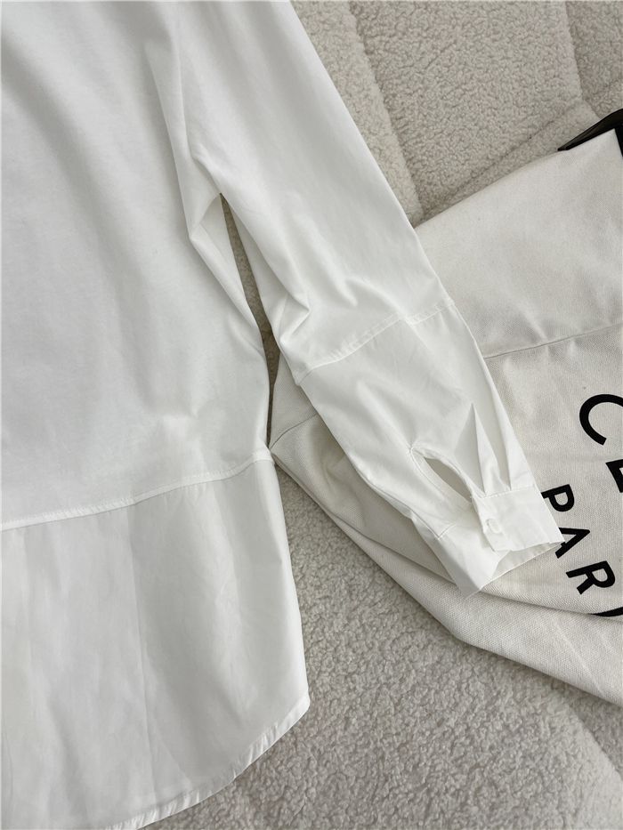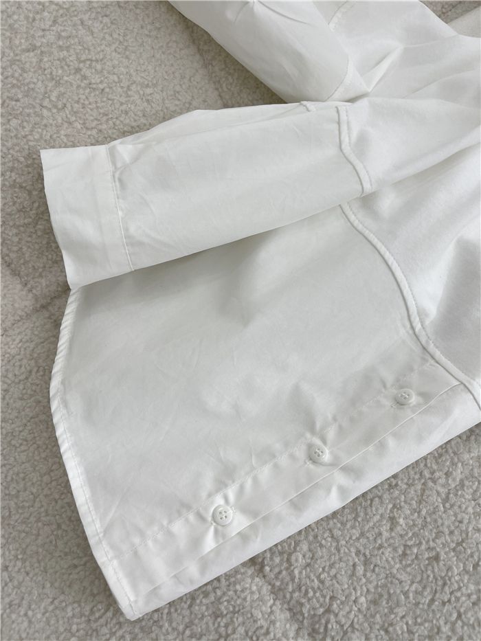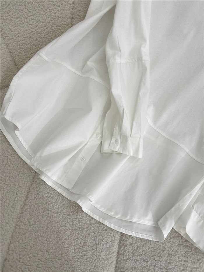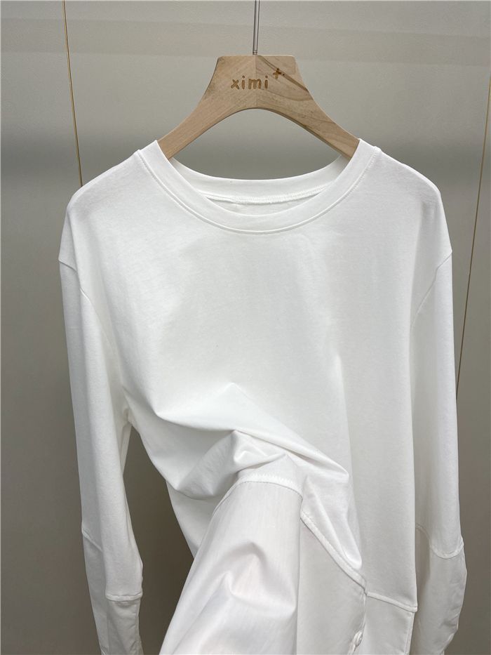 새로운 디자인 심플 코튼 티셔츠 스플라이스 셔츠 한국 스타일 라운드 넥 루즈 화이트 긴팔 셔츠