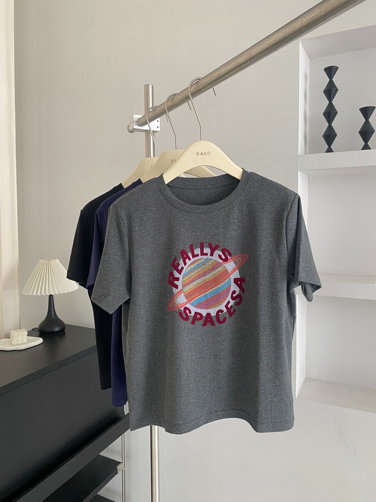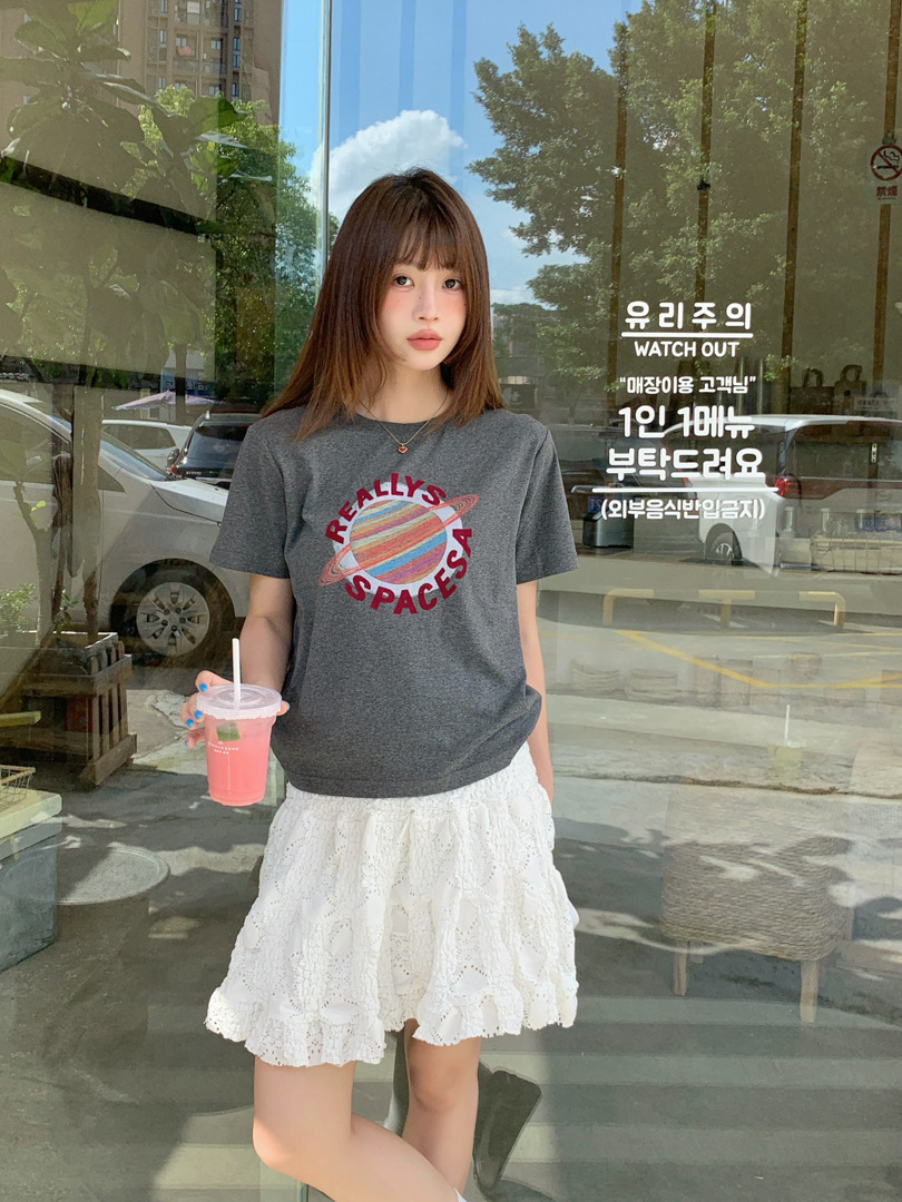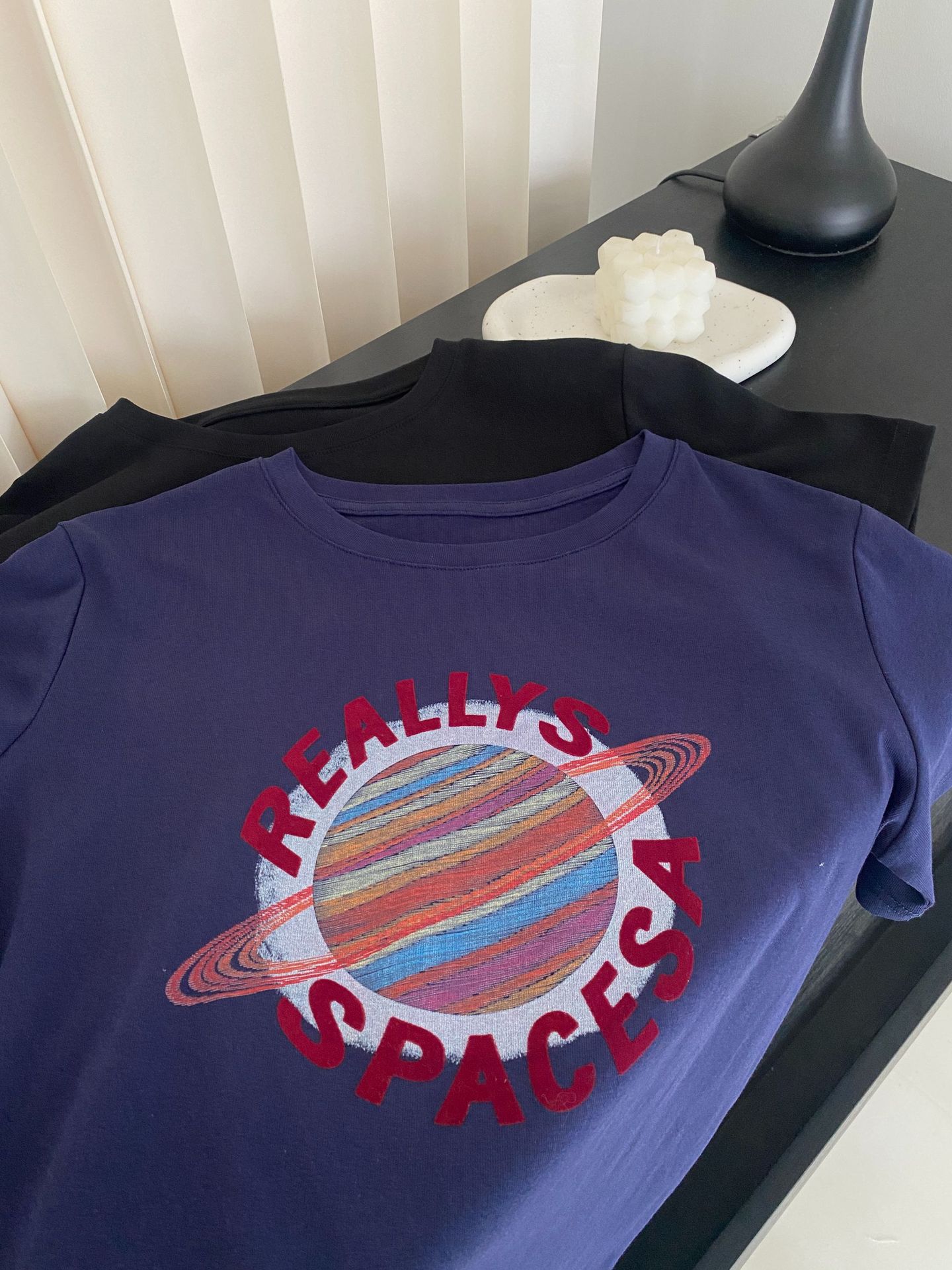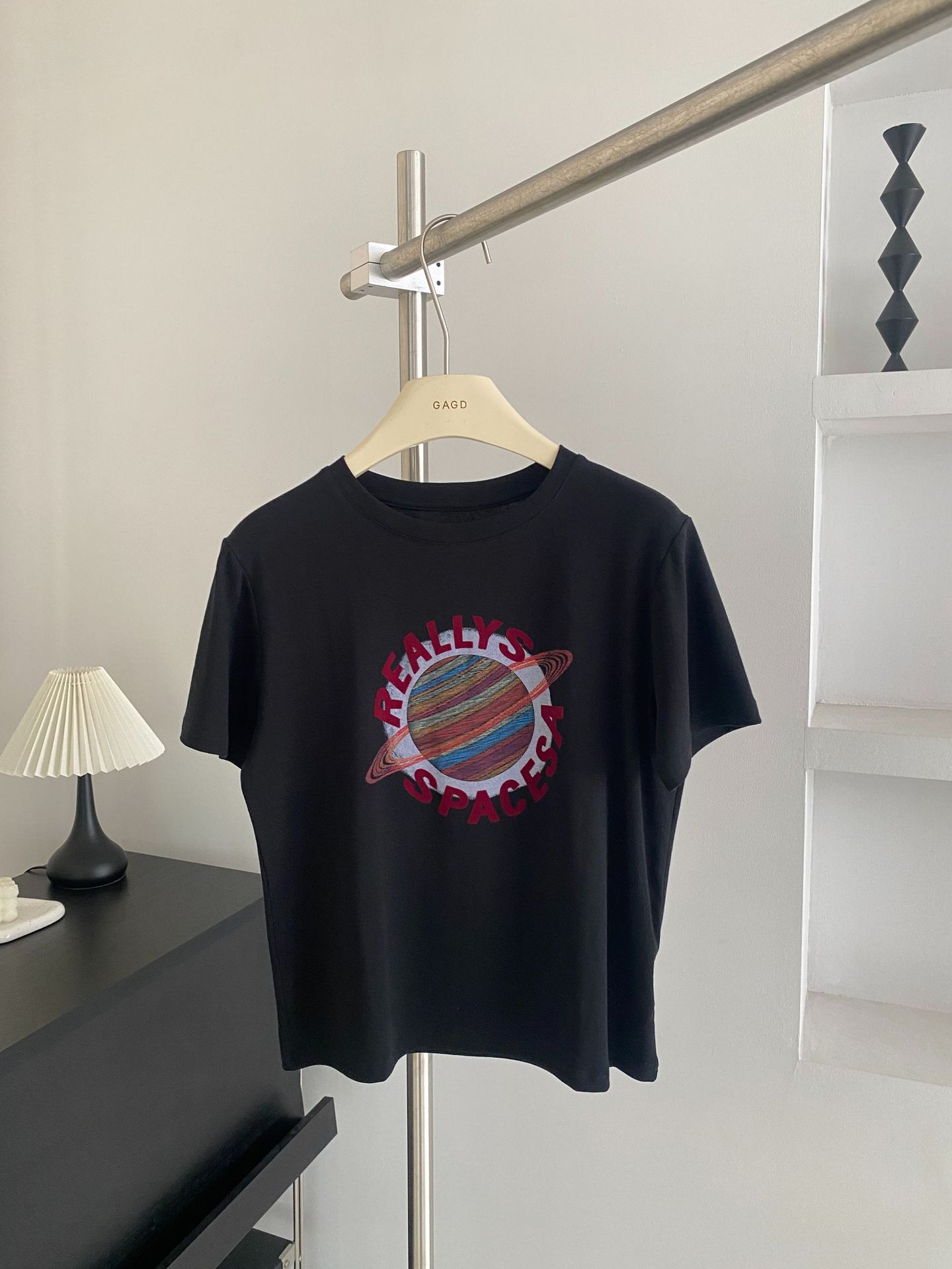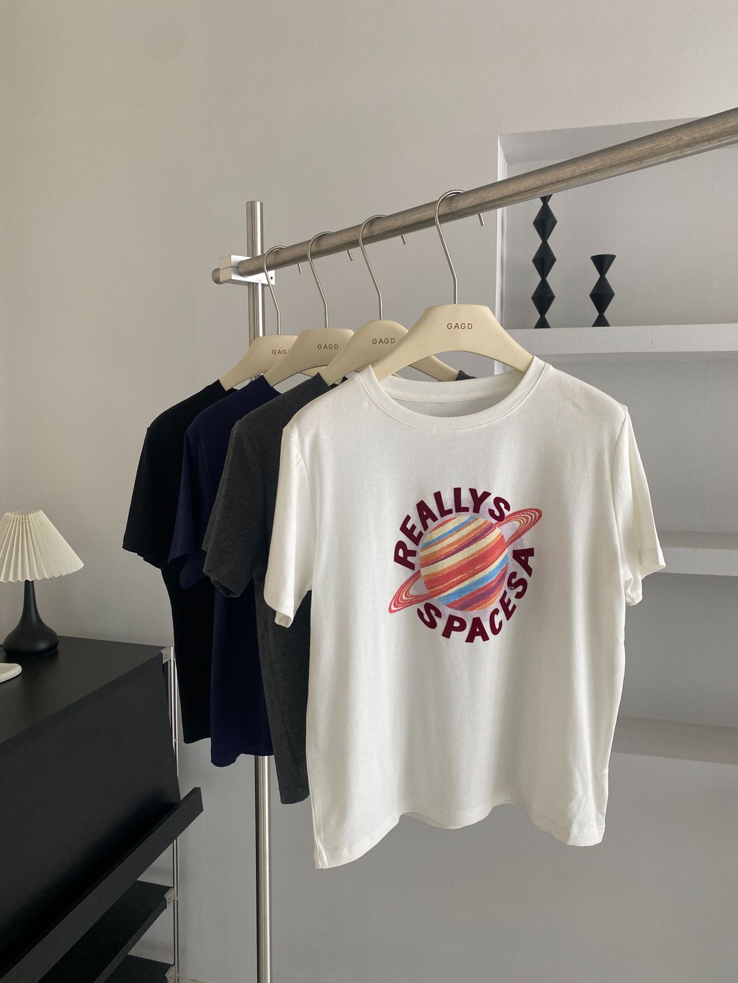 GAGD Flocking Letter Planet 여성용 반팔 티셔츠 2025 여름 오른쪽 어깨 여성용 콤비네이션 코튼 짧은 티셔츠 탑스토어 가기