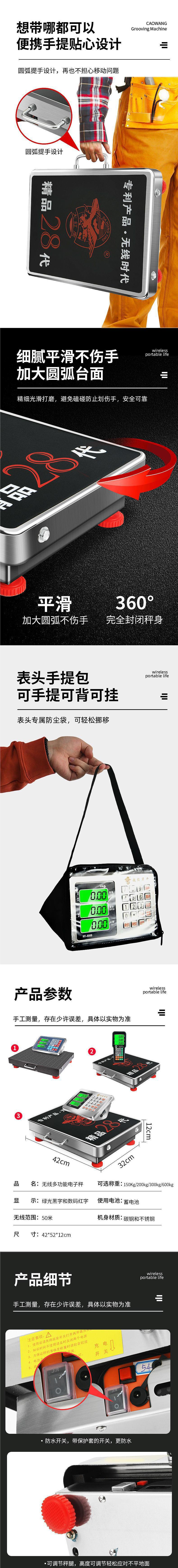 Big Red Eagle 무선 저울 150kg 전자 저울 플랫폼 저울 300kg 휴대용 분리형 플랫폼 저울 600kg 상업용 저울