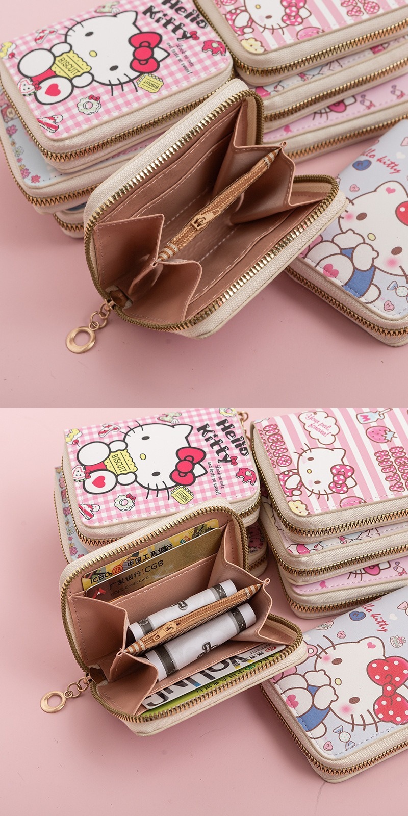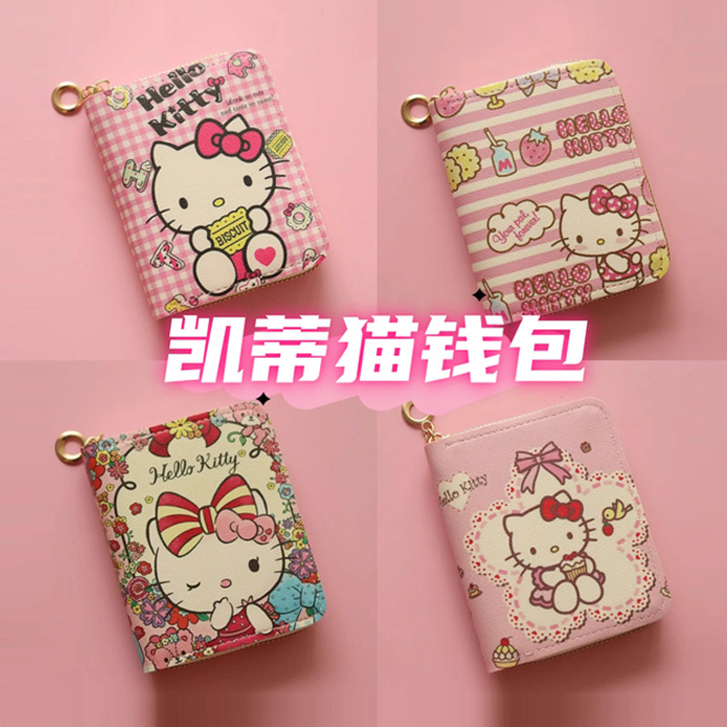 헬로키티 지갑 지퍼 모델 키티 고양이 동전 지갑 중학생 동전 가방 작은 지갑 헬로키티 카드 가방스토어 가기