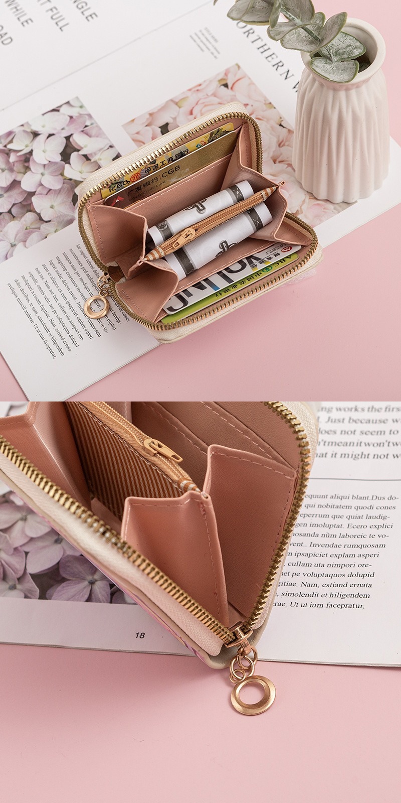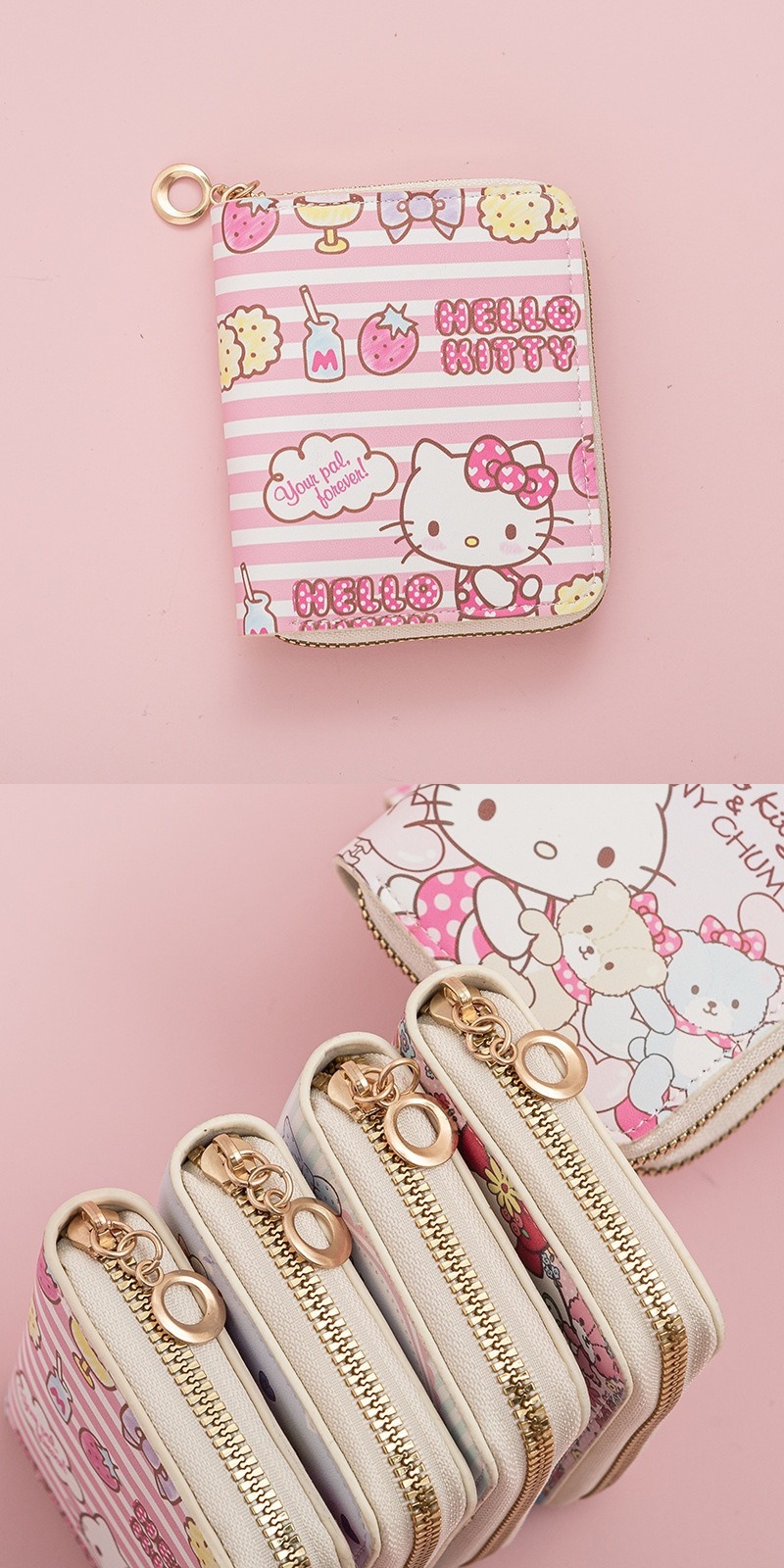 헬로키티 지갑 지퍼 모델 키티 고양이 동전 지갑 중학생 동전 가방 작은 지갑 헬로키티 카드 가방