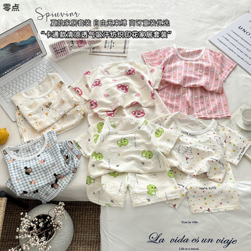 아기 남성과 여성의 구름 면화 반팔 새 슈트 어린이 여름 반바지 에어컨 가정 의류 소녀 얇은 잠옷
