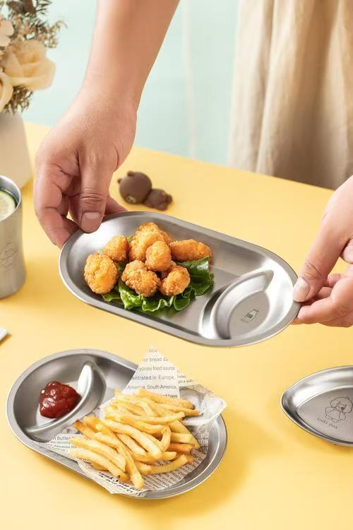 한국 스테인레스 스틸 스낵 접시 타원형 프라이드 치킨 감자 튀김 접시 ktv 바 칸막이 스낵 접시 황금 스낵 접시스토어 가기