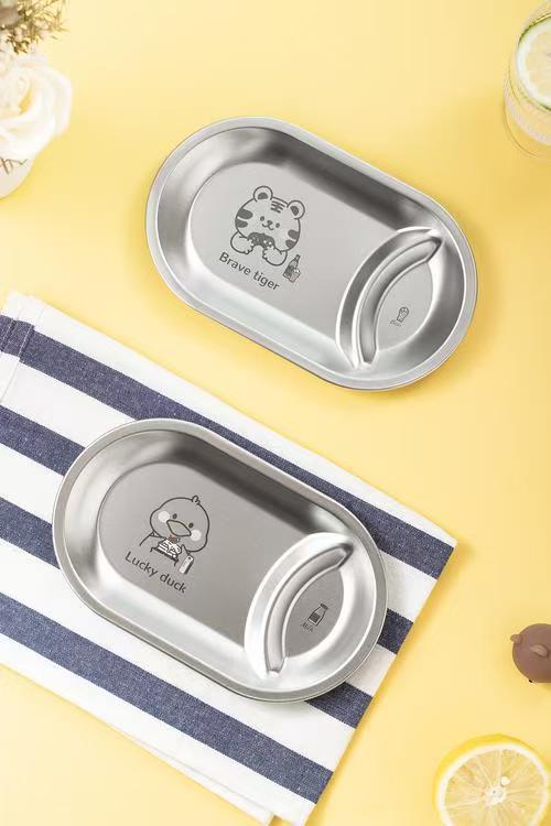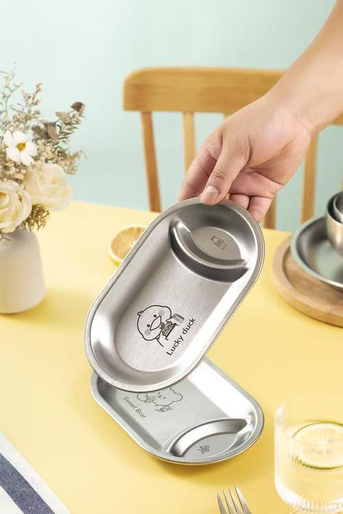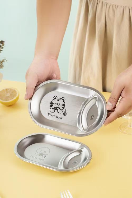 한국 스테인레스 스틸 스낵 접시 타원형 프라이드 치킨 감자 튀김 접시 ktv 바 칸막이 스낵 접시 황금 스낵 접시