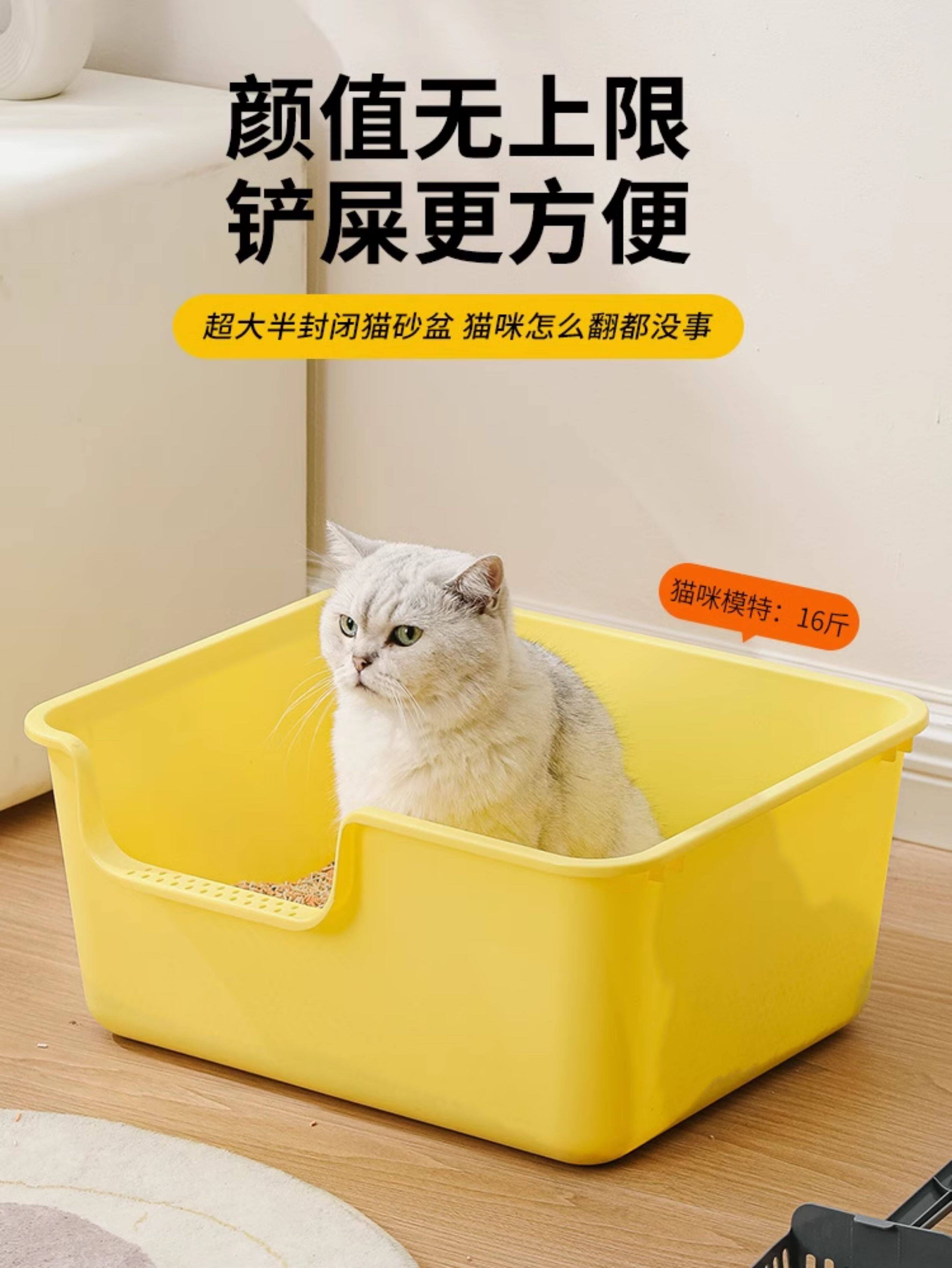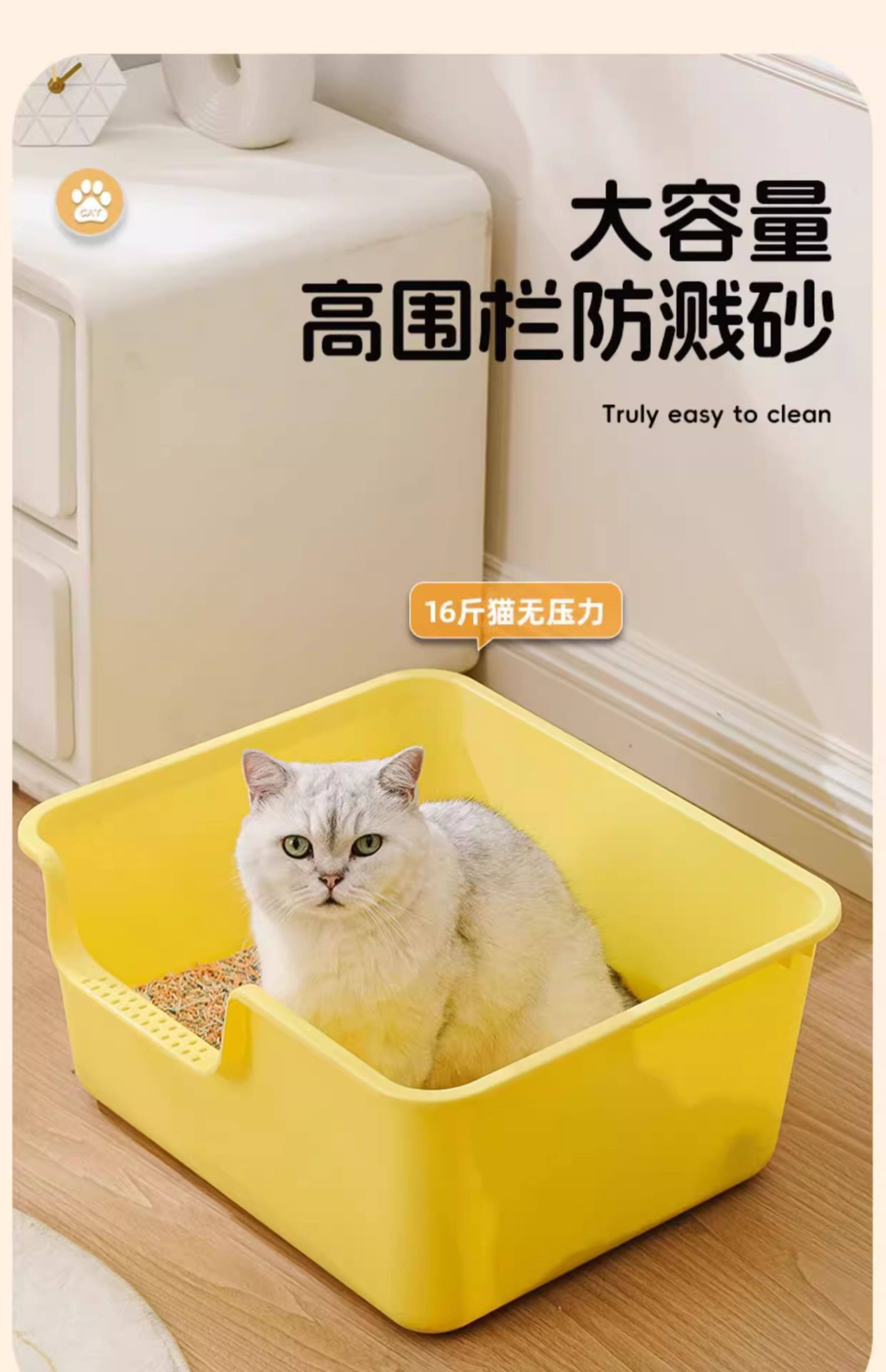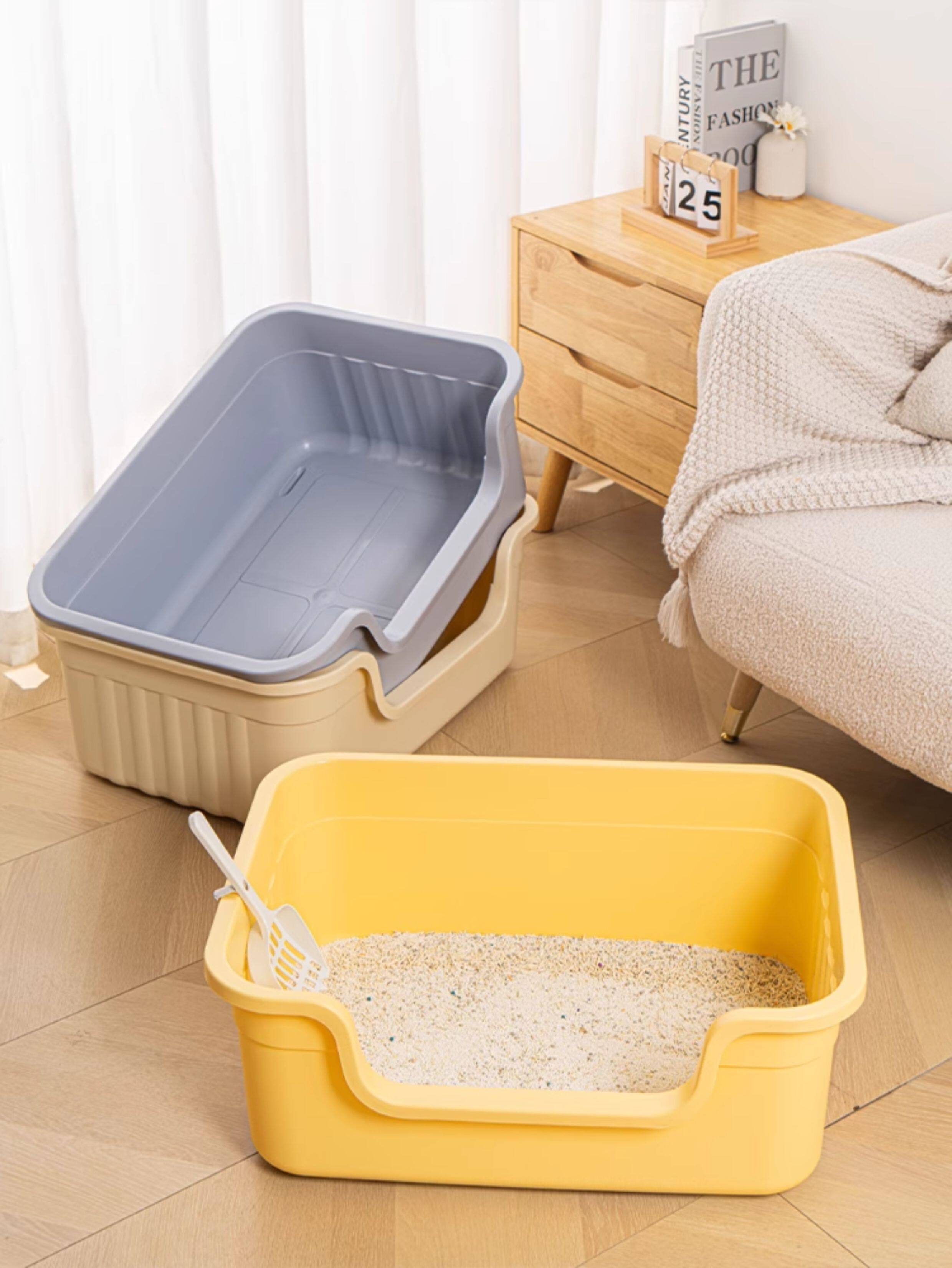고양이 쓰레기통, 초대형 비말 방지 고양이 화장실, 초대형 냄새 방지 개방형 고양이 쓰레기통, 대형 새끼 고양이 쓰레기통