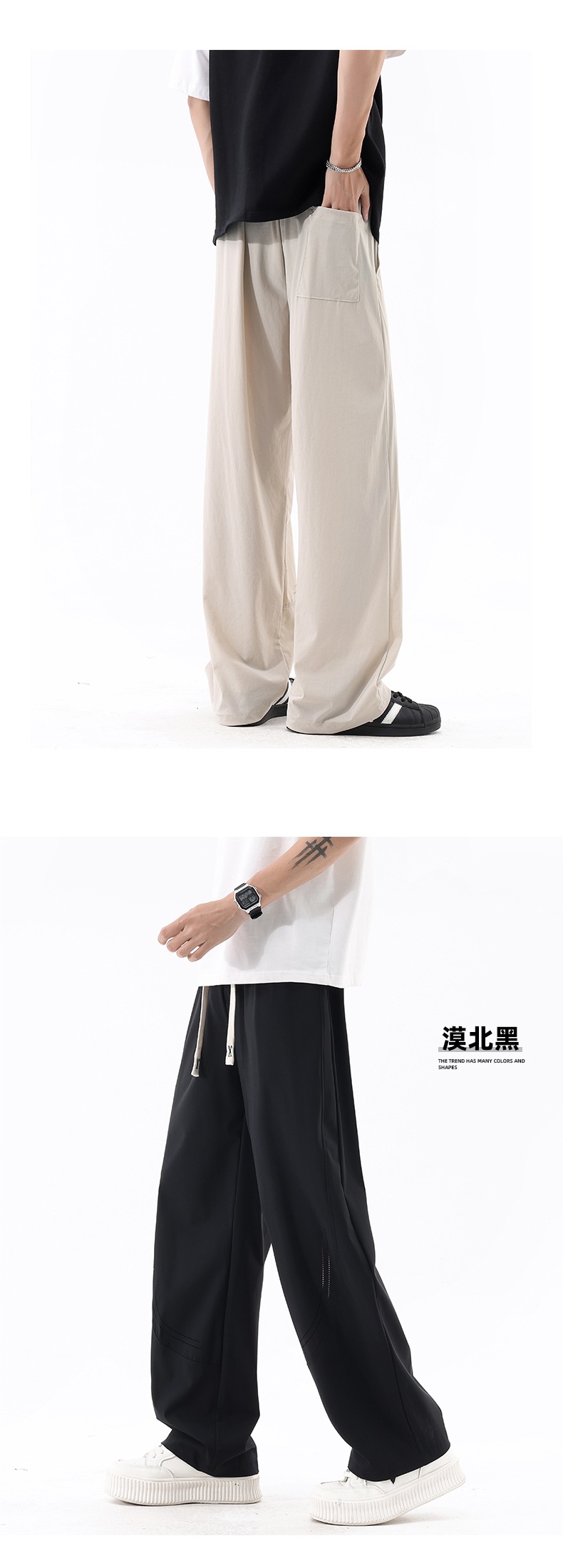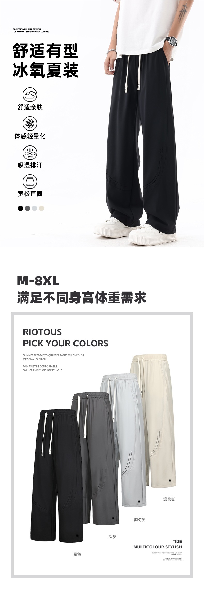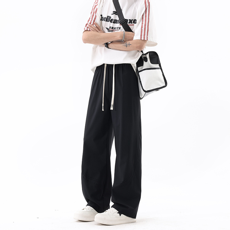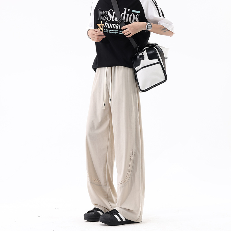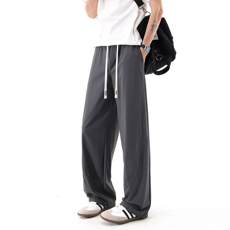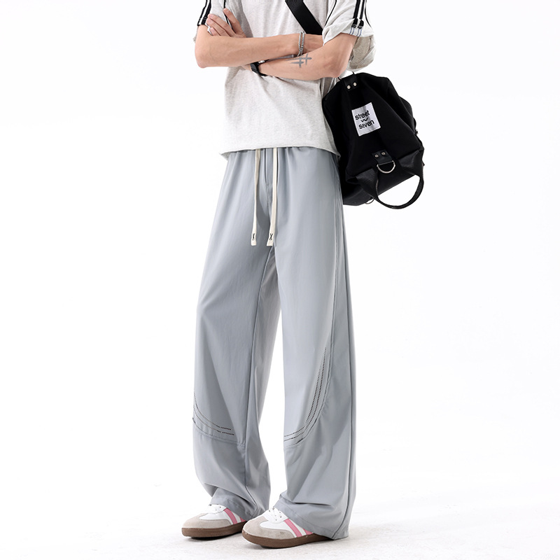 L-8XL 플러스 사이즈 아이스 실크 세이버 바지 속건성 바지 남성 여름 홍콩 스타일 드레이프 루즈 스트레이트 캐주얼 바지