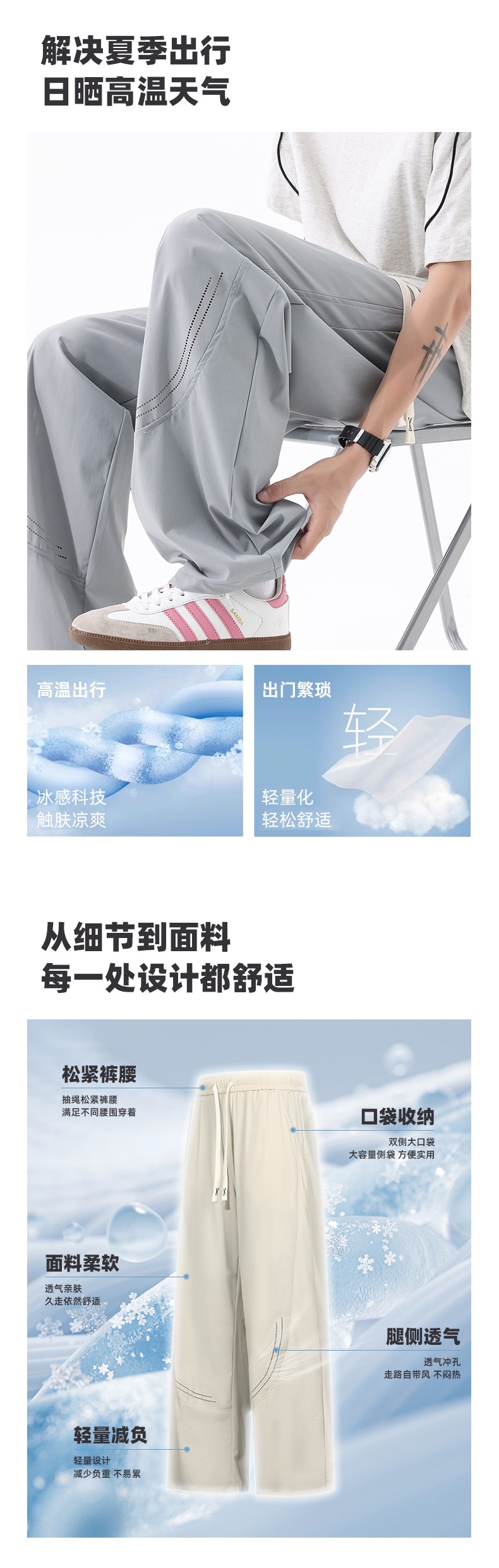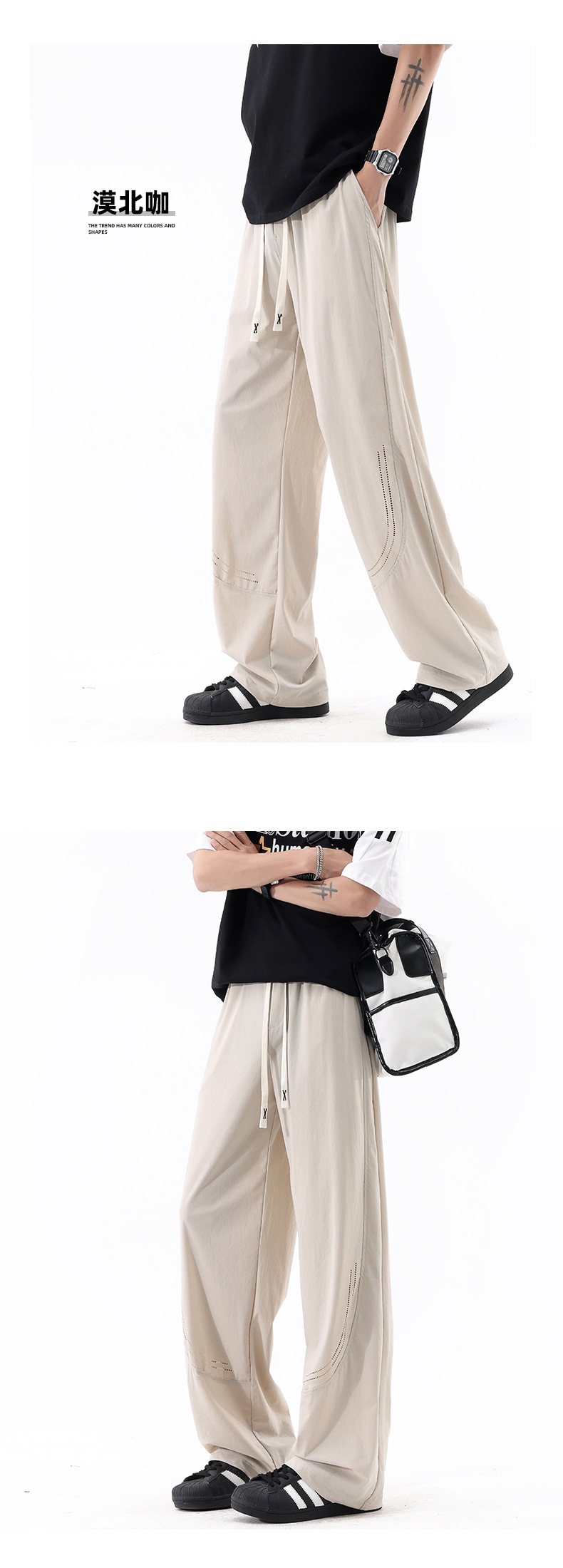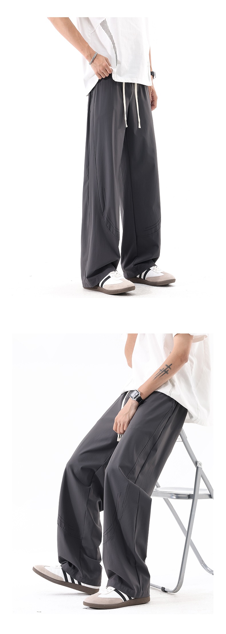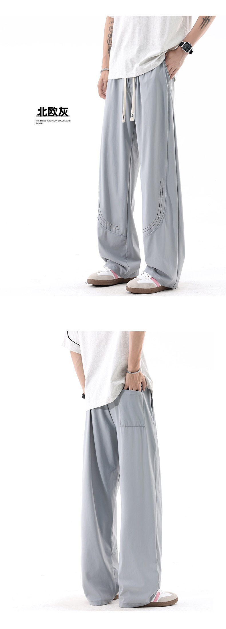 L-8XL 플러스 사이즈 아이스 실크 세이버 바지 속건성 바지 남성 여름 홍콩 스타일 드레이프 루즈 스트레이트 캐주얼 바지