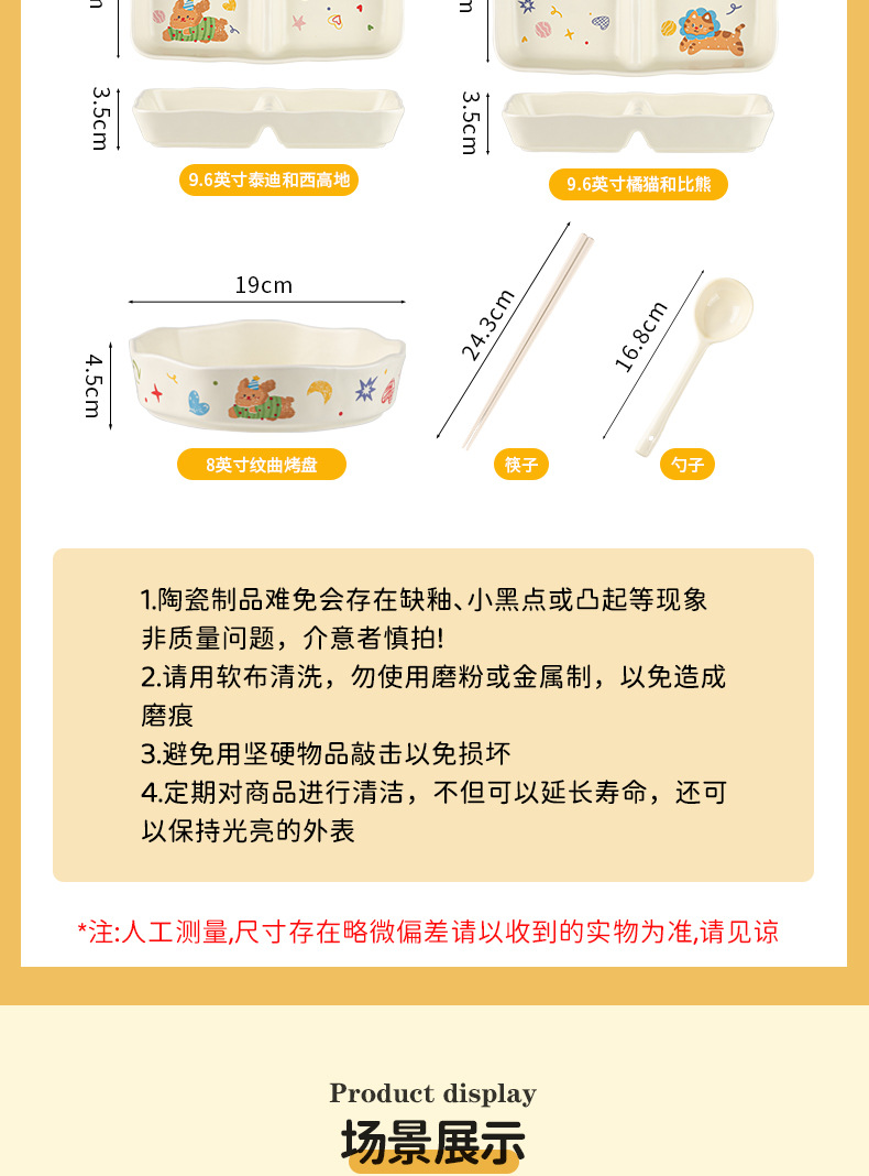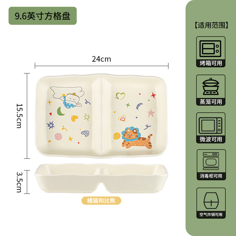 川岛屋可爱陶瓷盘子菜盘家用好看的儿童分格餐盘早餐碗一人食餐具