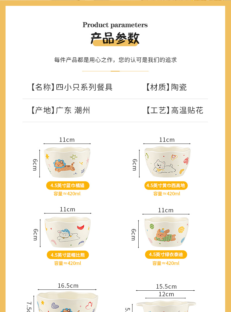 cartoon puppy ceramic tableware set