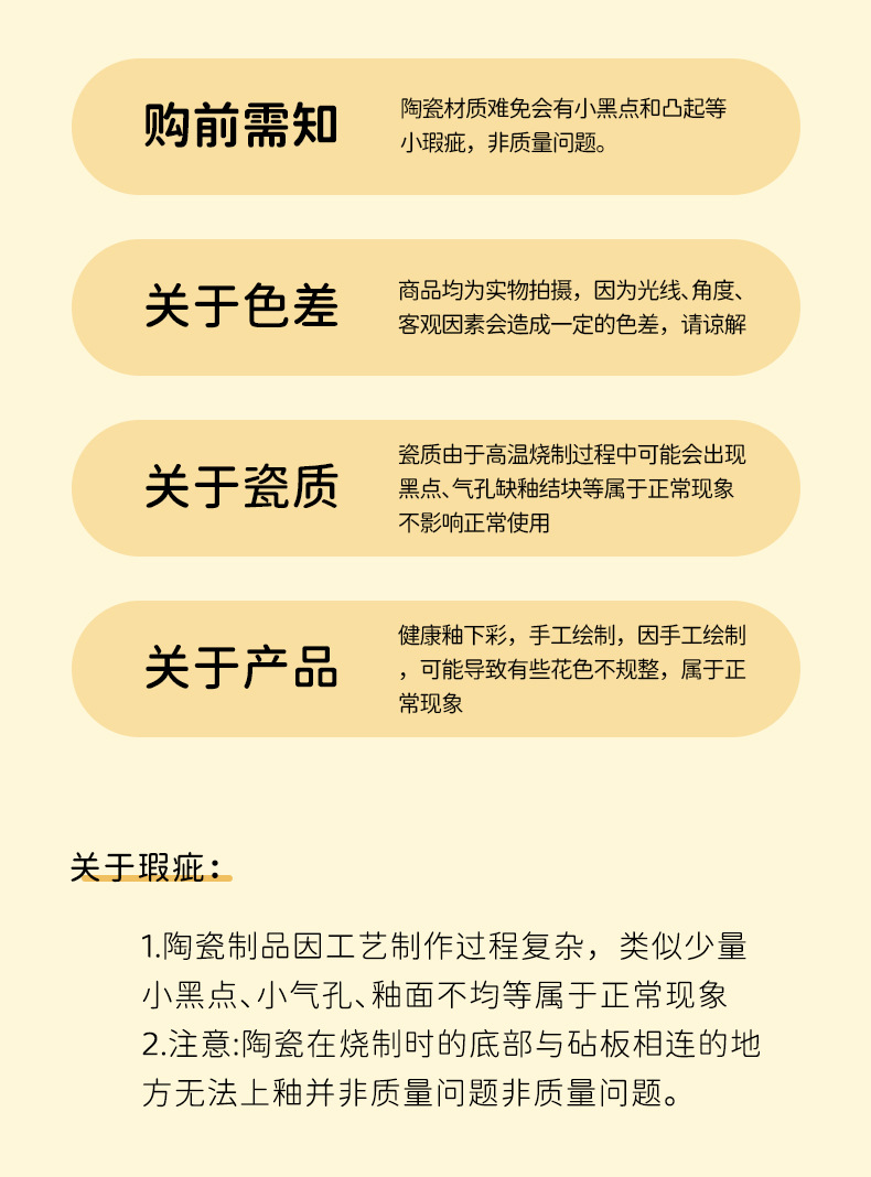 (1)新品上市,付款后一般1-3天左右发货,有大量现货的一般当天发货,若刚好产品无现货,陶瓷生产、包装需一段周期,3天发货,望您谅解。