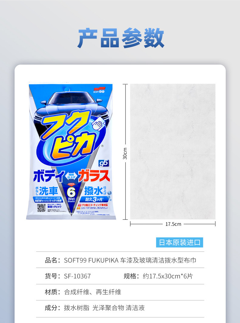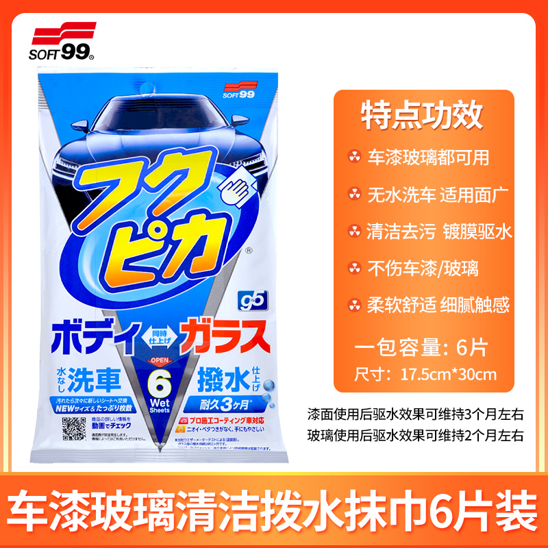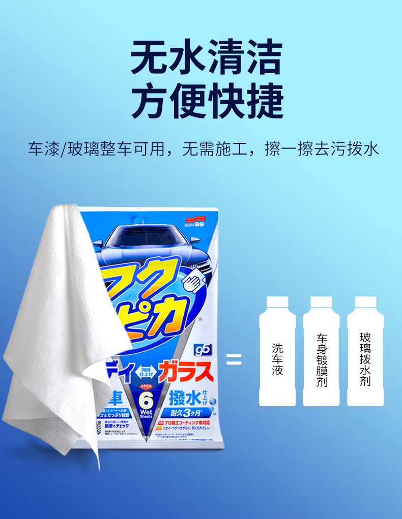 일본 soft99 방수 청소 물티슈 자동차 페인트 유리 물을 퇴치하는 코팅 물이 필요 없는 세차 일회용 자동차 물티슈스토어 가기