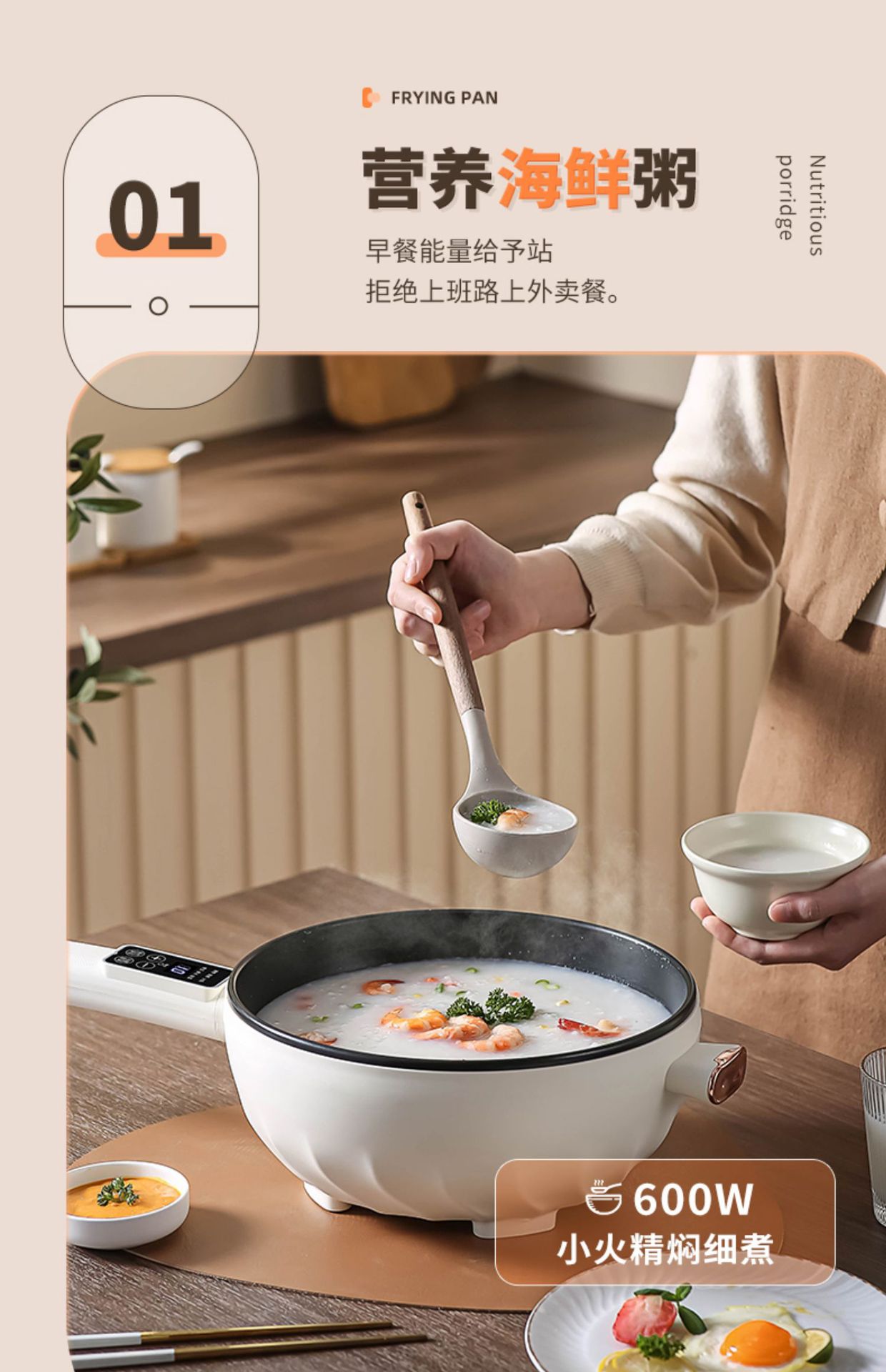 전기 조리 냄비 가정용 다기능 붙지 않는 소형 전기 냄비 찜, 튀김 및 볶음 올인원 냄비 기숙사 전기 냄비