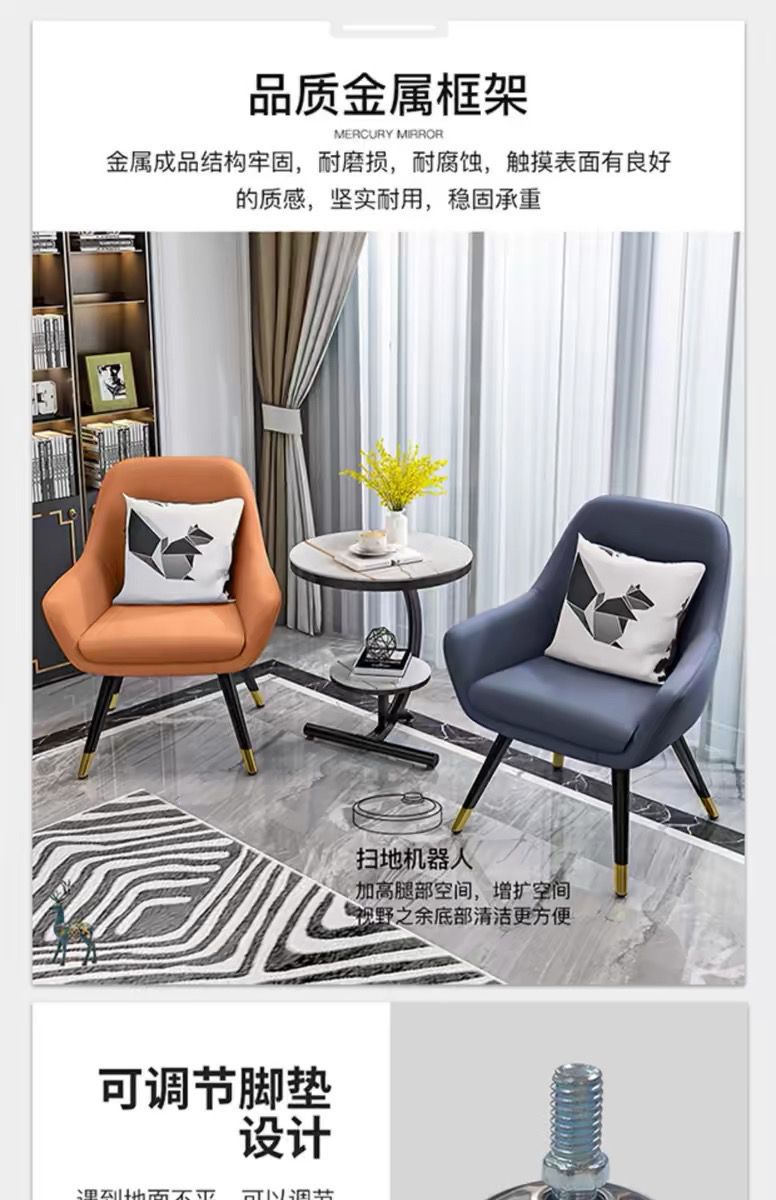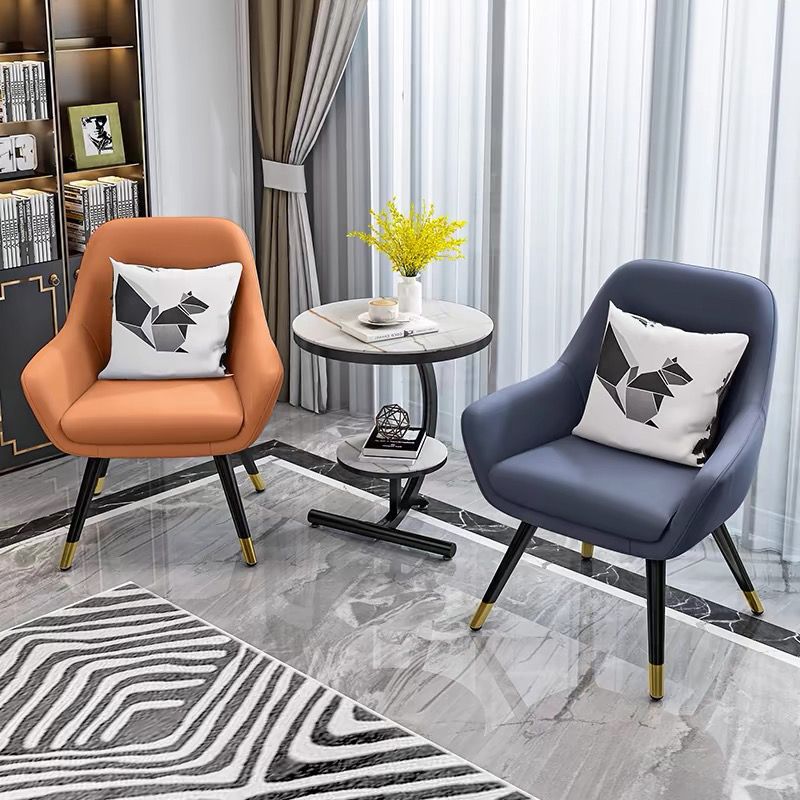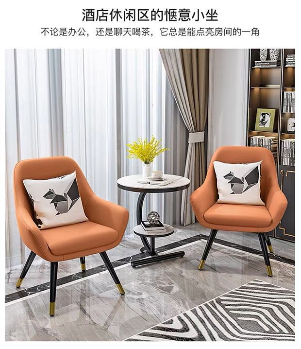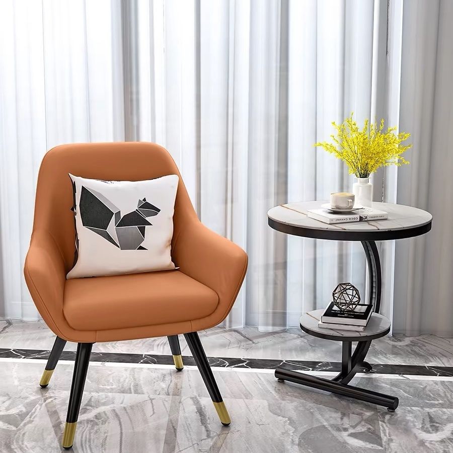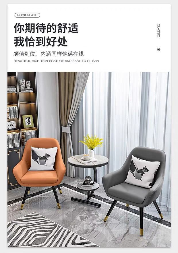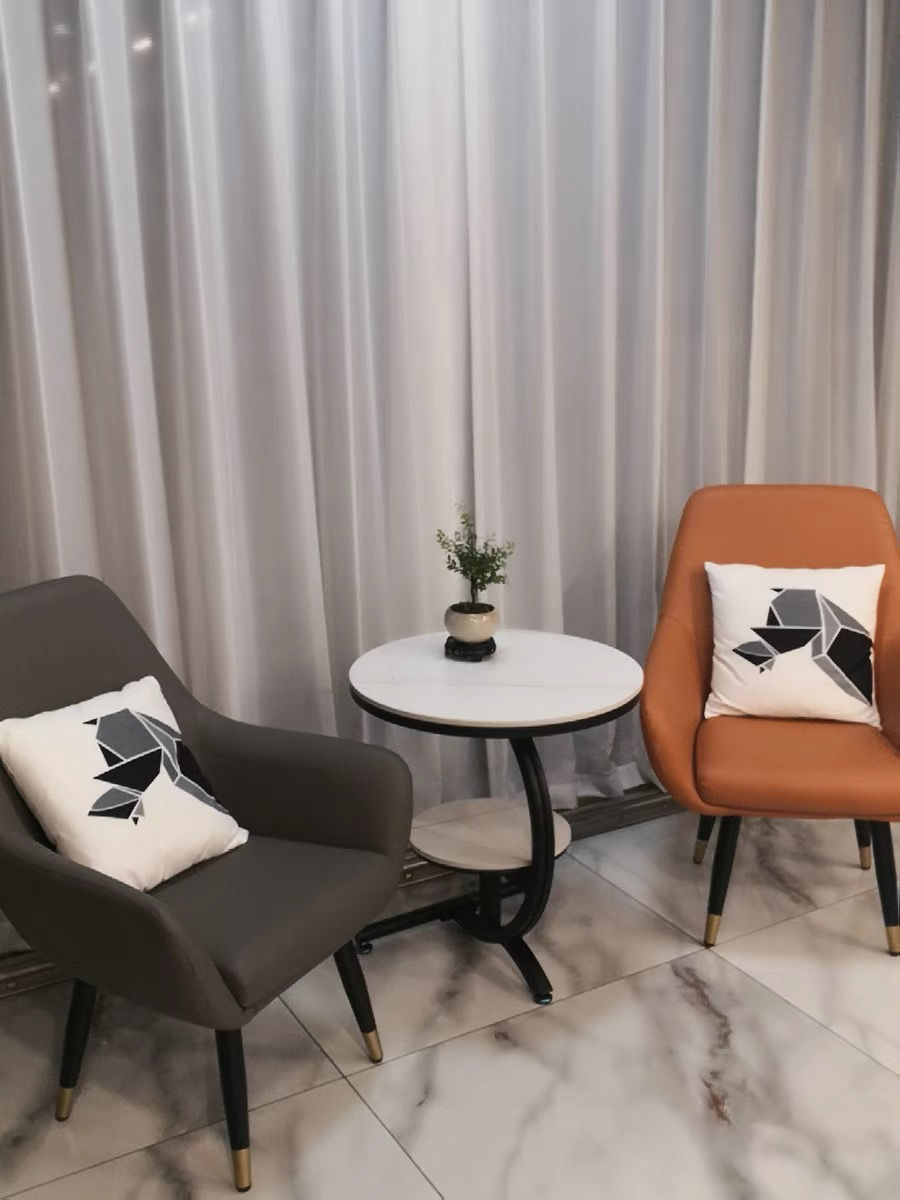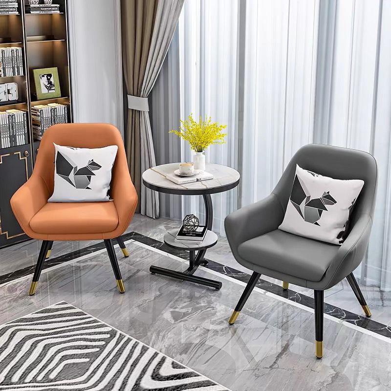 • 흰색 커피 테이블 + 주황색 의자 + 회색 의자