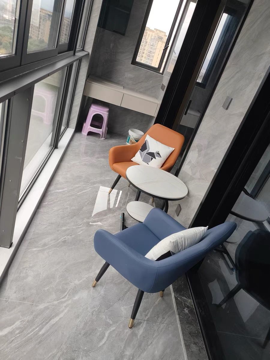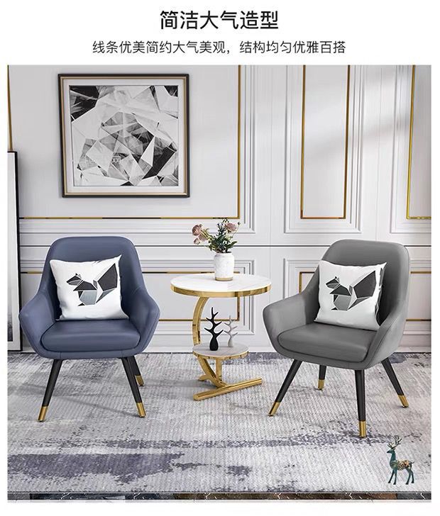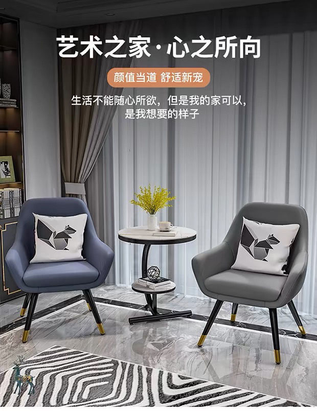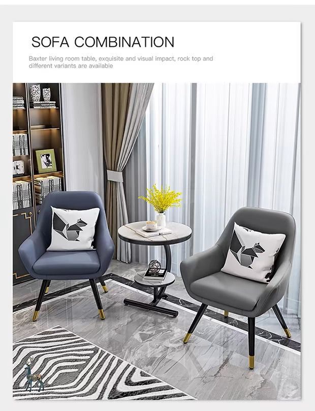 • 흰색 커피 테이블 + 파란색 의자 + 회색 의자