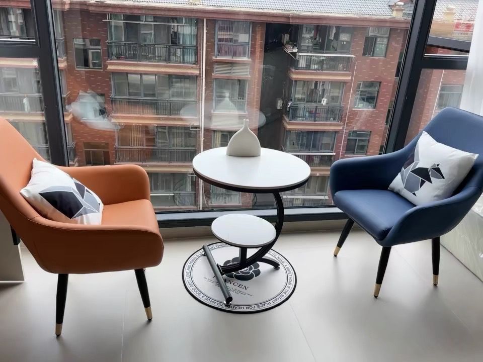 • 흰색 커피 테이블 + 주황색 의자 + 파란색 의자
