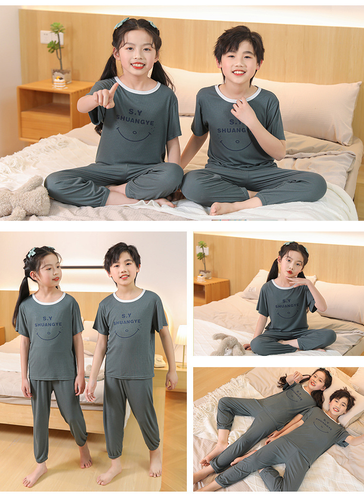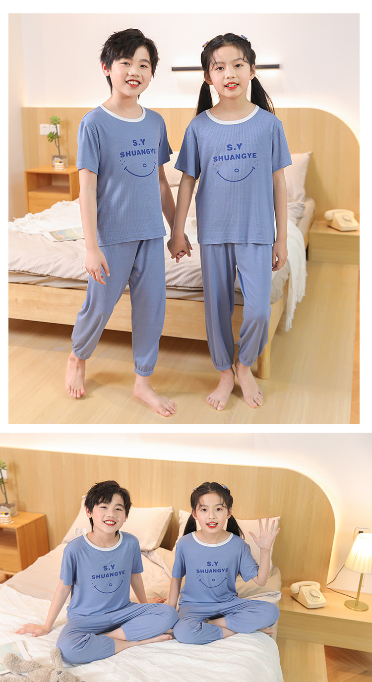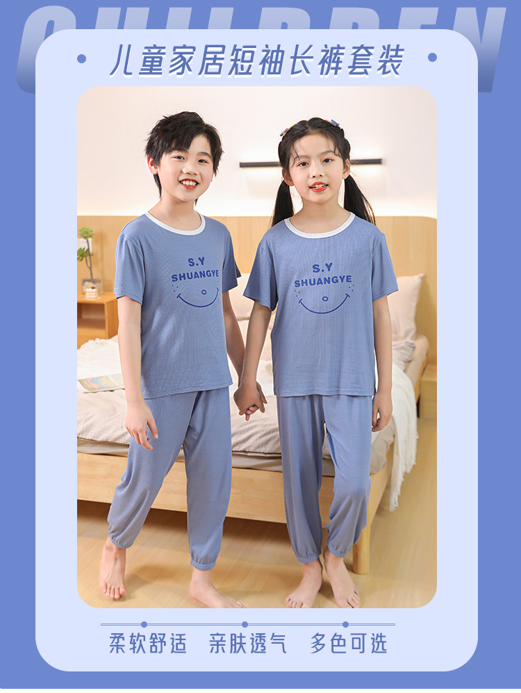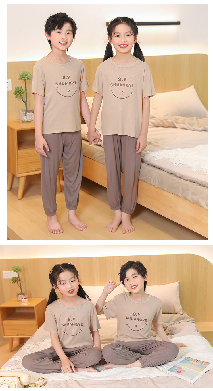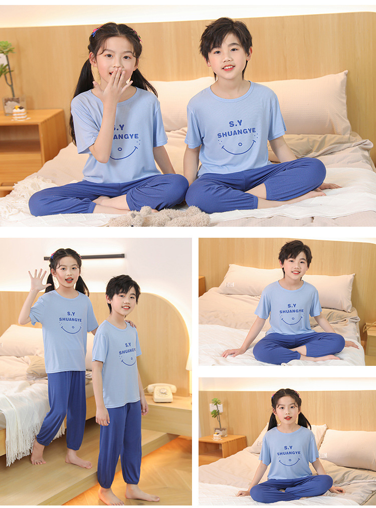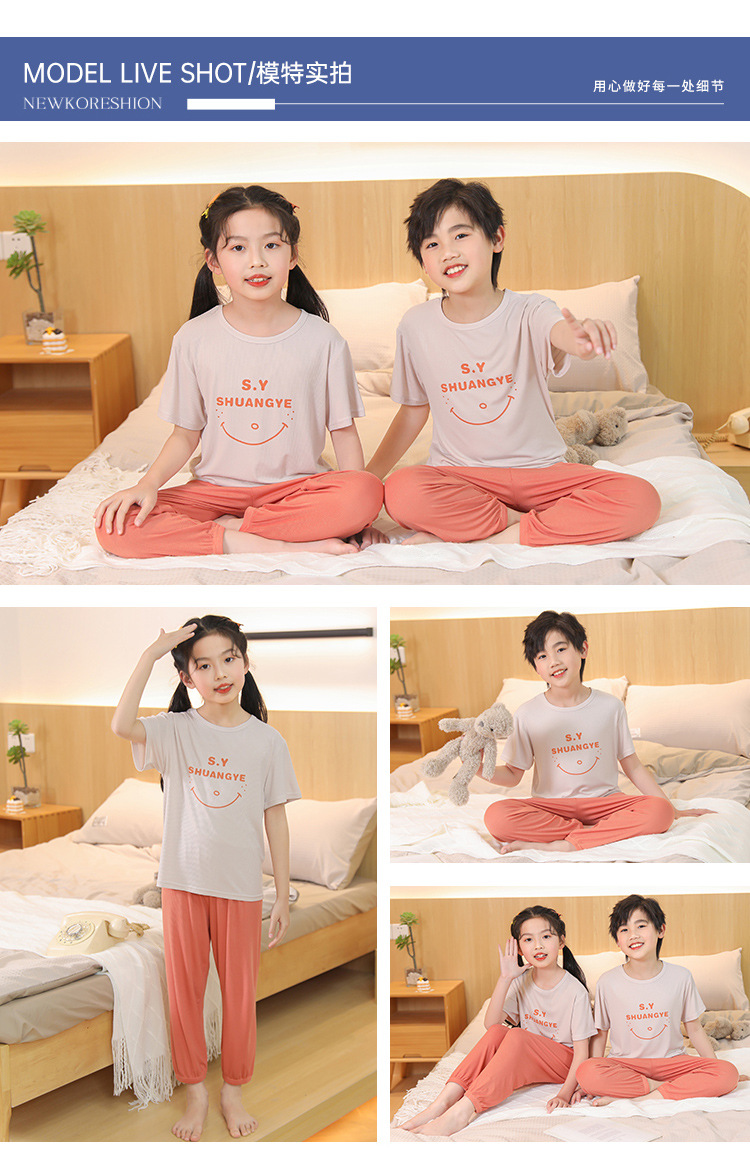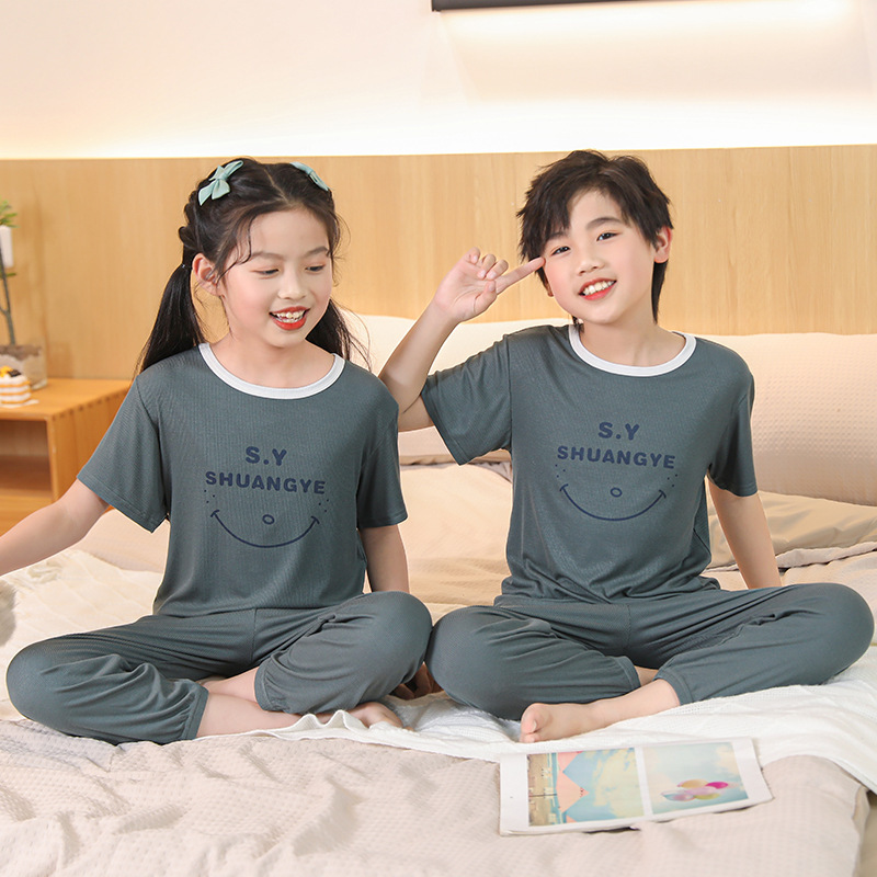 모달 아동 잠옷, 남아용 아이스 실크 슈트, 남아용 반팔 바지, 여아용 홈웨어, 중대형 아동용 에어컨 의류스토어 가기