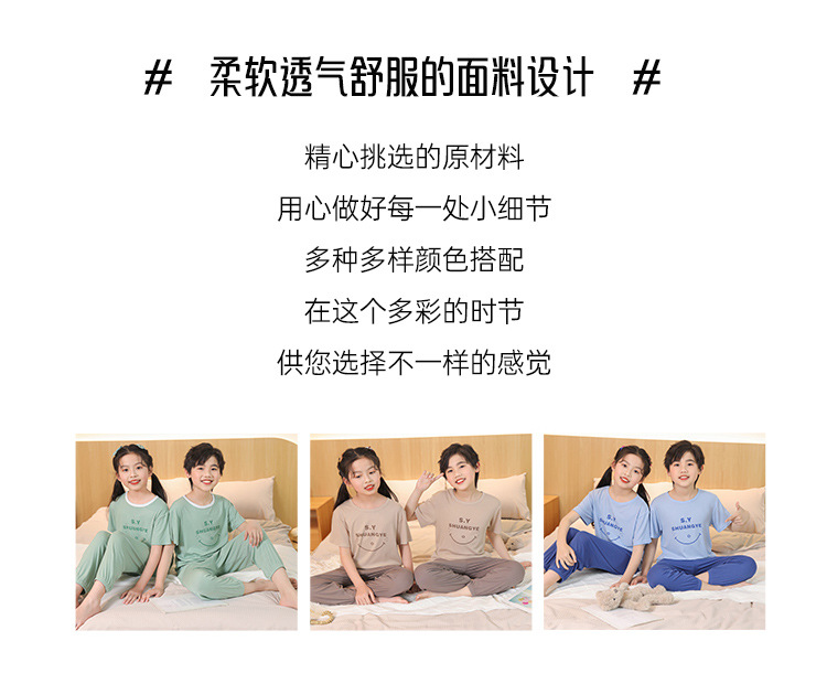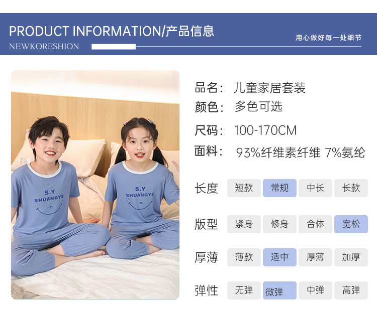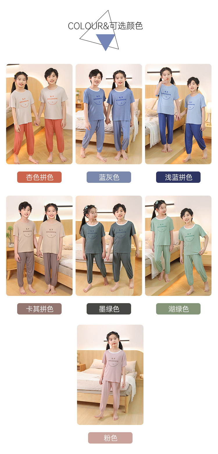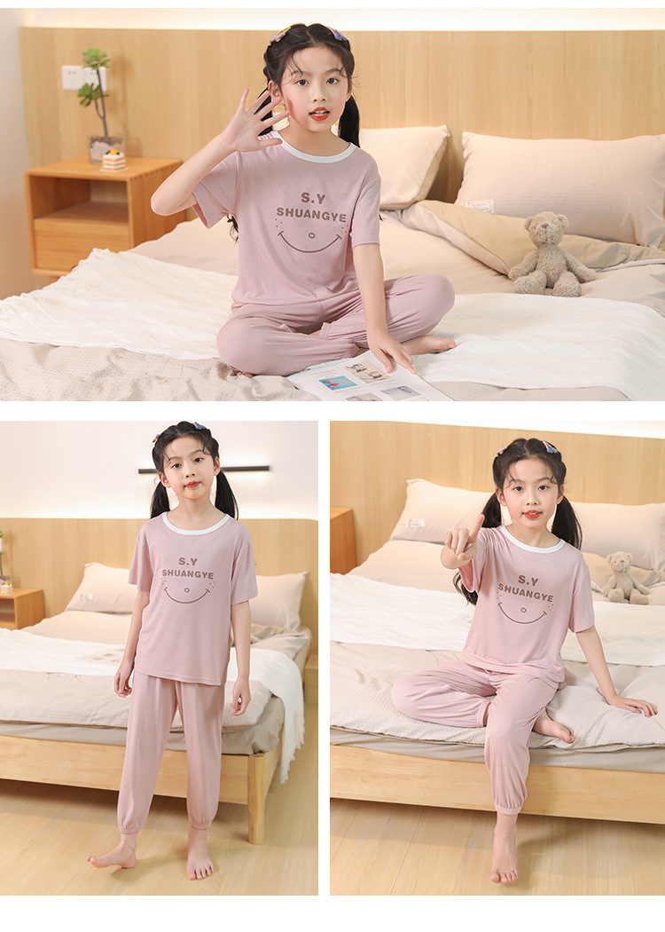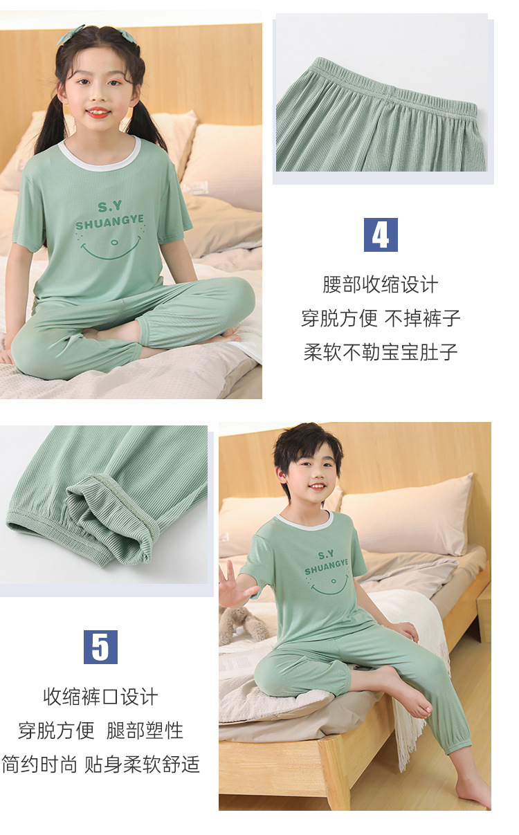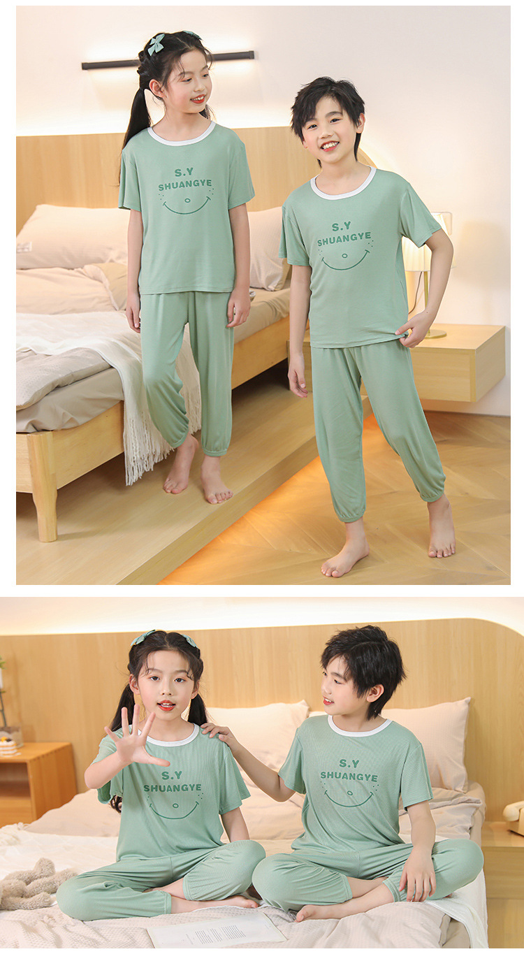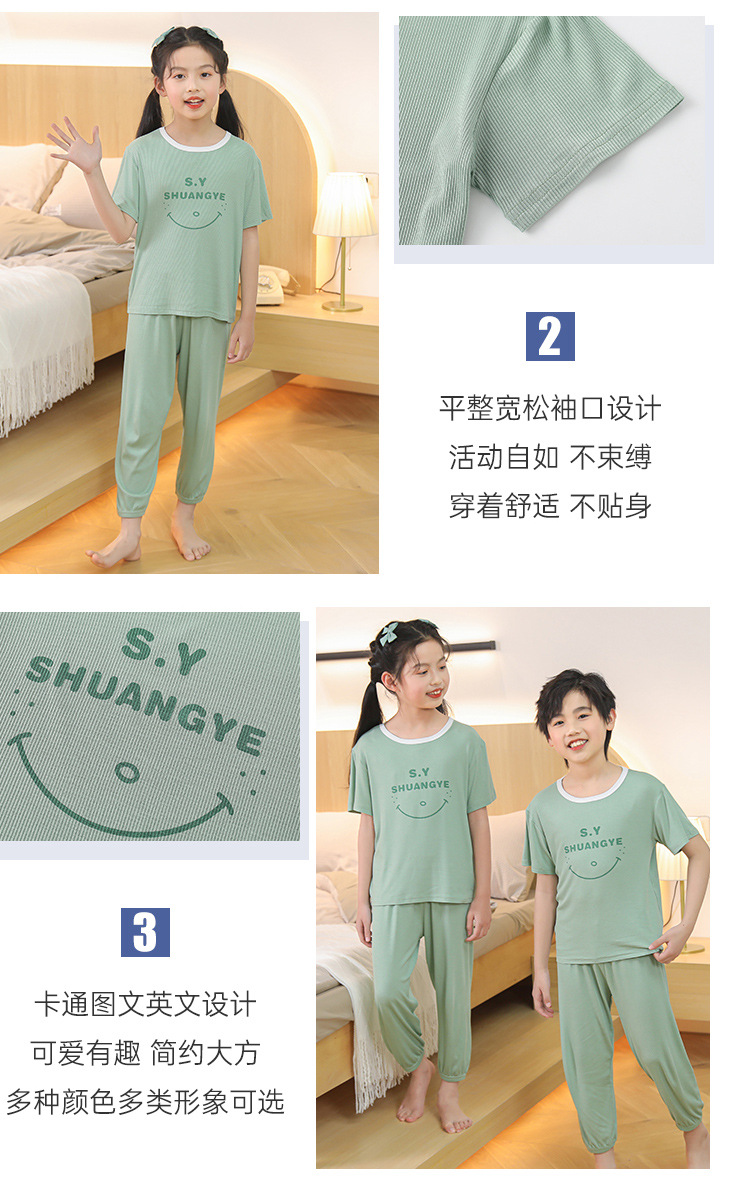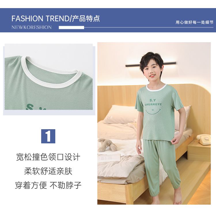 모달 아동 잠옷, 남아용 아이스 실크 슈트, 남아용 반팔 바지, 여아용 홈웨어, 중대형 아동용 에어컨 의류스토어 가기