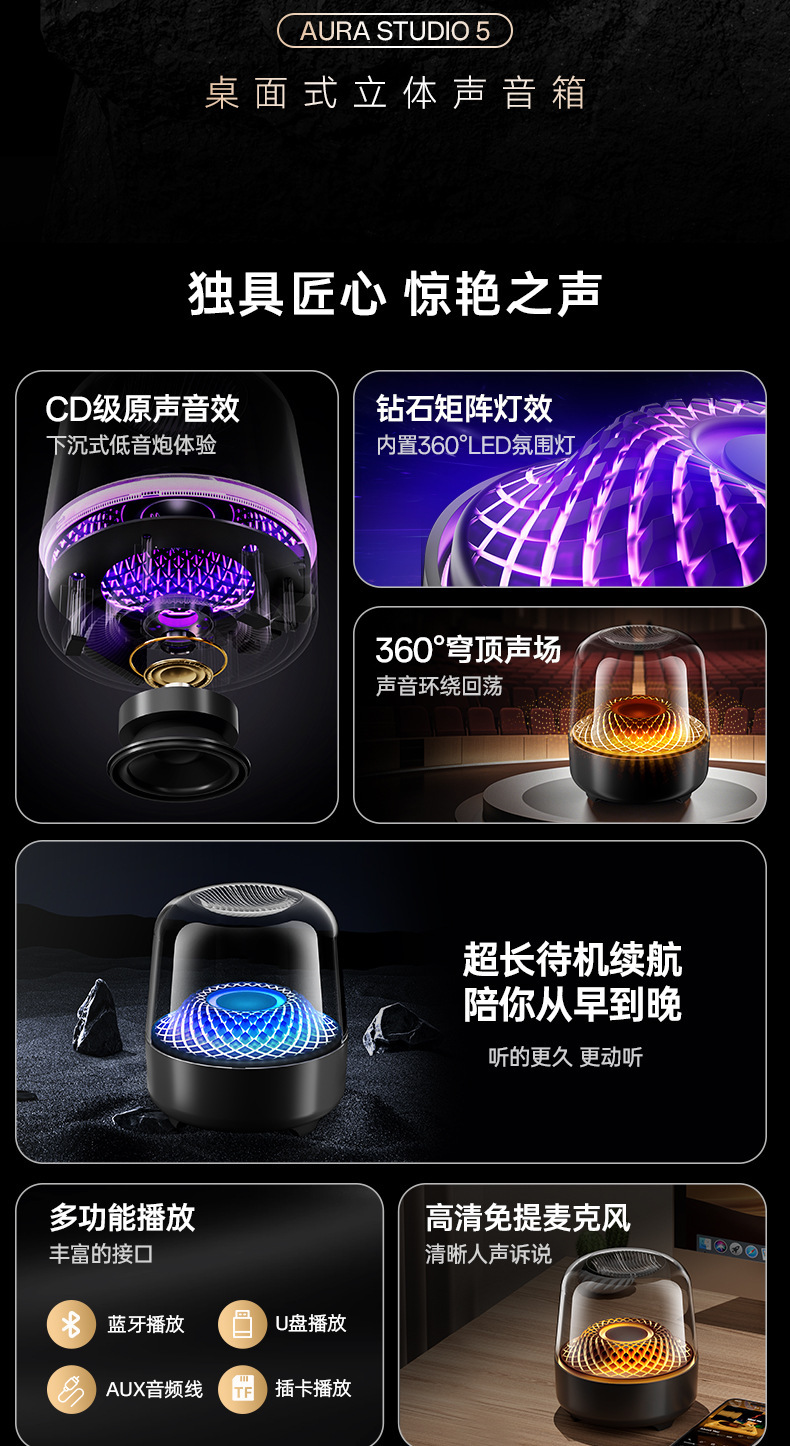 Harman Glazed 무선 블루투스 스피커 홈 카드 데스크탑 RGB 서브우퍼 다기능 분위기 스피커