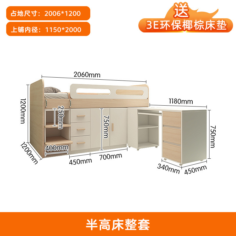 어린이 침대 책상 일체형 어린이 반 높이 침대 옷장 수납 소형 다기능 캐비닛 조합 세트