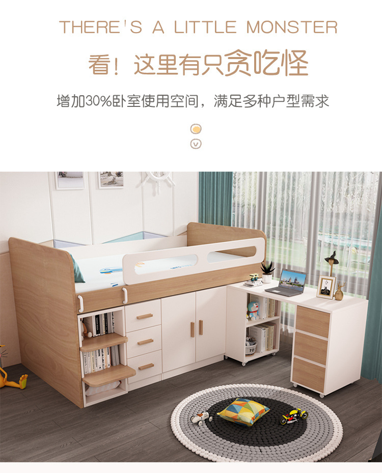 어린이 침대 책상 일체형 어린이 반 높이 침대 옷장 수납 소형 다기능 캐비닛 조합 세트스토어 가기