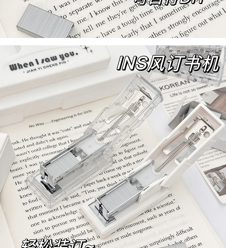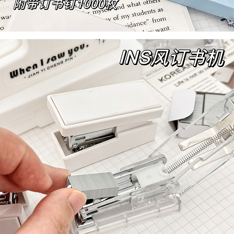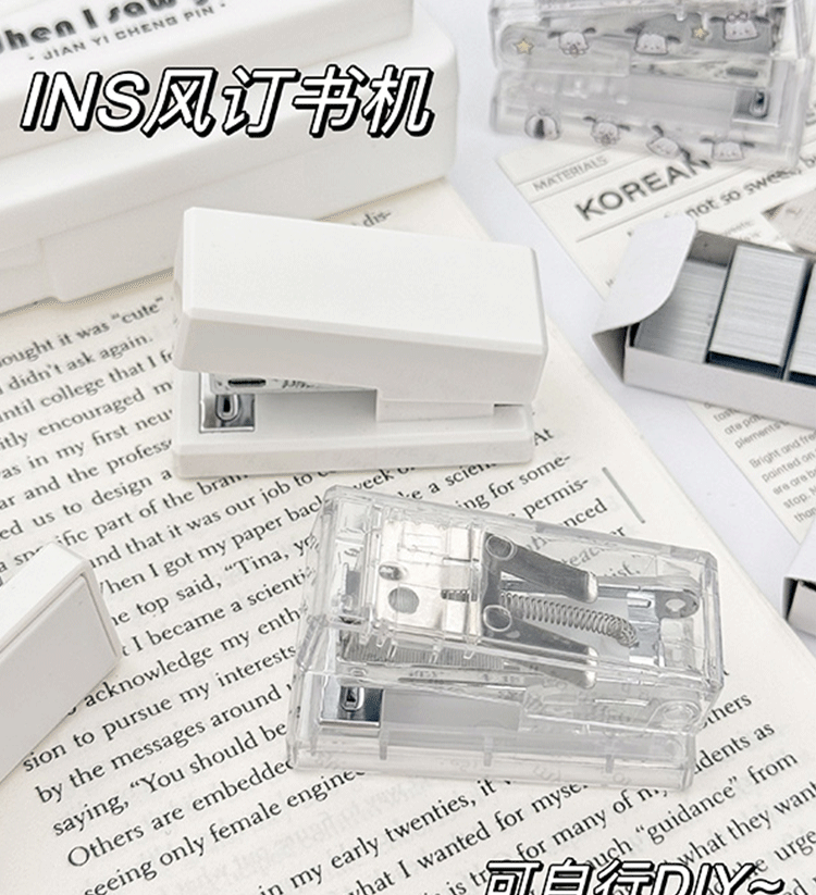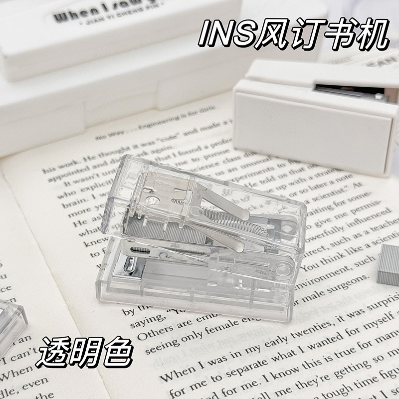 투명 스테이플러 세트 귀여운 학생 문구 간단한 기능 휴대용 소형 미니 스테이플러 사무실 사용스토어 가기