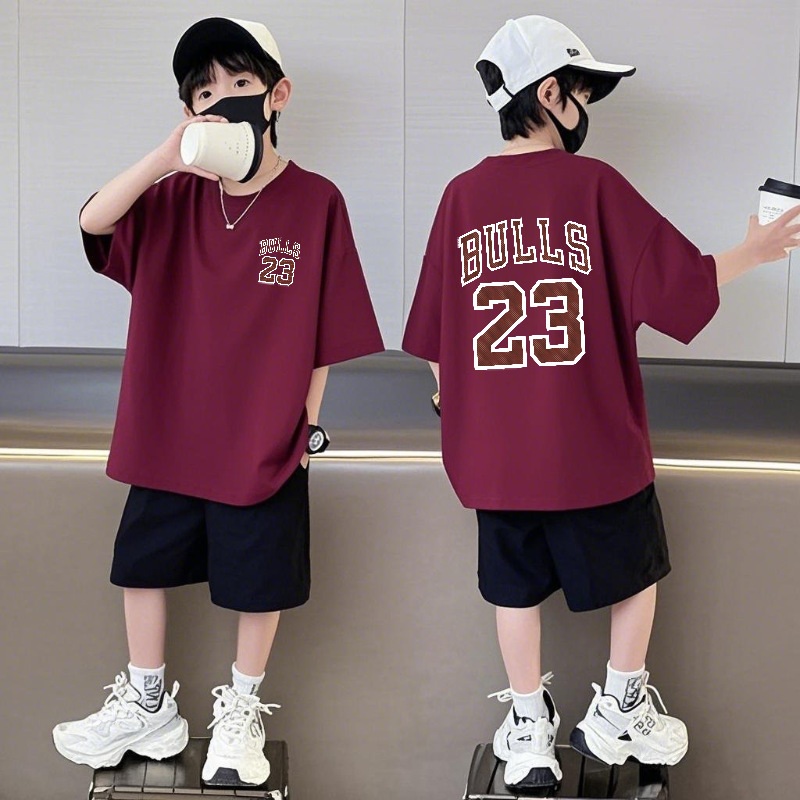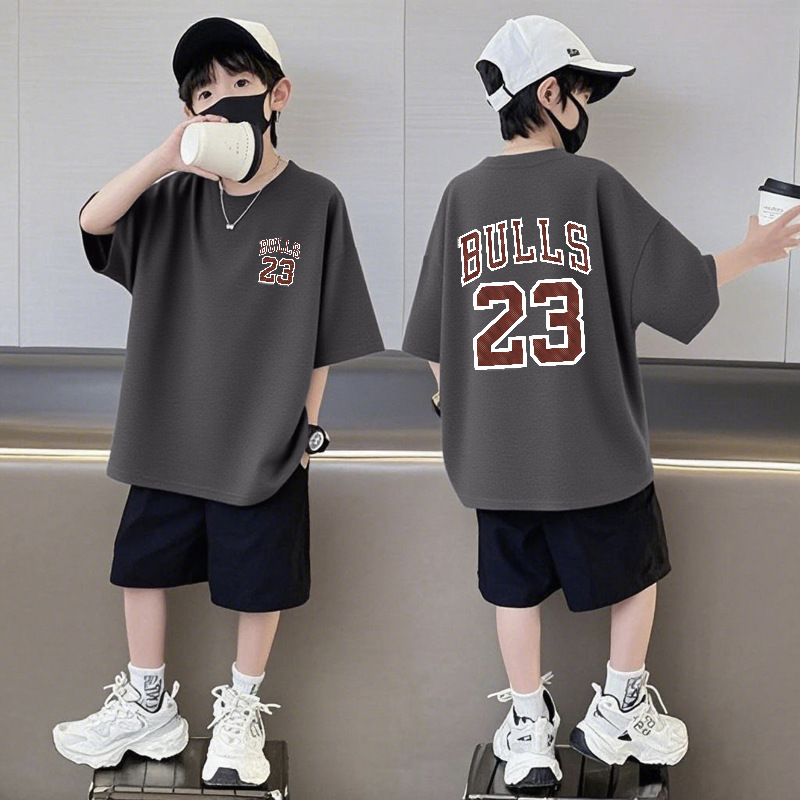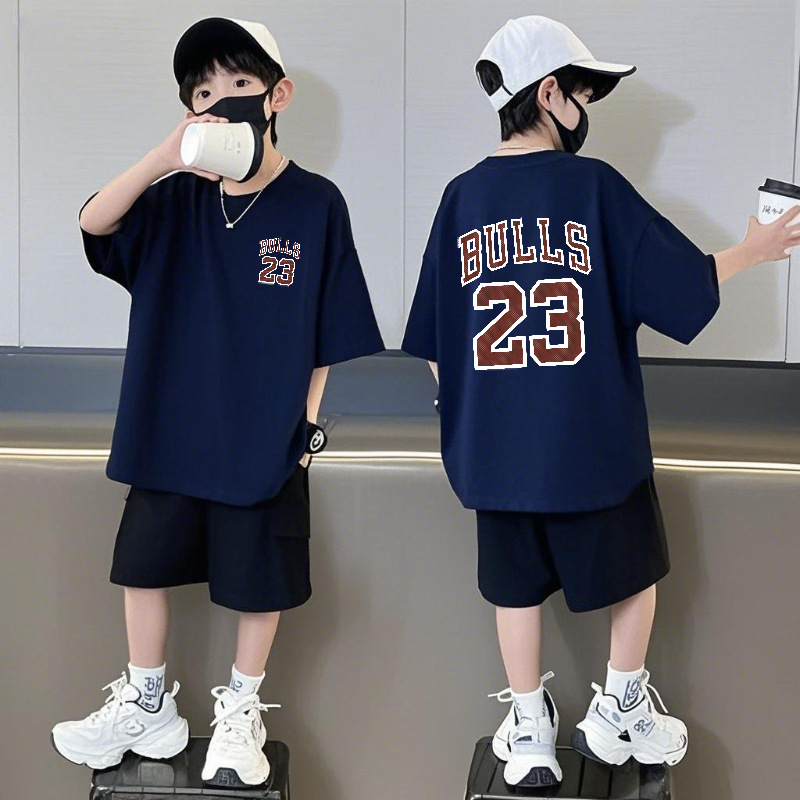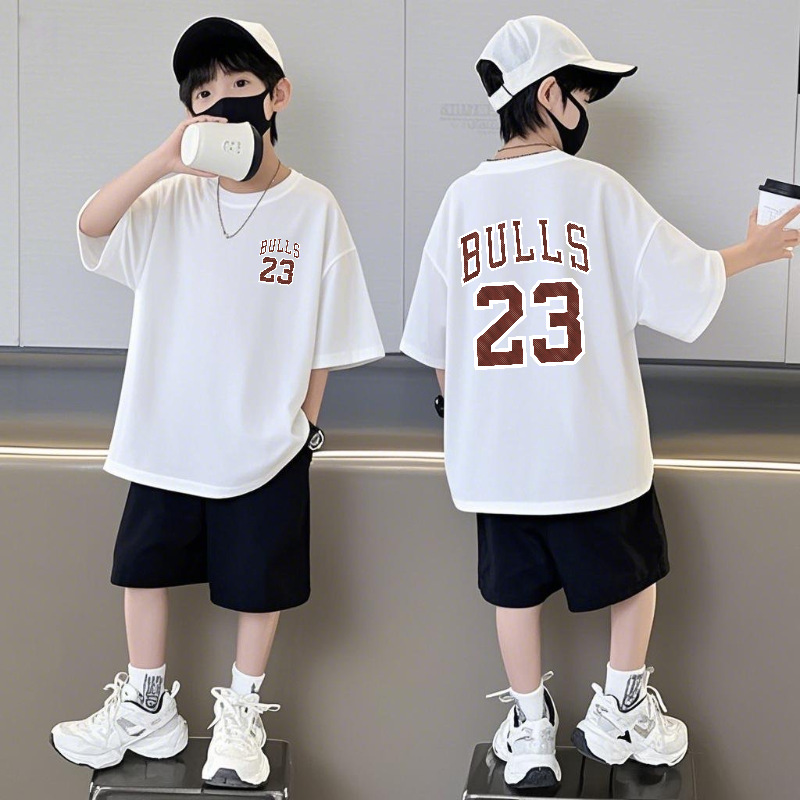 순수 코튼 반팔 반바지 소년 정장 여름 느슨한 라운드 넥 소년과 어린이 투피스 스포츠 농구 유니폼 유행