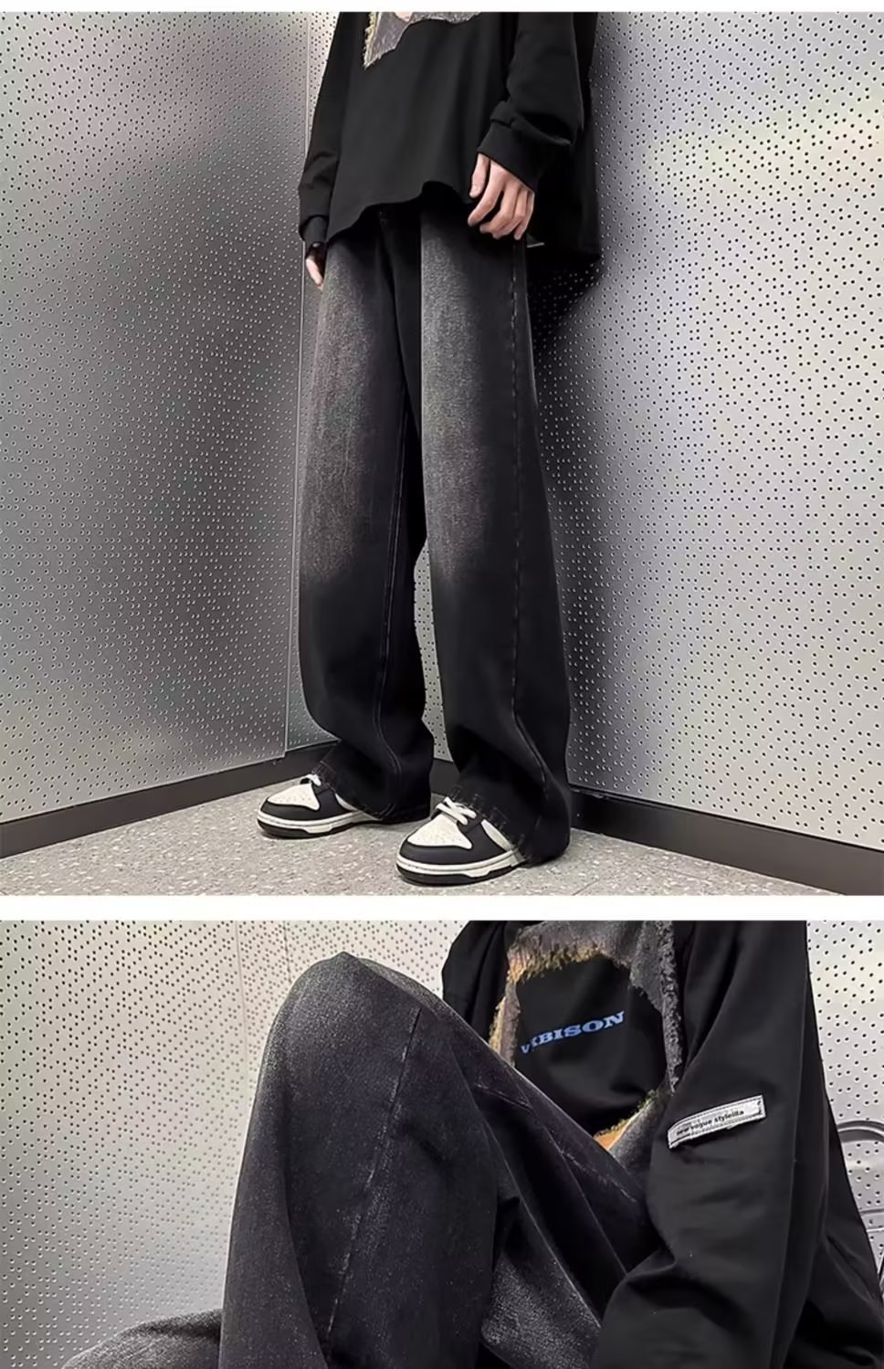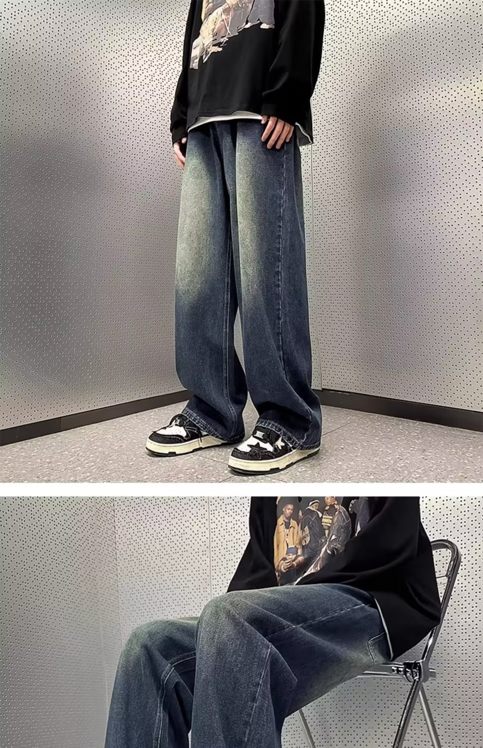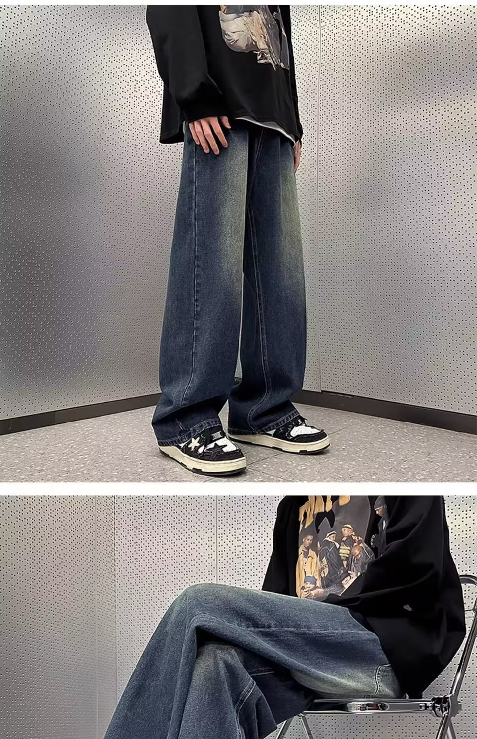 남성용 워싱 스트레이트 청바지, 봄, 가을 스타일, 아메리칸 루즈 와이드 레그 캐주얼 레트로 트렌디 브랜드 드레이프 바닥 길이 바지스토어 가기