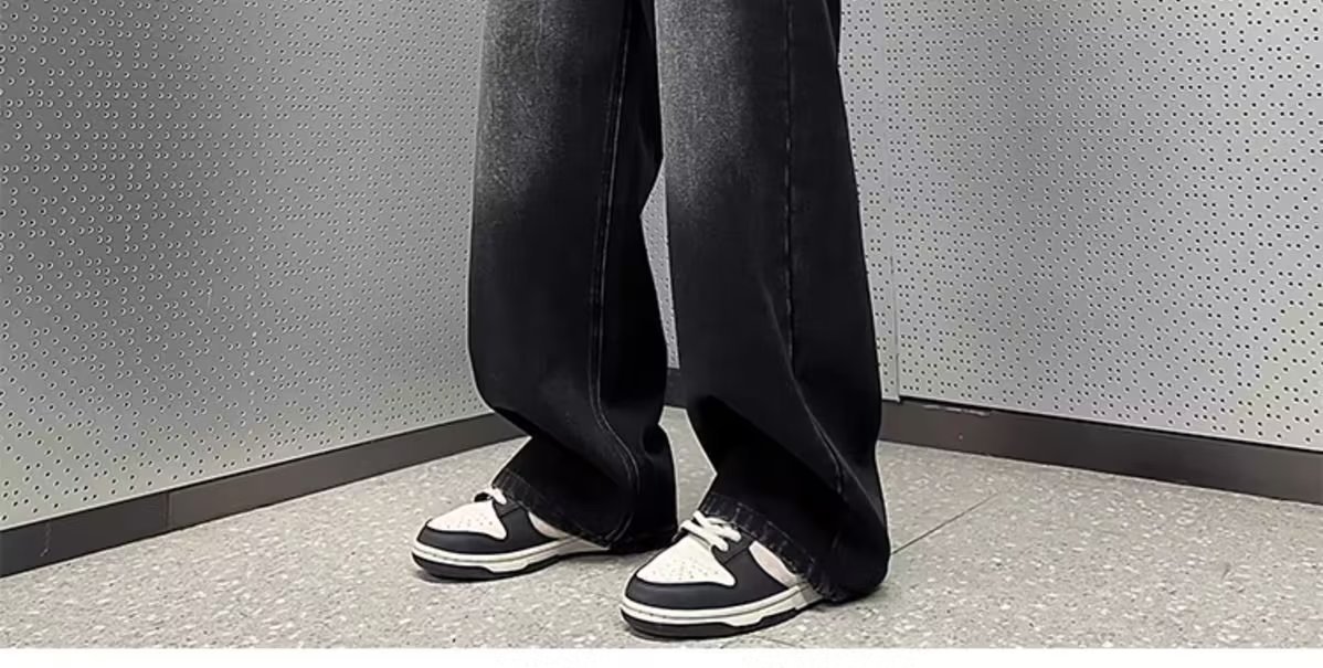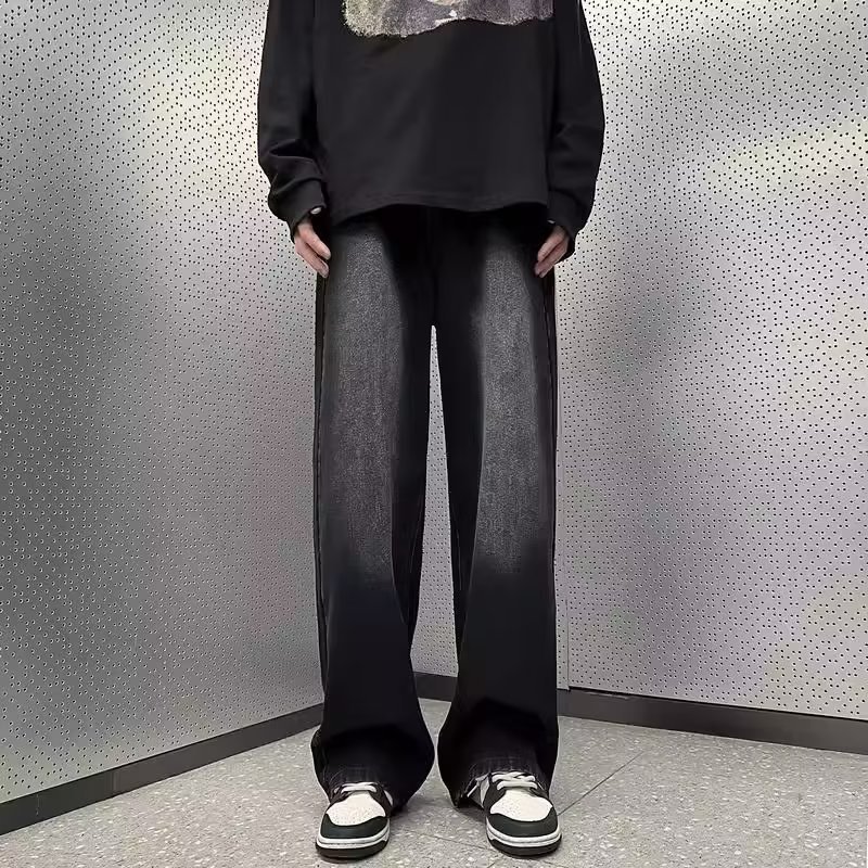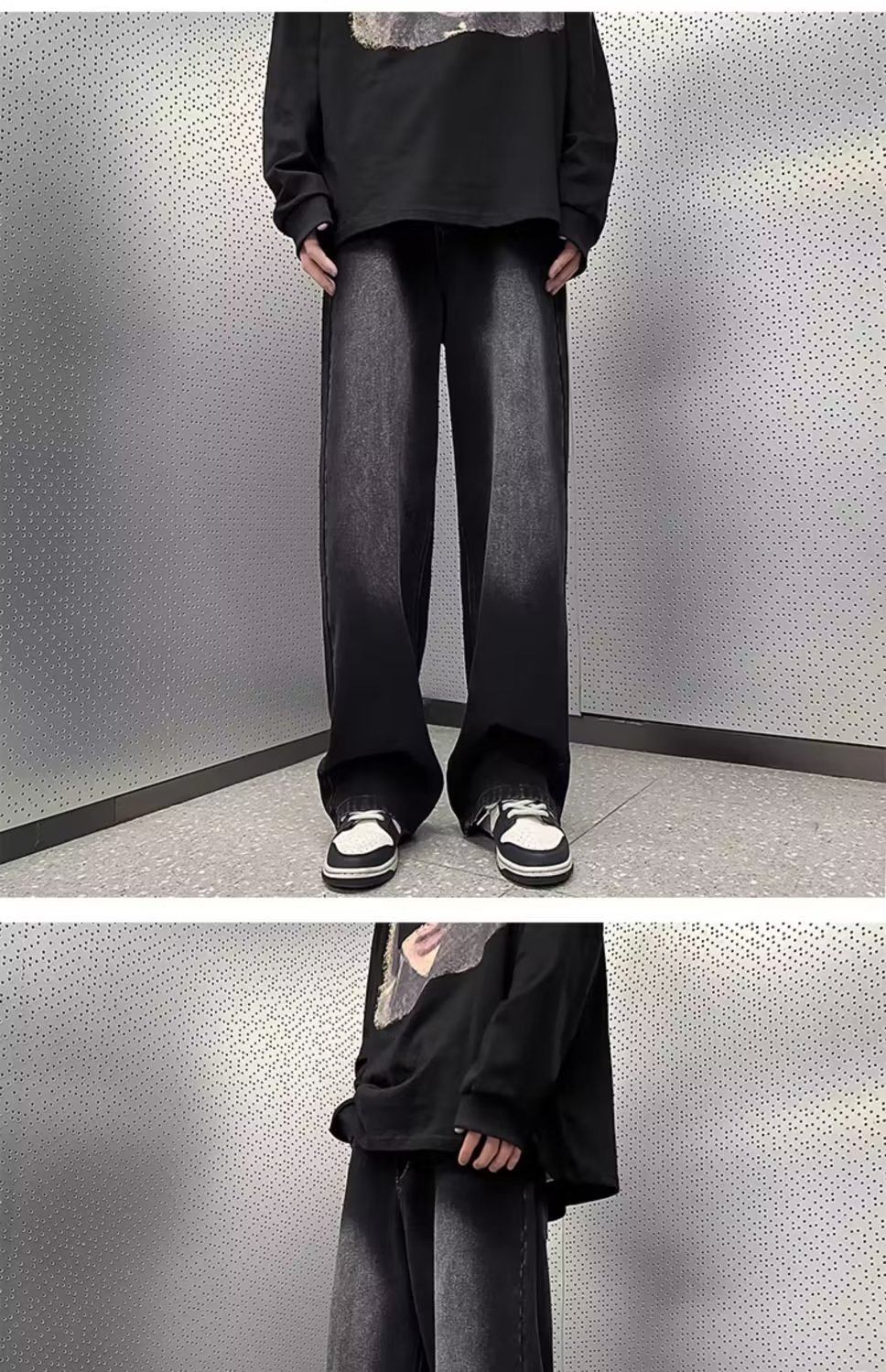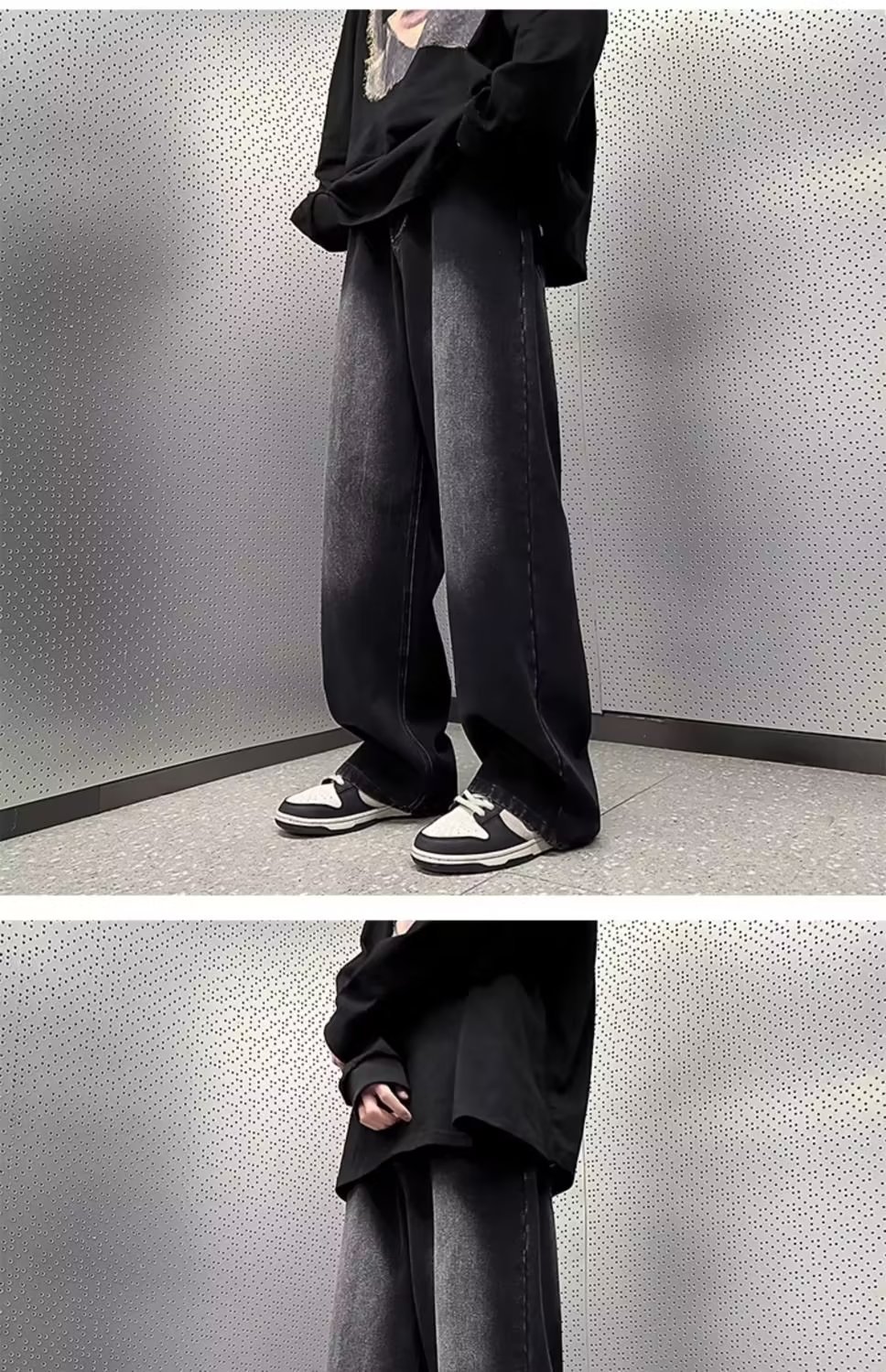 남성용 워싱 스트레이트 청바지, 봄, 가을 스타일, 아메리칸 루즈 와이드 레그 캐주얼 레트로 트렌디 브랜드 드레이프 바닥 길이 바지스토어 가기
