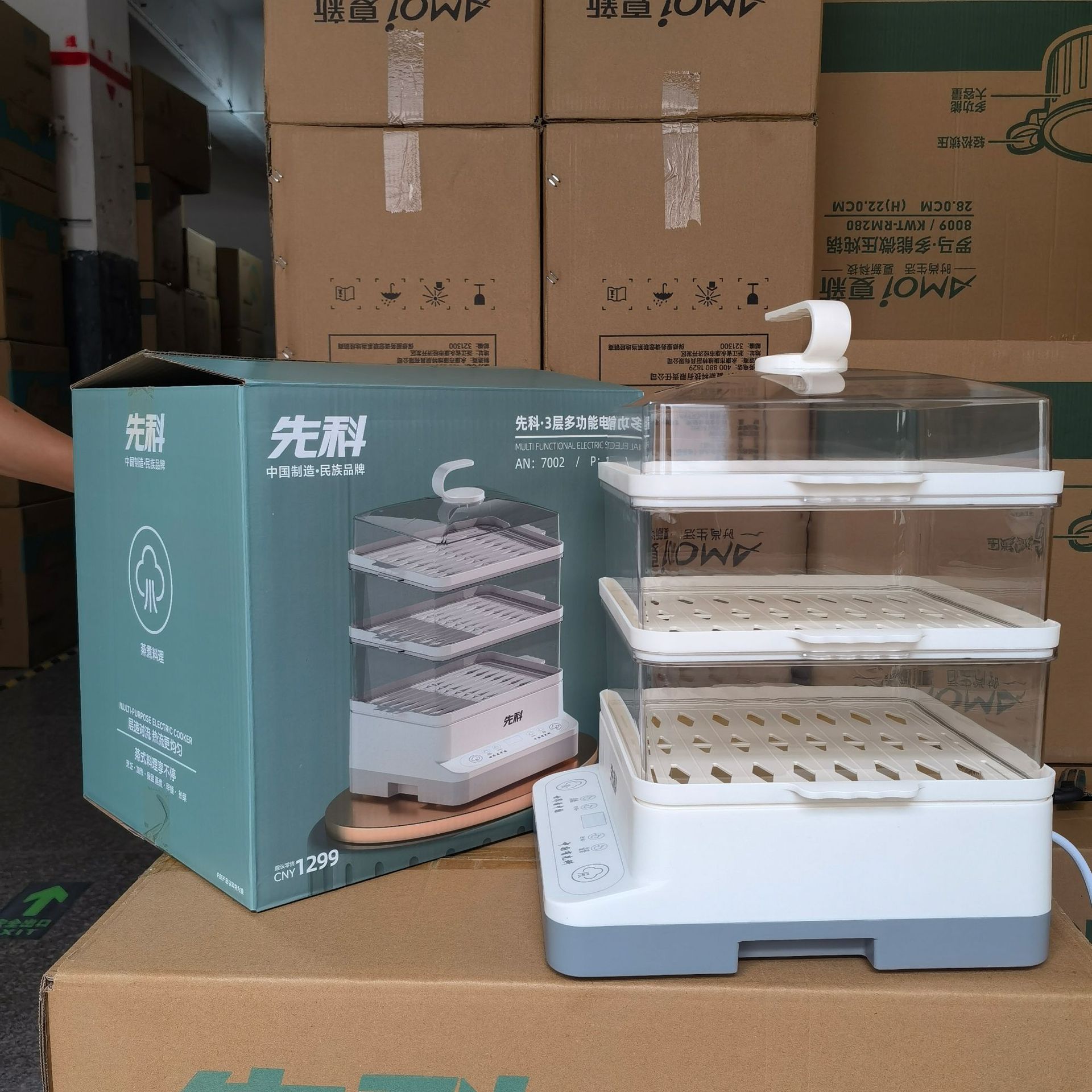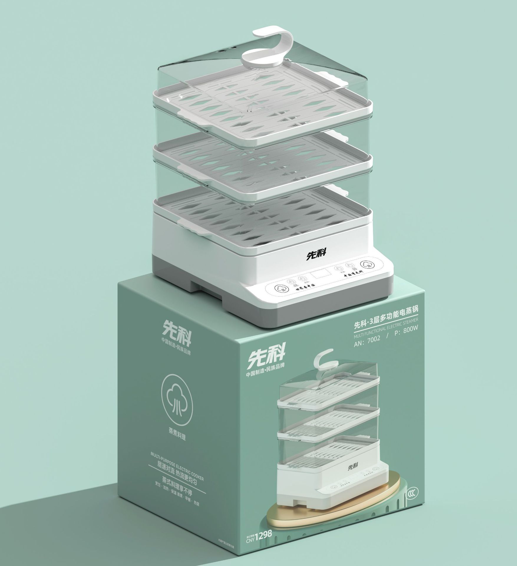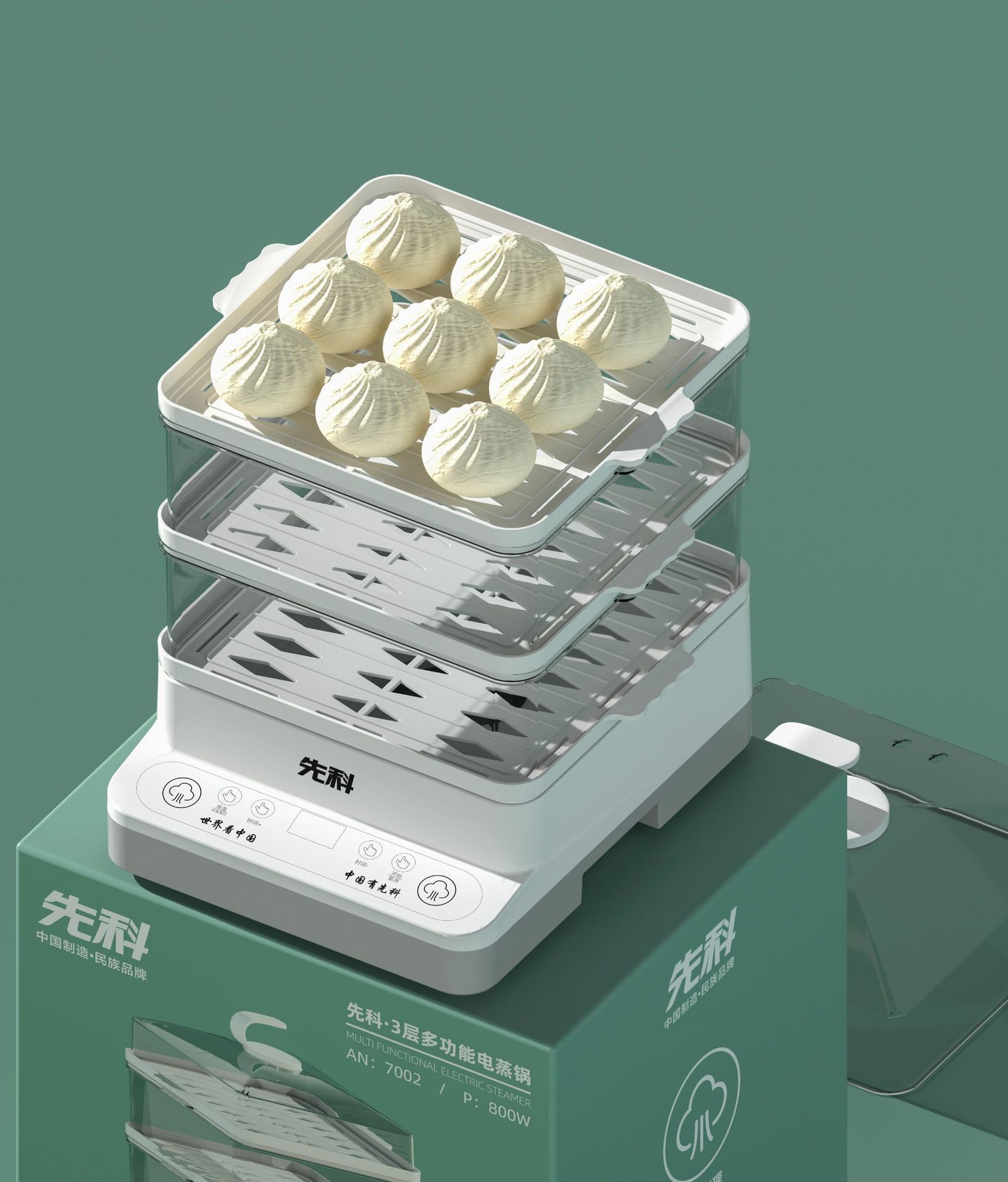 Xianke 전기 찜통 다기능 가정용 스마트 예약 전기 찜통 3층 대용량 아침 식사 기계 찐빵 찜통스토어 가기