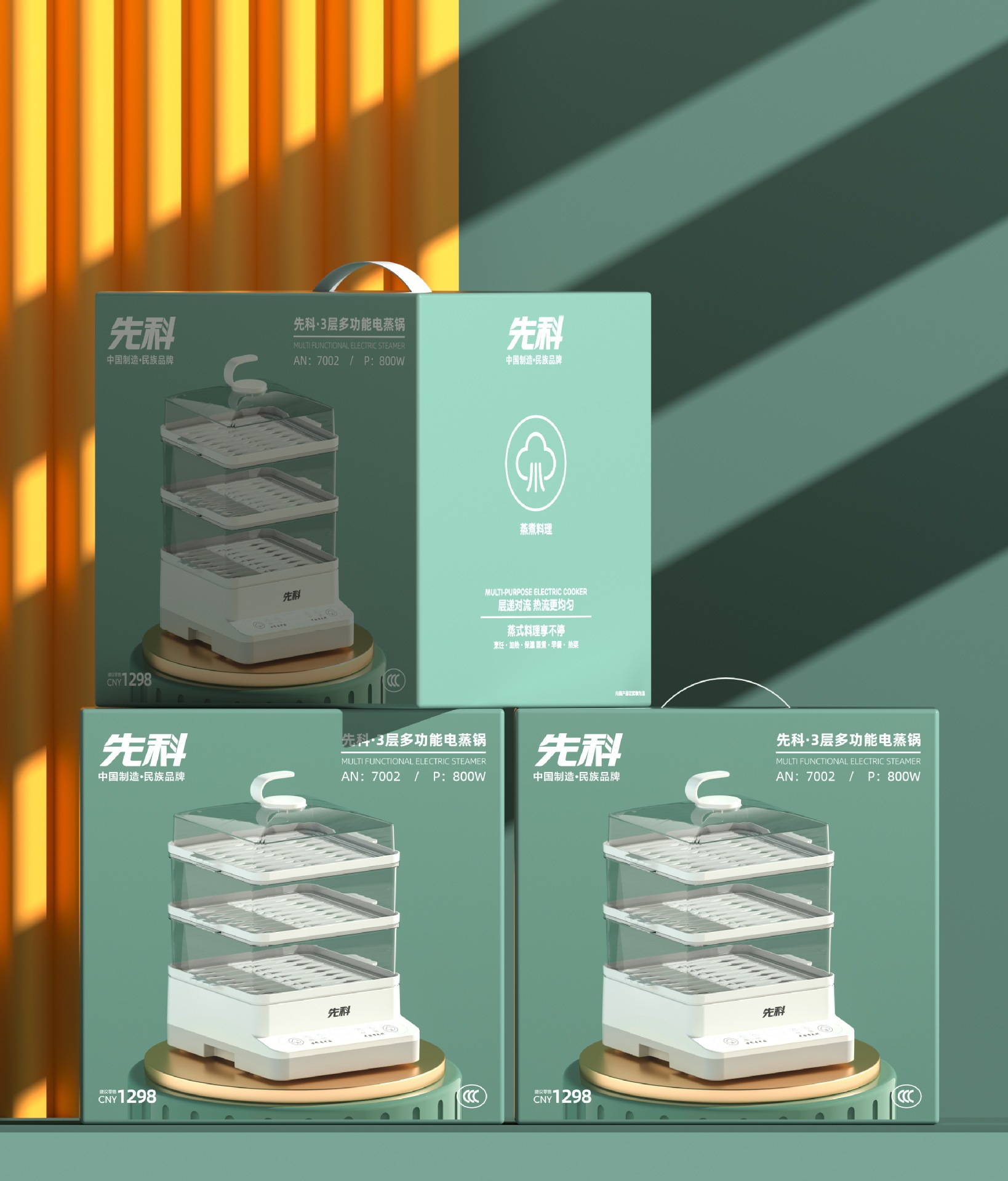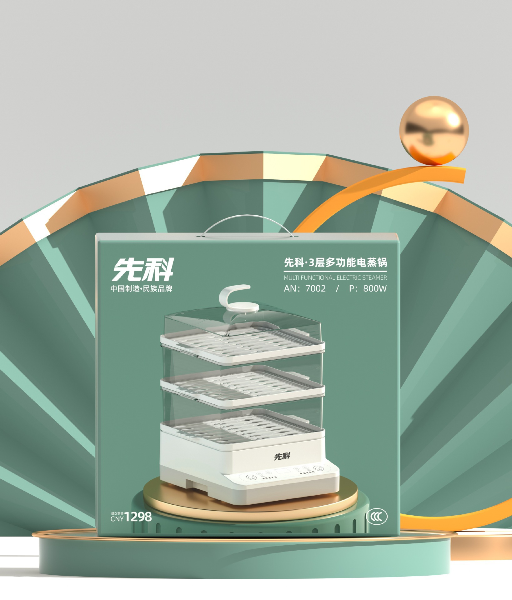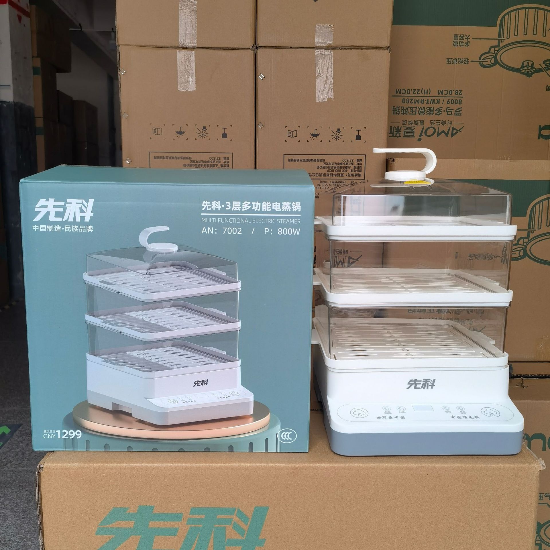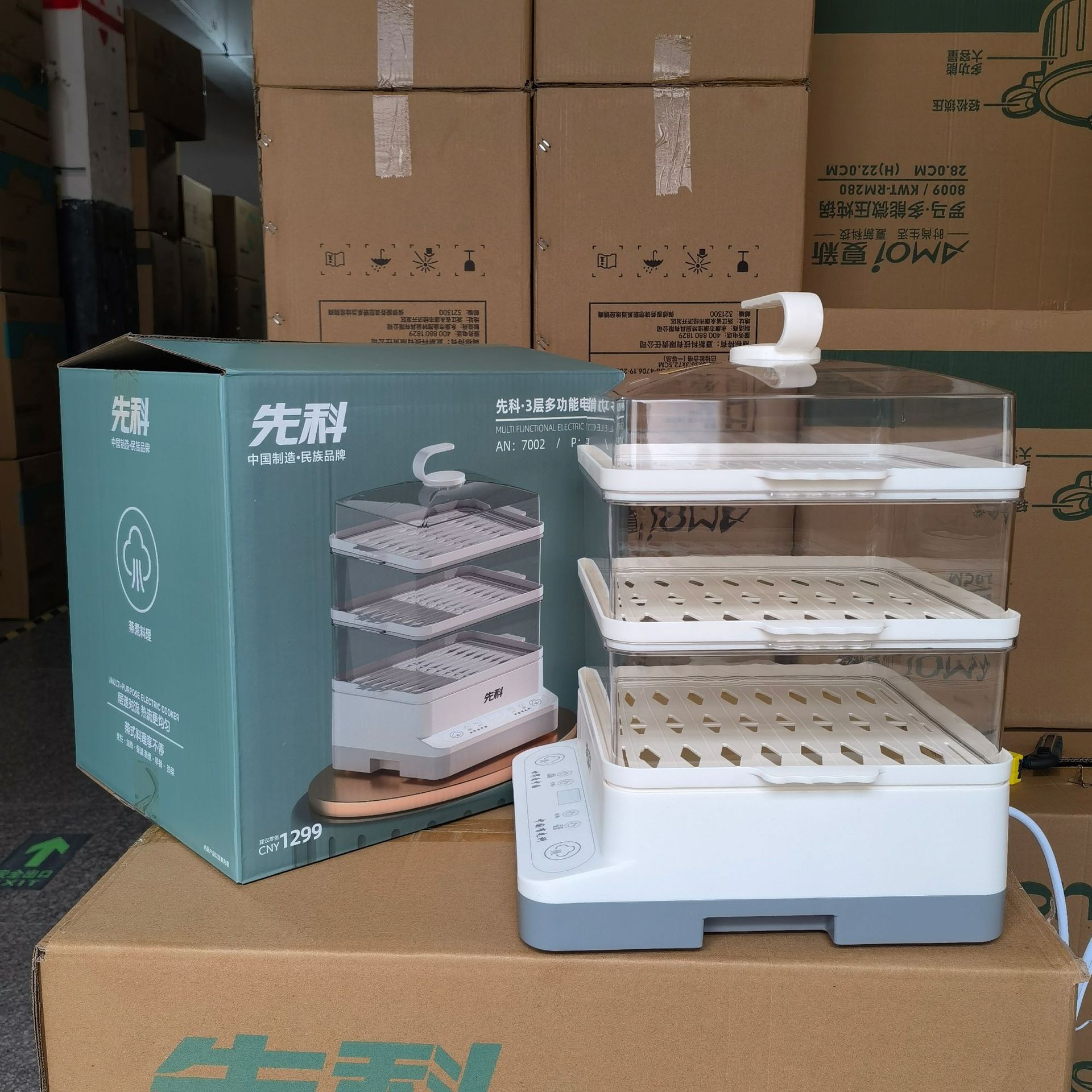 Xianke 전기 찜통 다기능 가정용 스마트 예약 전기 찜통 3층 대용량 아침 식사 기계 찐빵 찜통스토어 가기