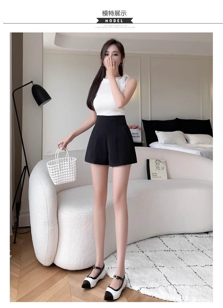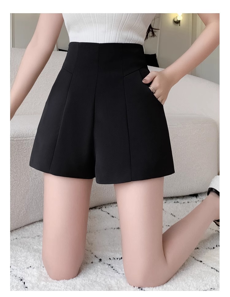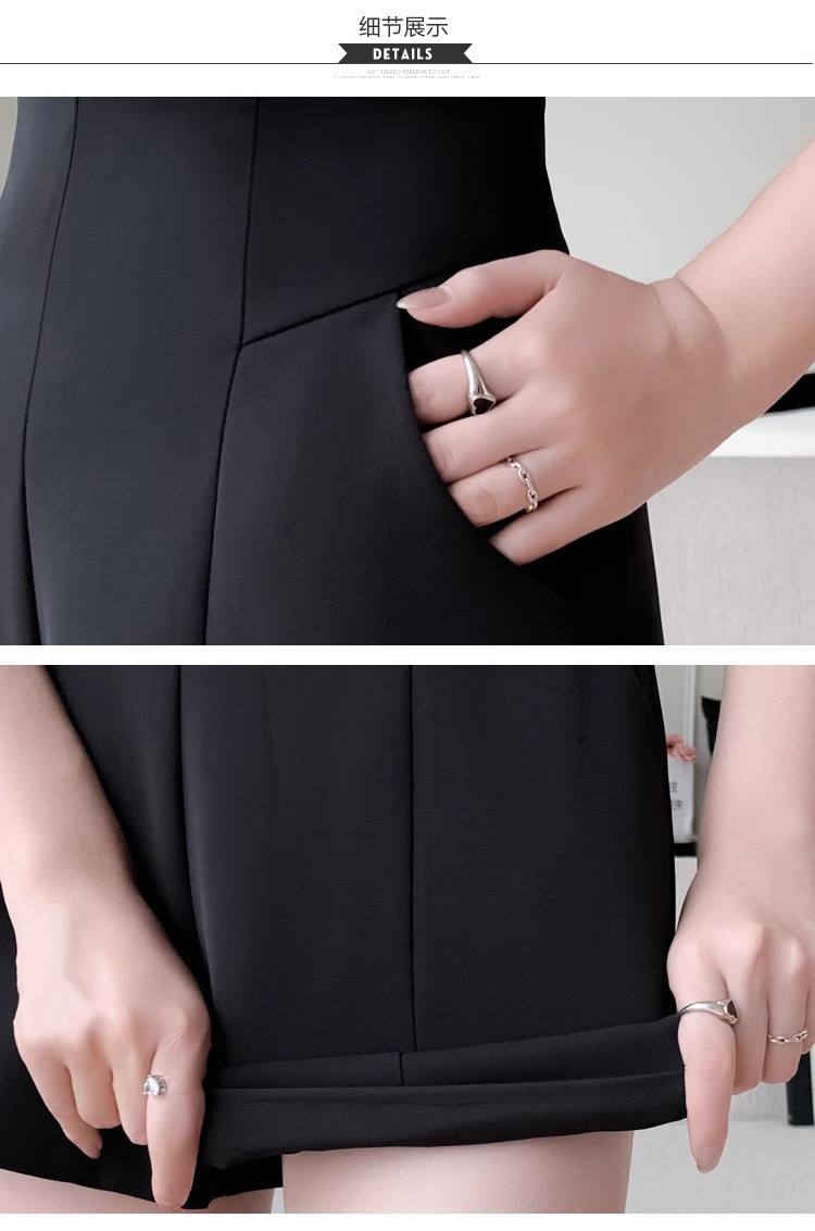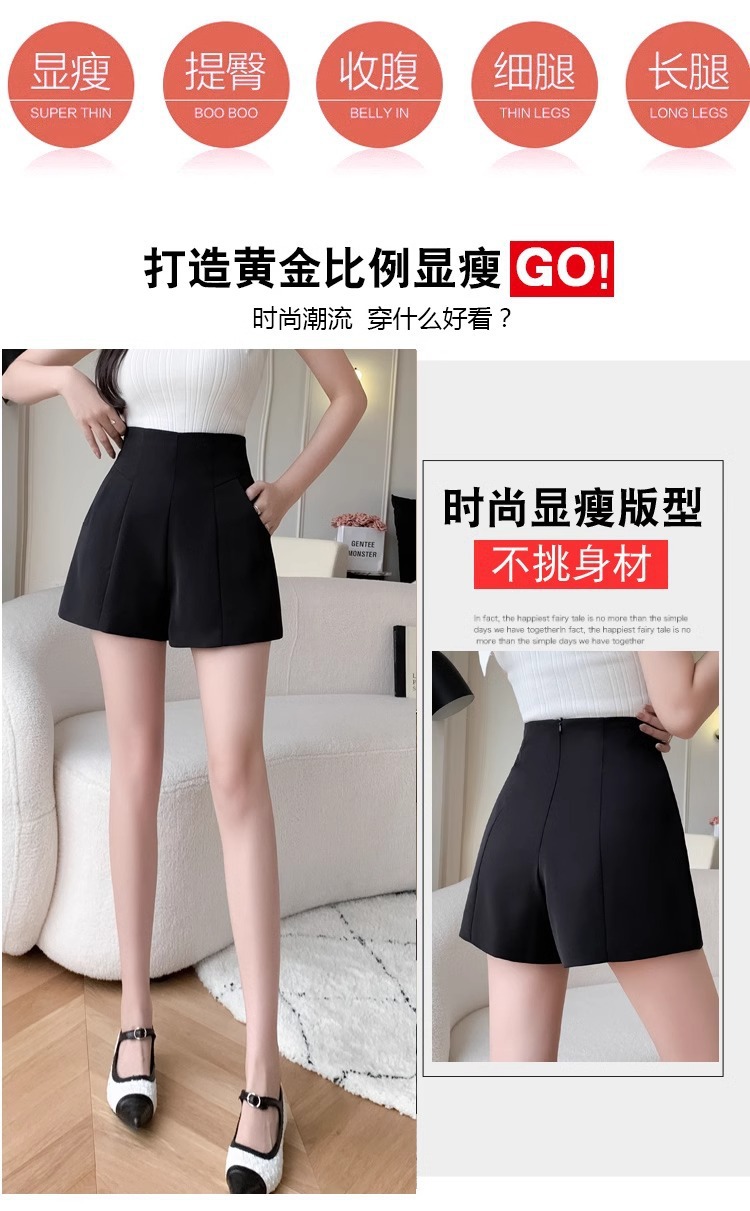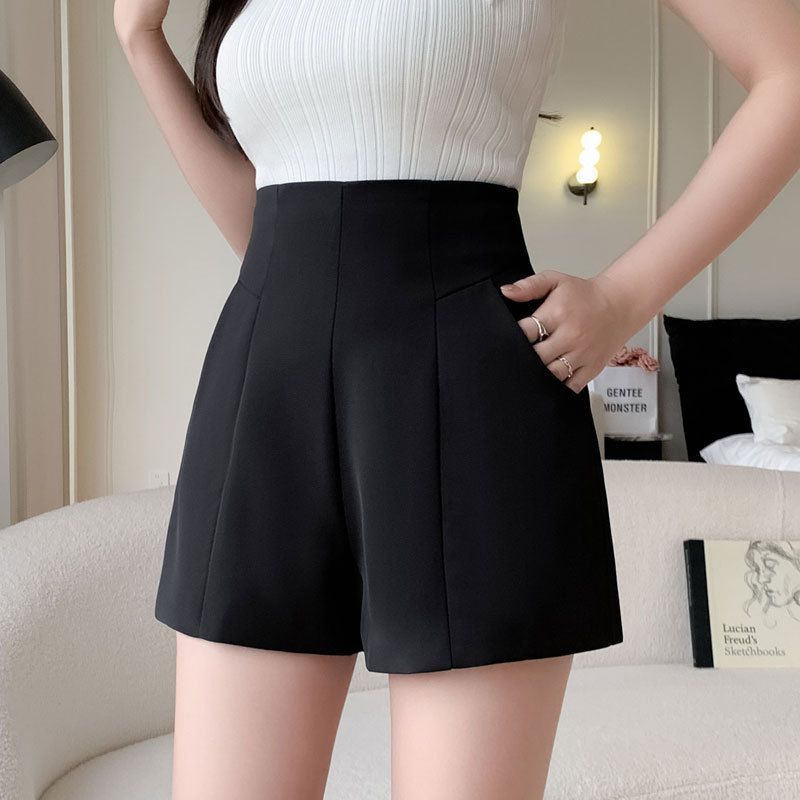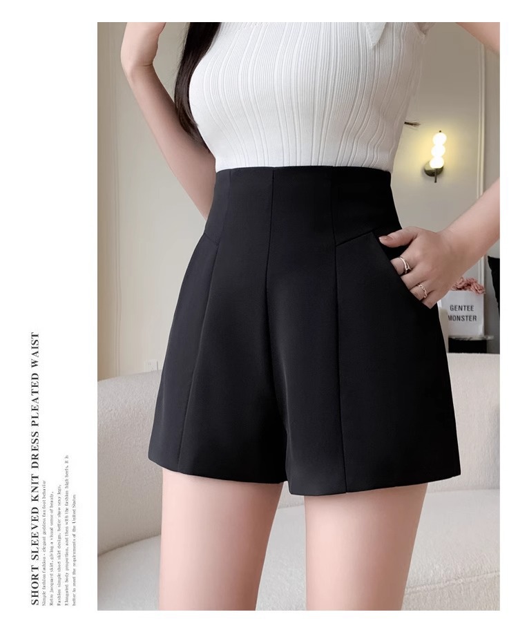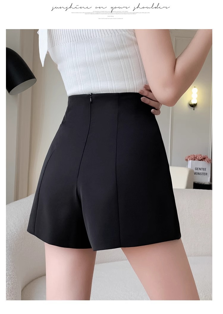 여성용 여름 디자인 백 지퍼 반바지, 얇고 슬림한 캐주얼 와이드 팬츠, 아우터용 블랙 슈트 A라인 반바지스토어 가기
