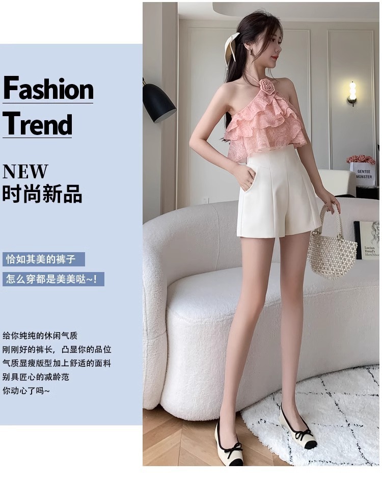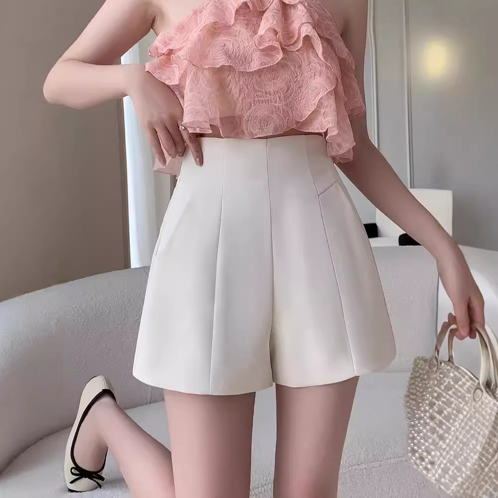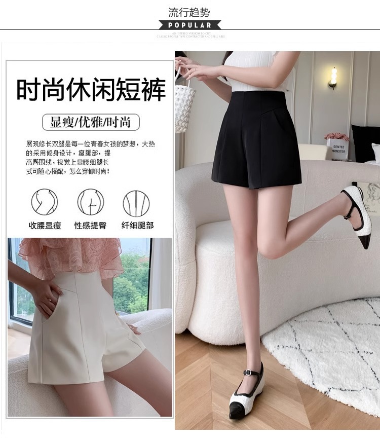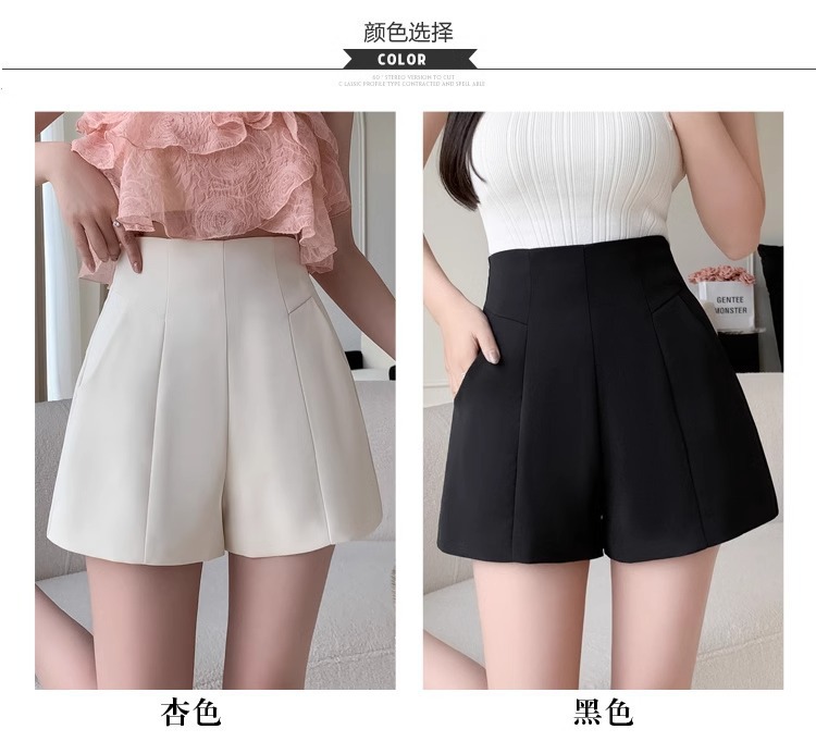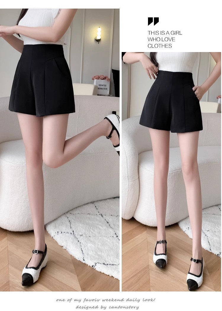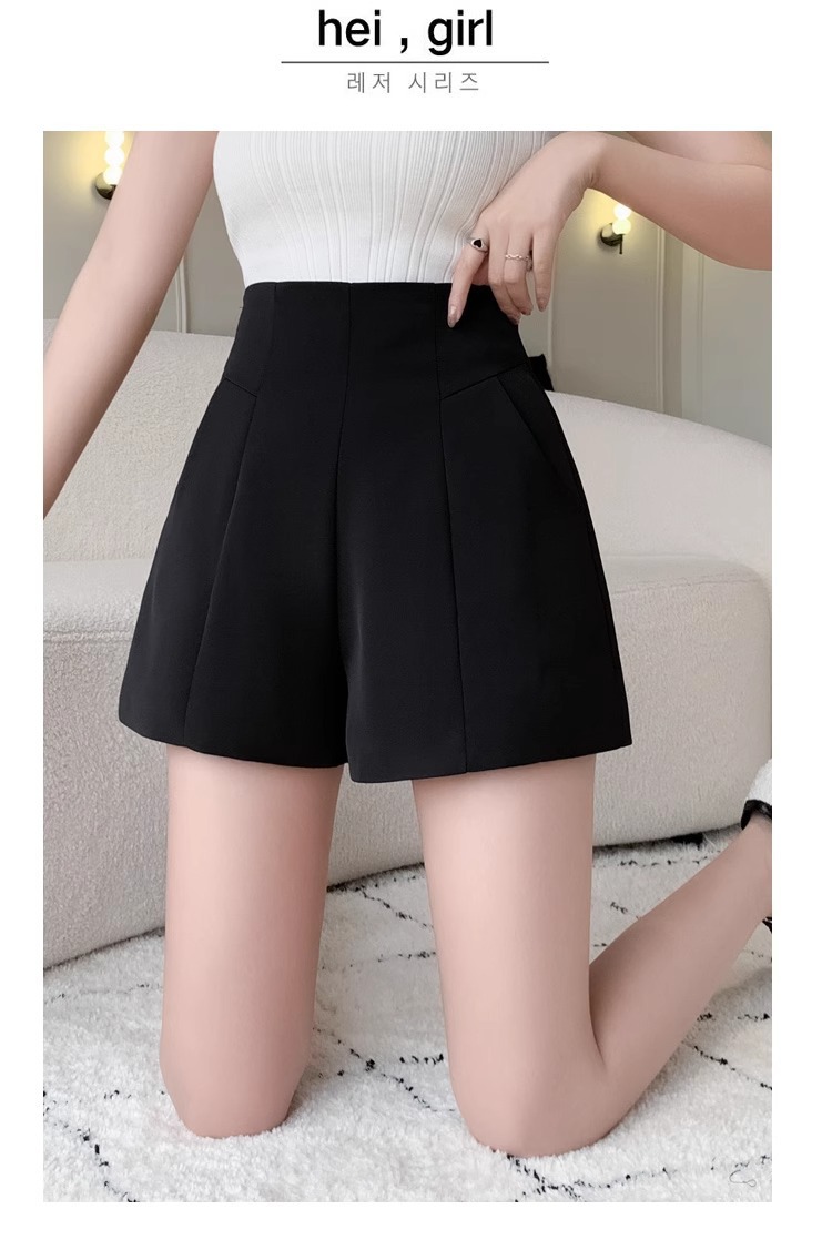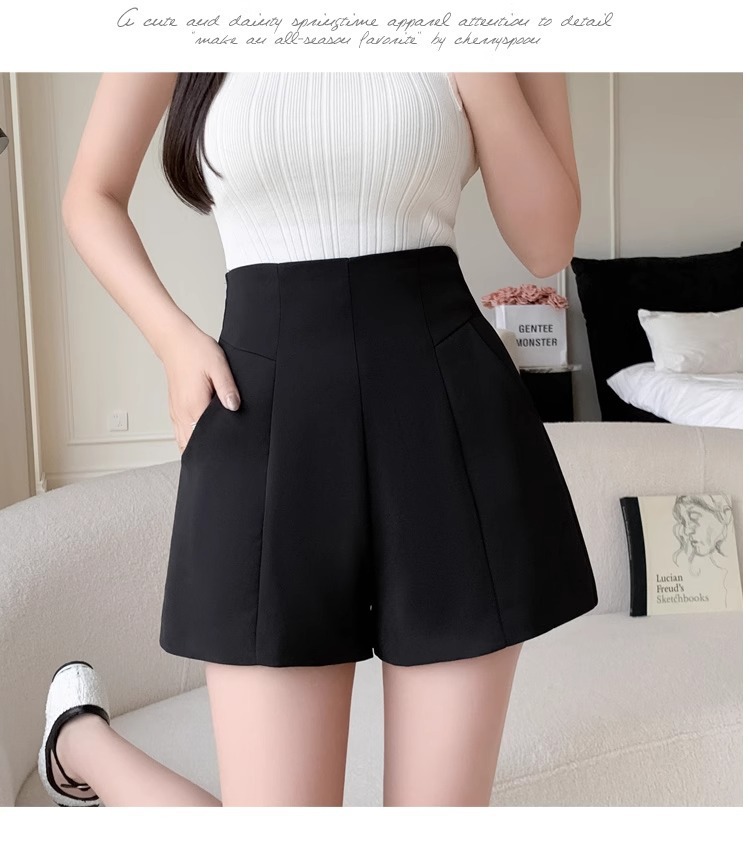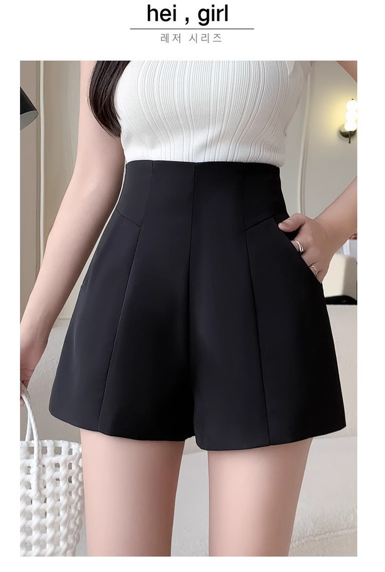 여성용 여름 디자인 백 지퍼 반바지, 얇고 슬림한 캐주얼 와이드 팬츠, 아우터용 블랙 슈트 A라인 반바지스토어 가기