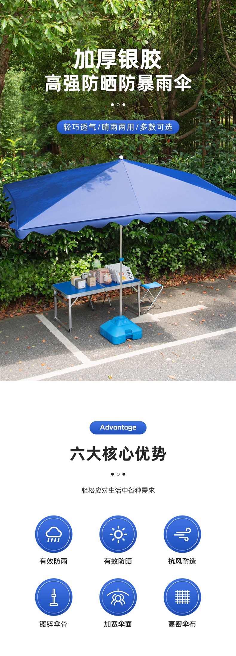 • 점장은 내구성을 높이기 위해 더 두꺼운 우산 갈비뼈를 권장합니다.