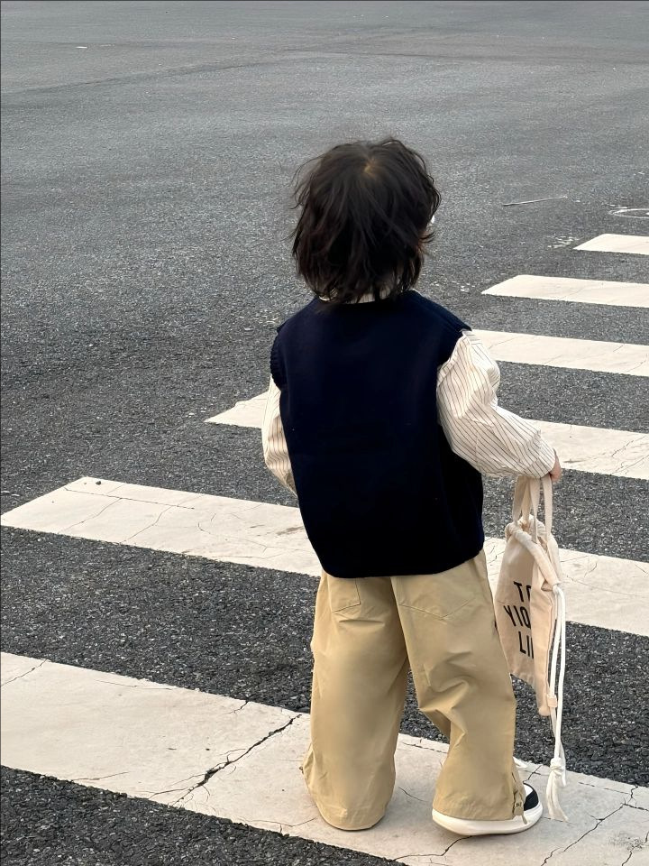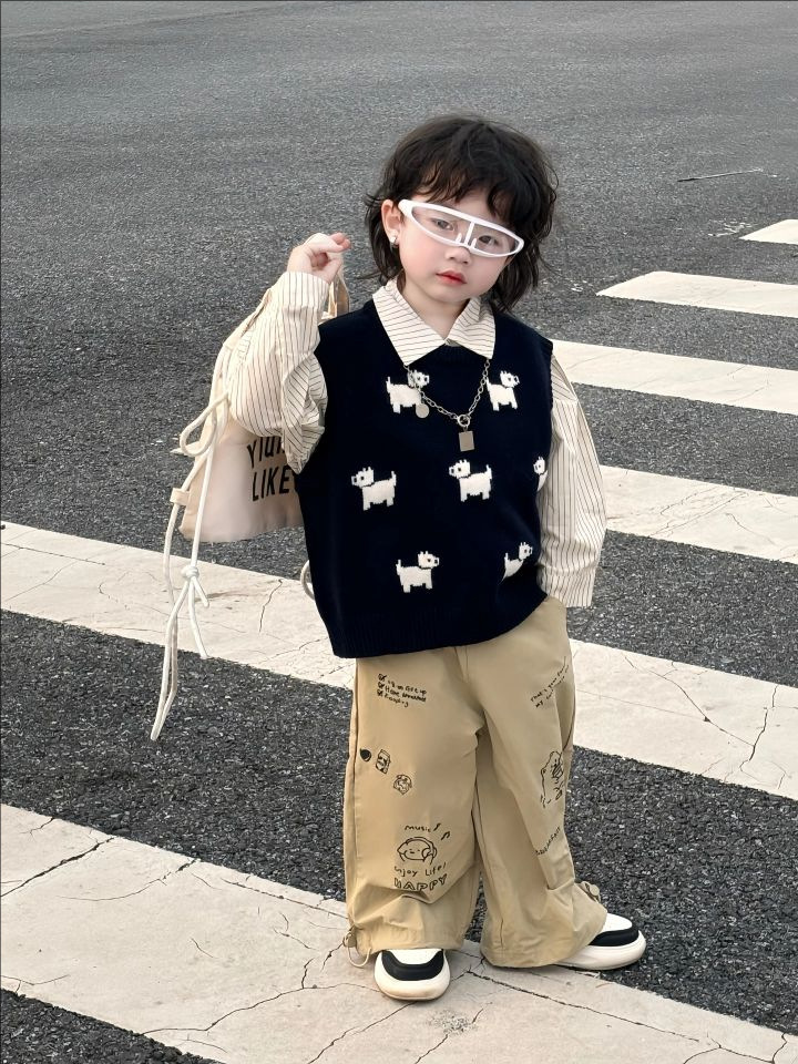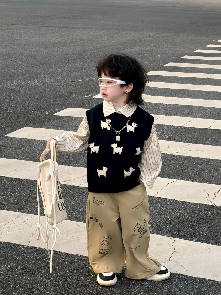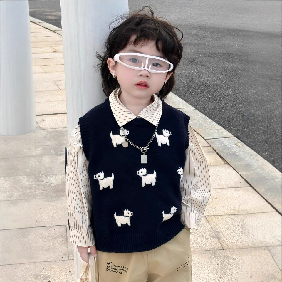 어린이 니트 조끼 2025 새로운 봄, 가을 의류 남성과 여성의 아기 풀오버 라운드 넥 조끼 어린이 만화 스웨터스토어 가기