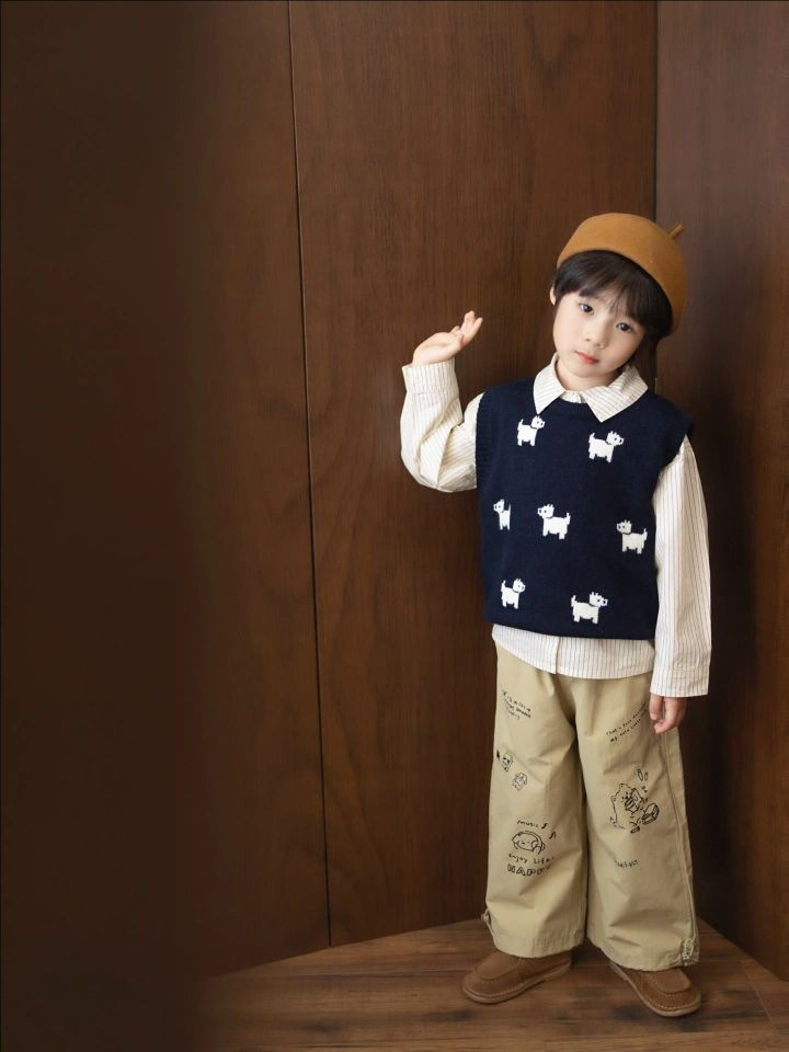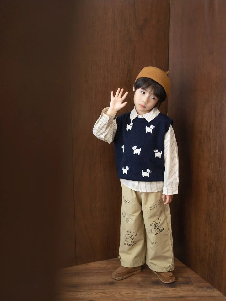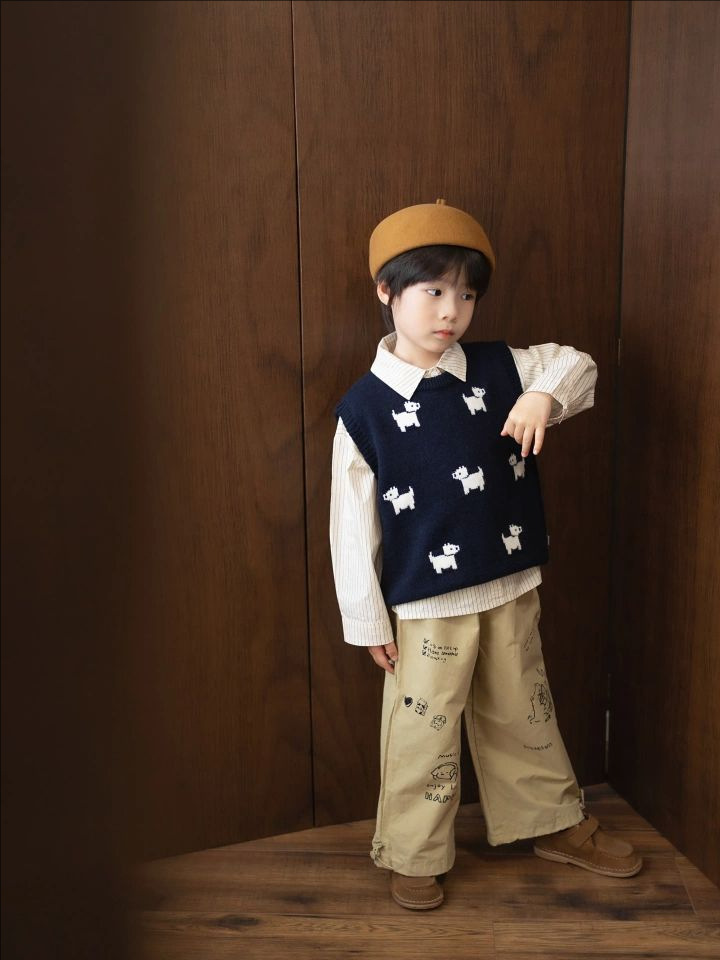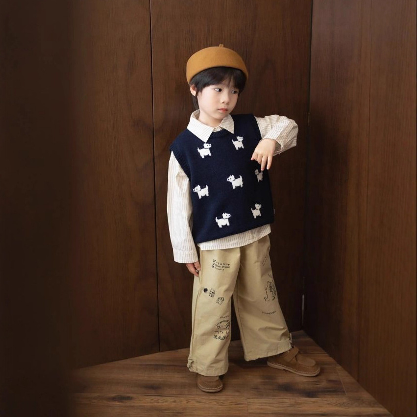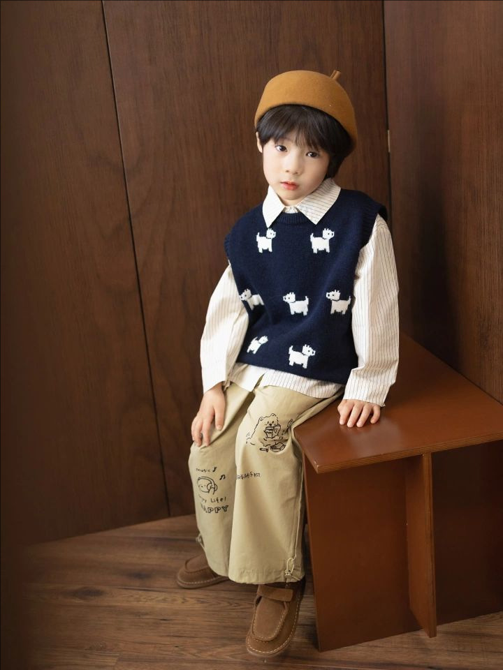 어린이 니트 조끼 2025 봄과 가을 새로운 스타일 남성과 여성의 아기 풀오버 라운드 넥 조끼 어린이 만화 스웨터스토어 가기