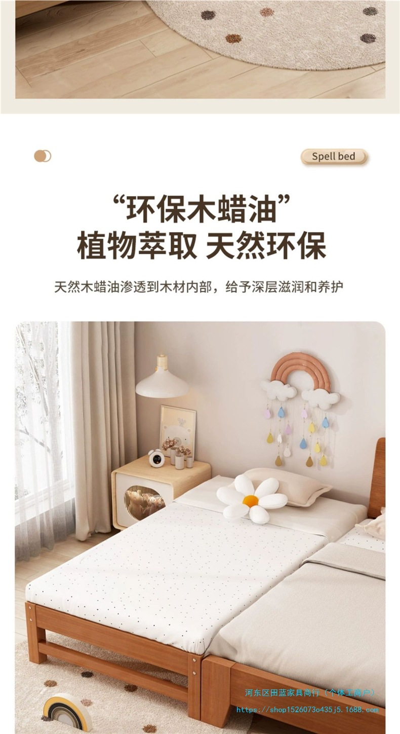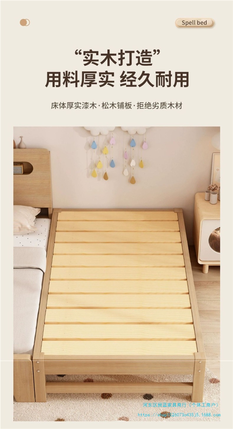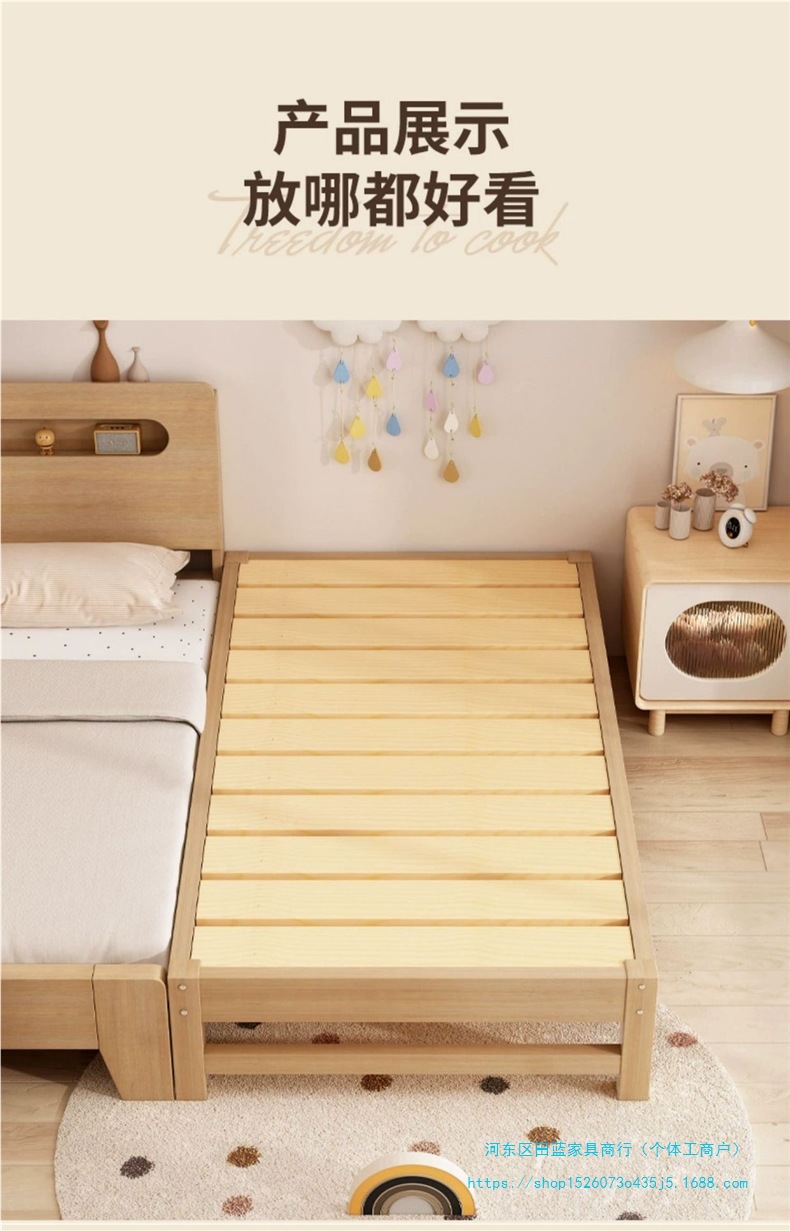 단단한 나무 어린이 접합 침대 아기 침대 옆 확장 및 확대 싱글 유아용 침대 소년과 소녀를위한 원활한 접합 대형 침대스토어 가기