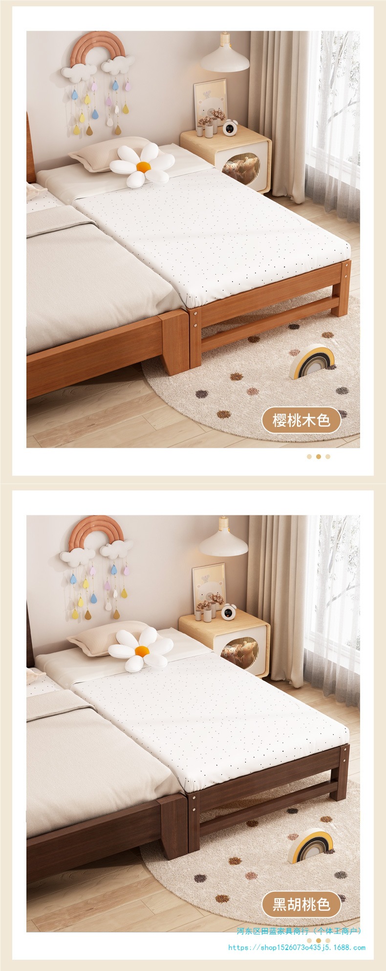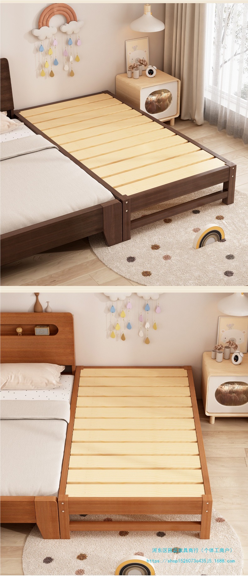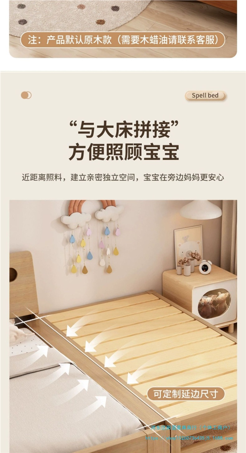단단한 나무 어린이 접합 침대 아기 침대 옆 확장 및 확대 싱글 유아용 침대 소년과 소녀를위한 원활한 접합 대형 침대스토어 가기
