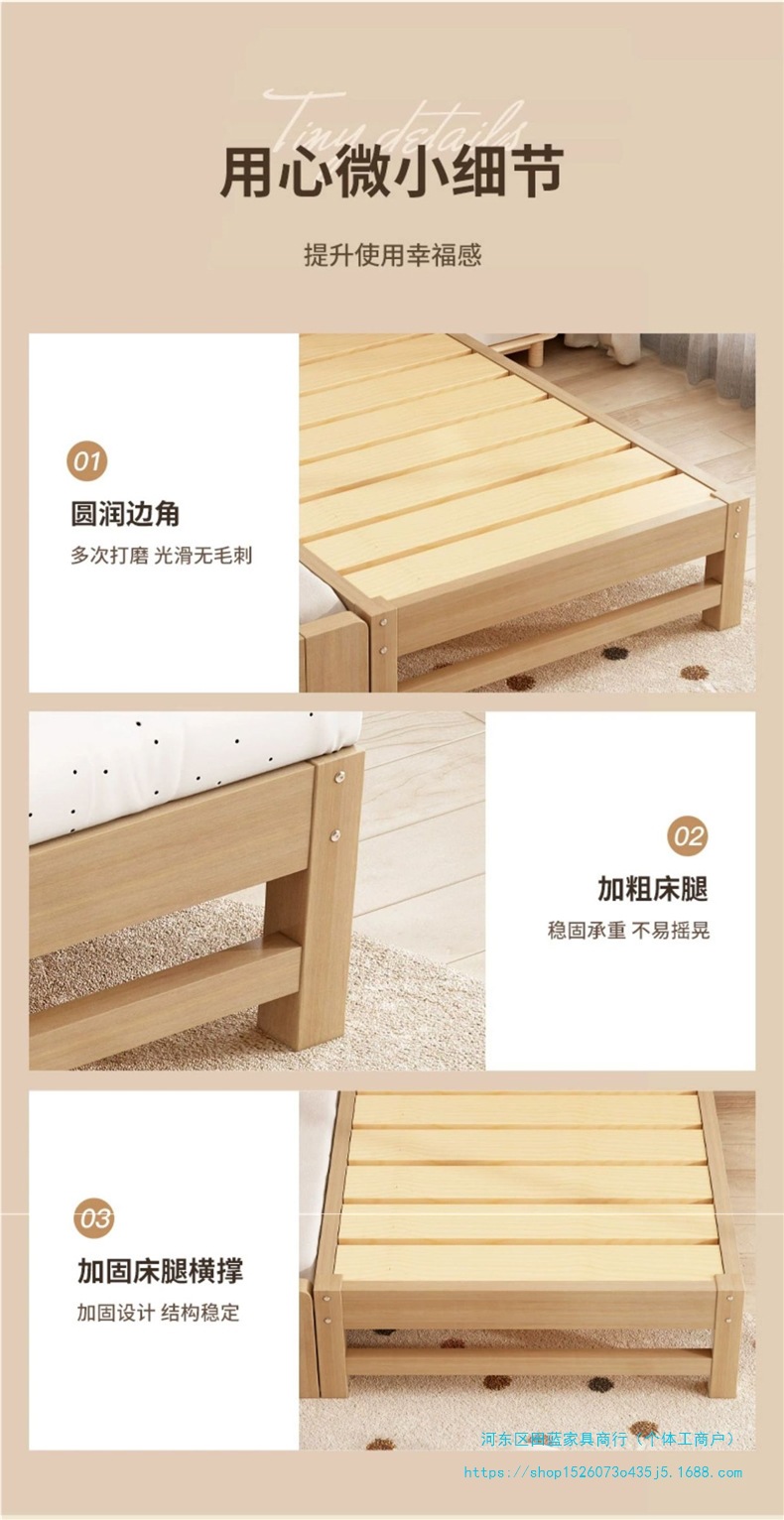 • 원목 색상 - 원목 - 침대 다리 높이 무료 맞춤 제작(코코넛 야자 매트리스 포함)