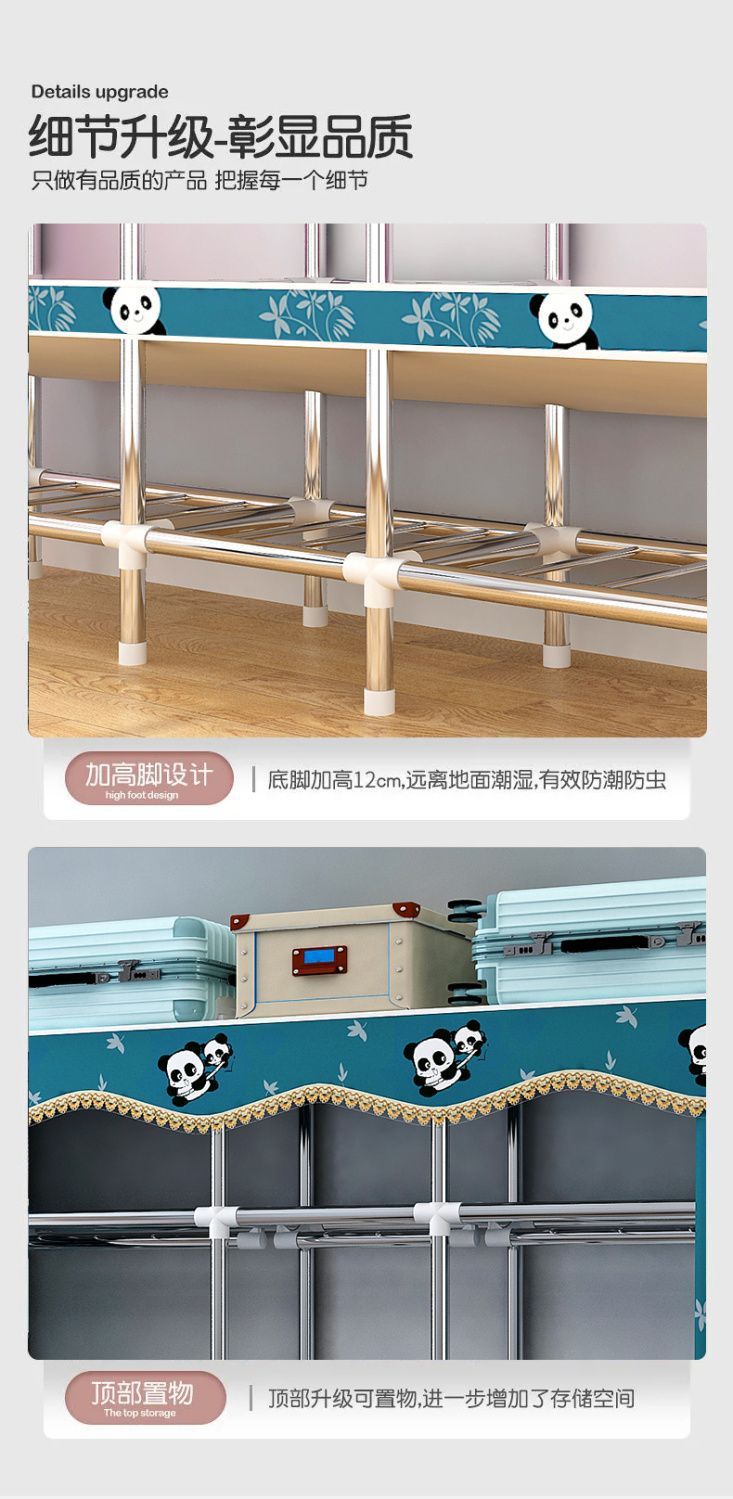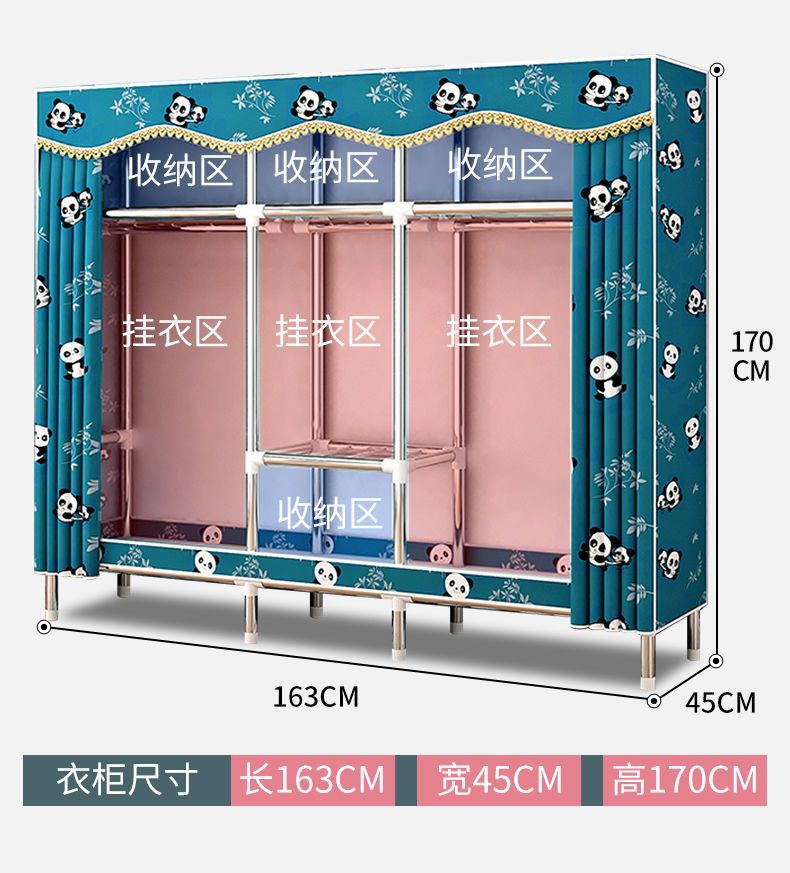 가정용 침실 임대용 간단한 옷장 천 옷장은 튼튼하고 내구성이 뛰어나며 완전히 밀폐된 지퍼가 달린 작은 옷장으로 조립됩니다.