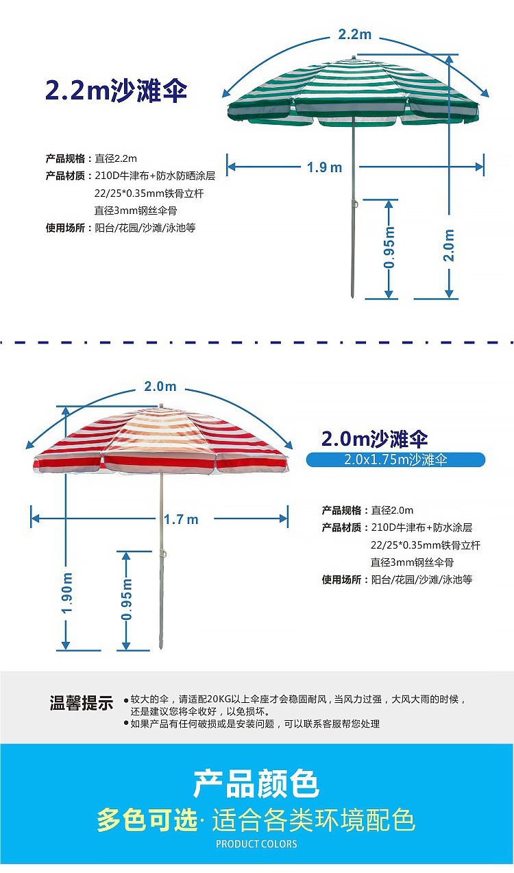 • 2.2m 파란색과 흰색 줄무늬, 차양 및 방수, 베이스 없음