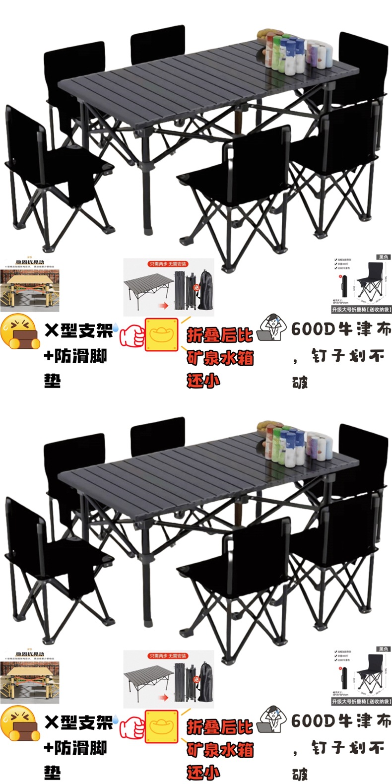 • 제트블랙 [120cm] 접이식 테이블 + 접이식 의자 6개