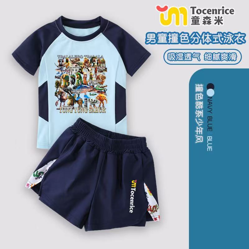 Tungtungsahur Tongtongge 나무 막대 외국 산과 바다 어린이 수영복 스플릿 소년 수영복 세트스토어 가기