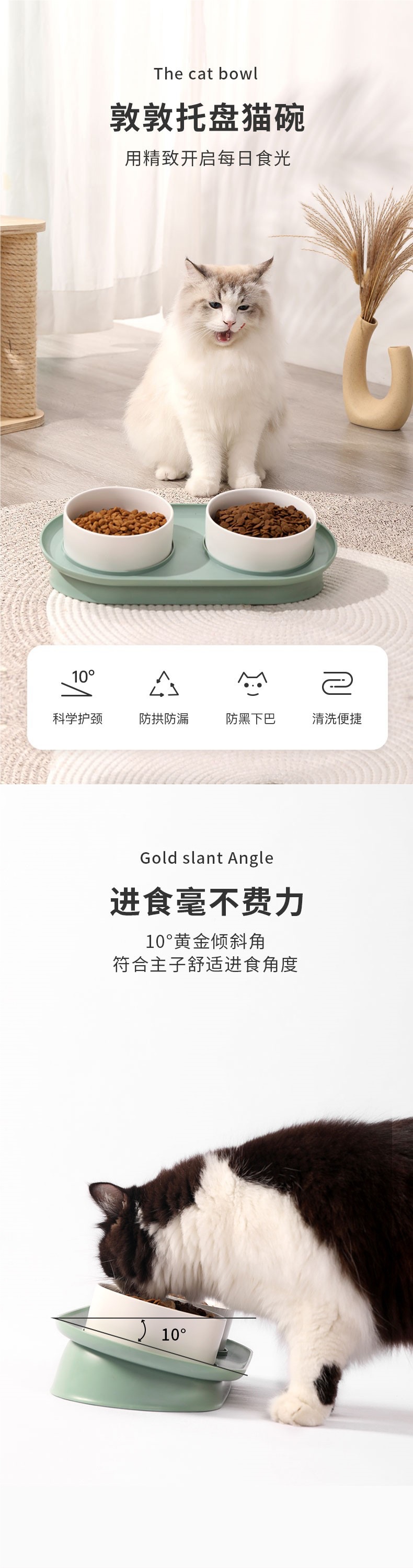 고양이 그릇 세라믹 더블 그릇 개 그릇 고양이 먹이 그릇 경추 보호 고양이 먹이 그릇 식수 그릇 개 그릇 뒤집힘 방지 애완 동물 용품