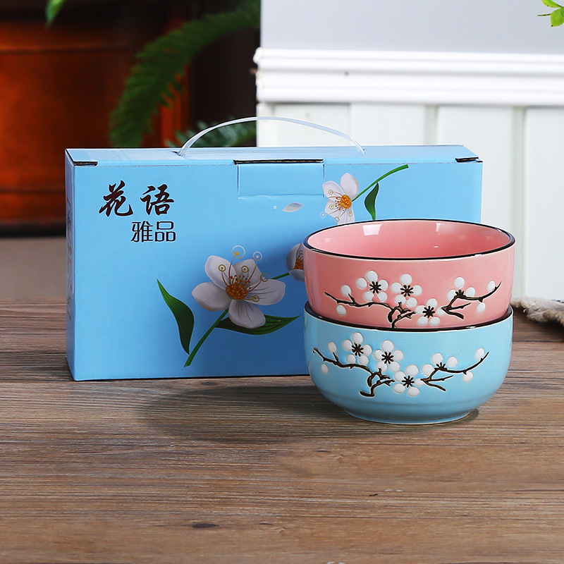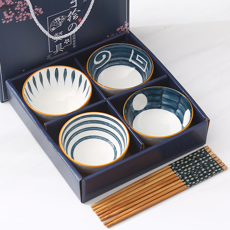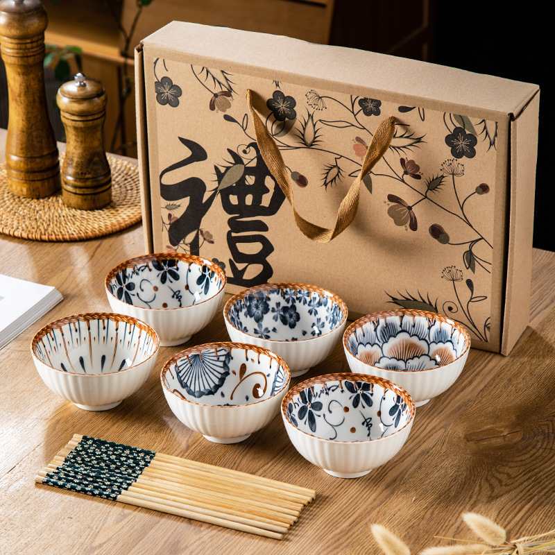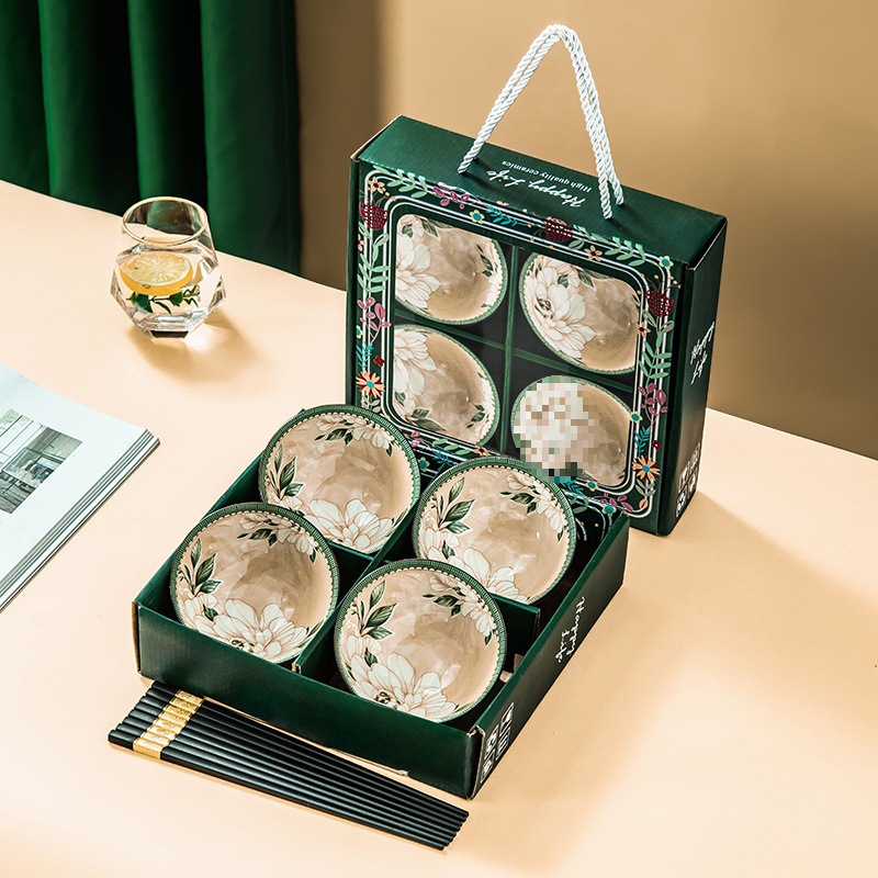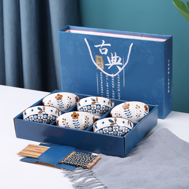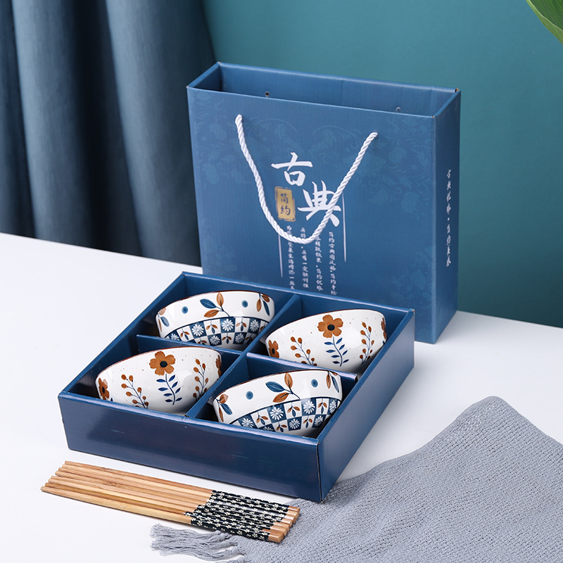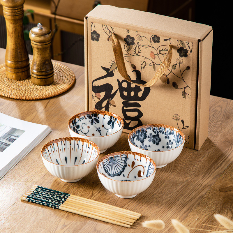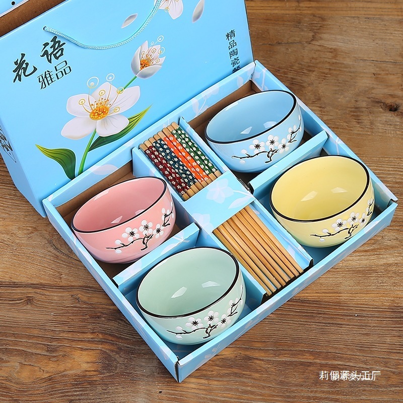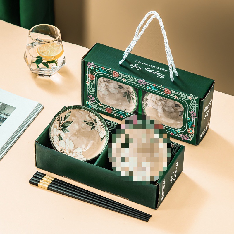 선물 그릇 세트, 가정용 식사 세트, 그릇과 접시, 청화백자 그릇, 도자기 그릇과 젓가락 세트, 식기 선물스토어 가기