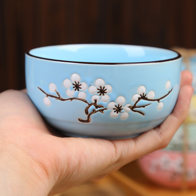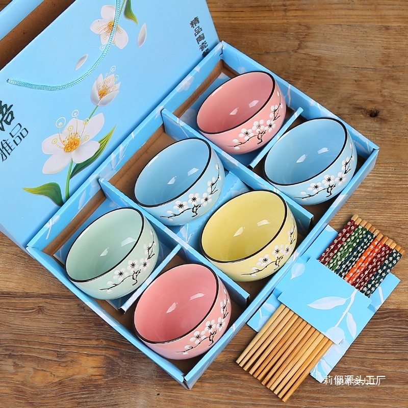 • 손으로 그린 ​​눈 매화 여섯 그릇과 여섯 개의 젓가락