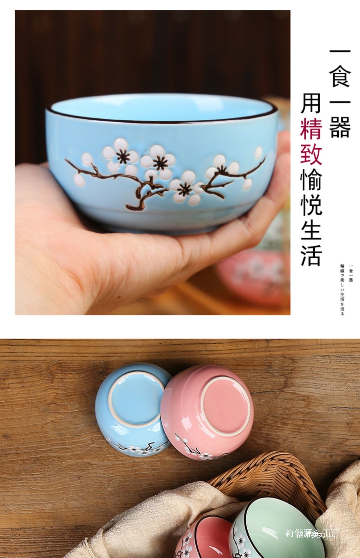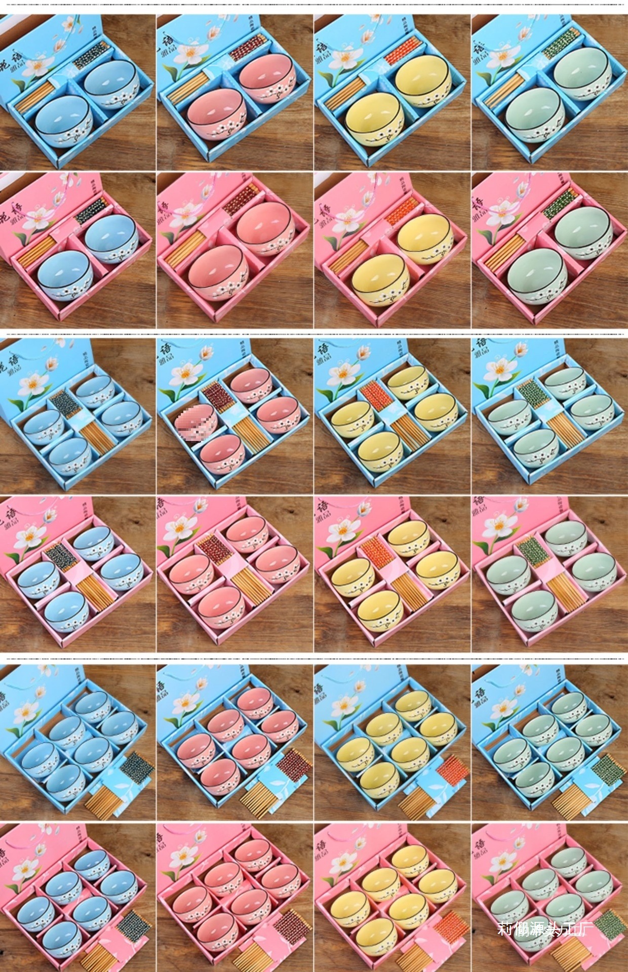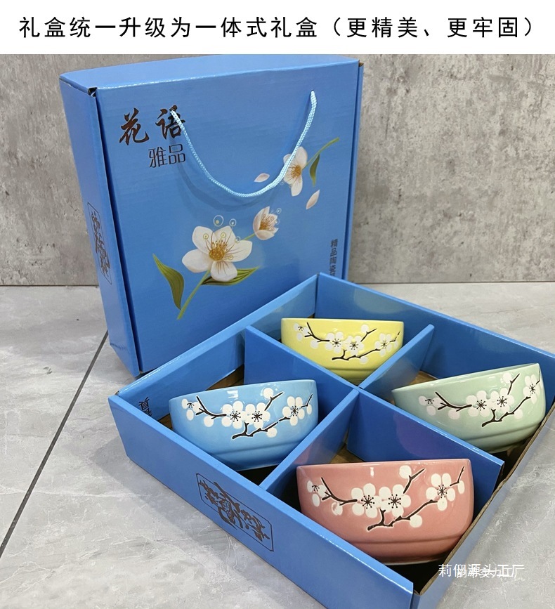 • 연꽃색 복고풍 꽃 그릇 4개와 젓가락