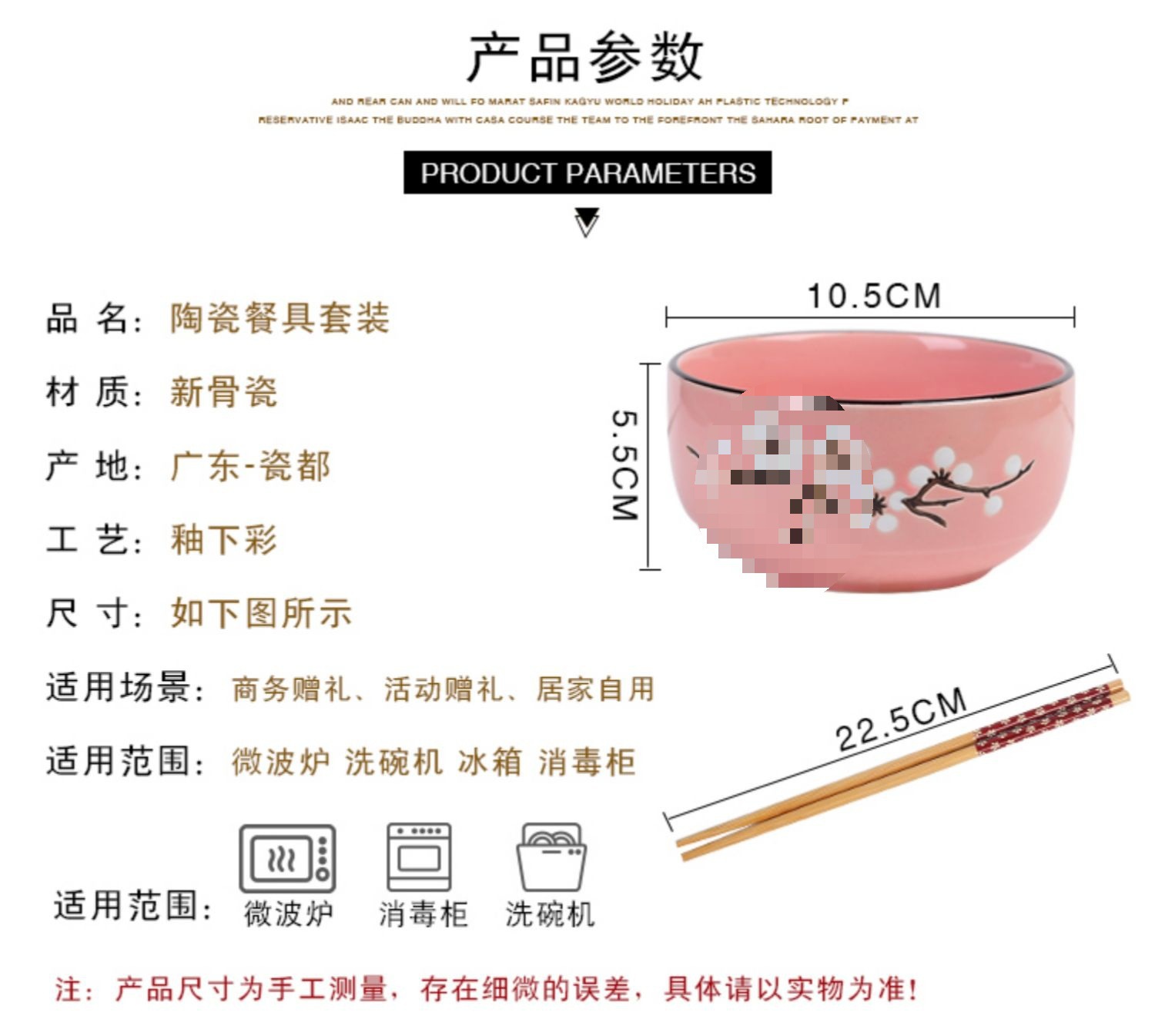 • 행운과 행운을 빕니다 그릇 2개와 젓가락 2개(기계 인쇄 버전)