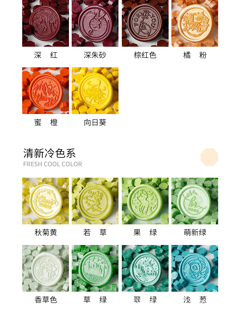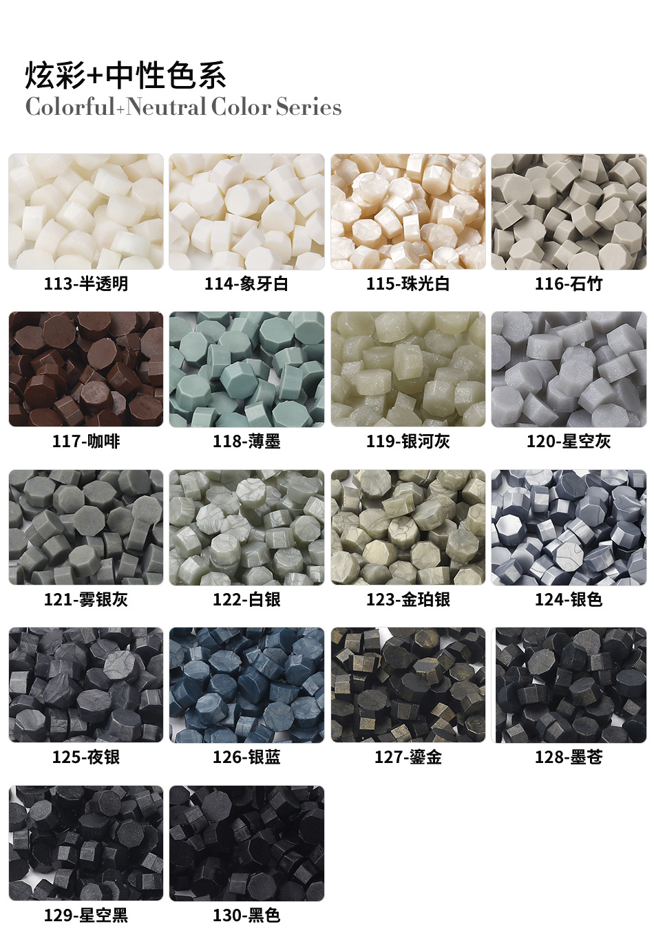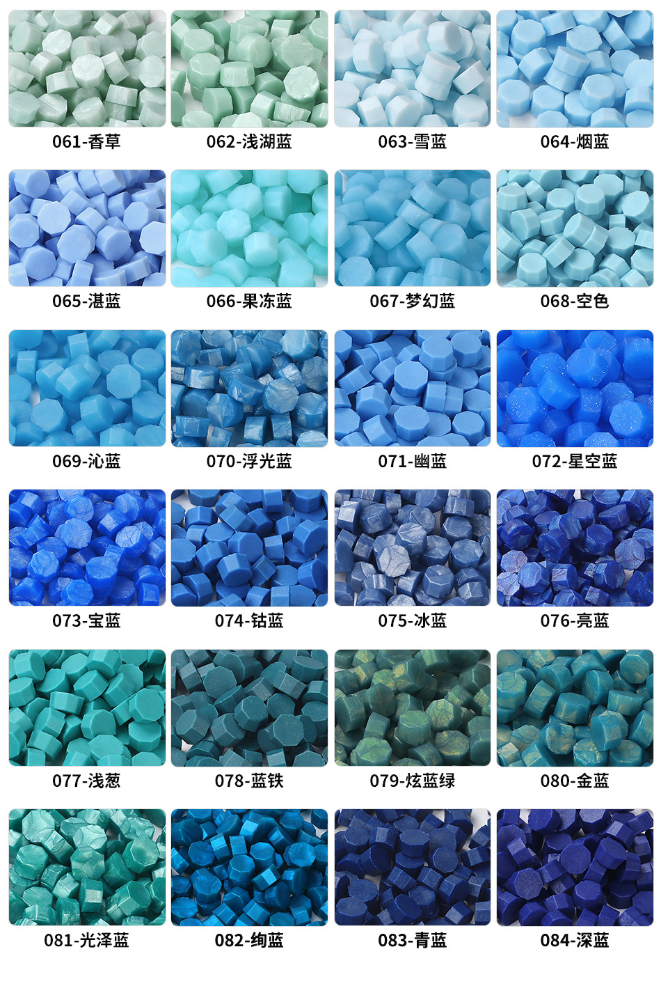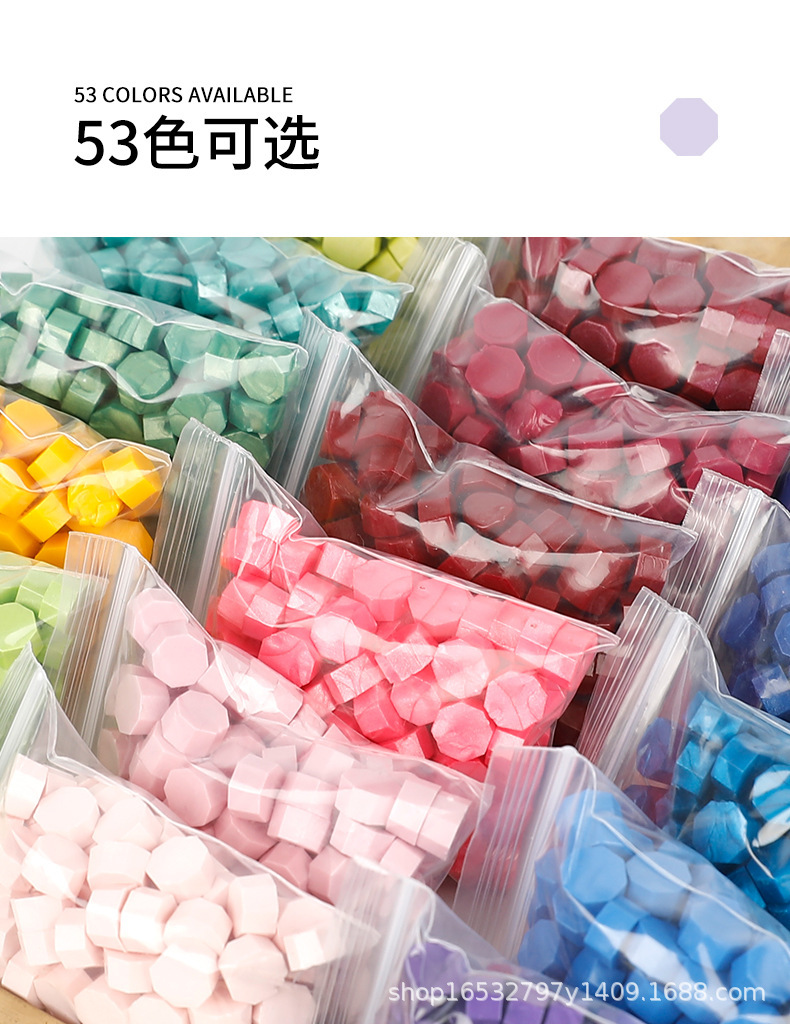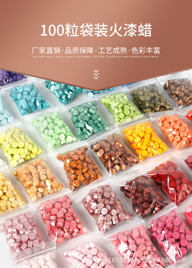 공장 직접 판매 팔각형 작은 파우치 파이어 페인트 왁스 과립 파이어 페인트 씰 씰링 왁스 과립 100 과립 53 색 도매스토어 가기