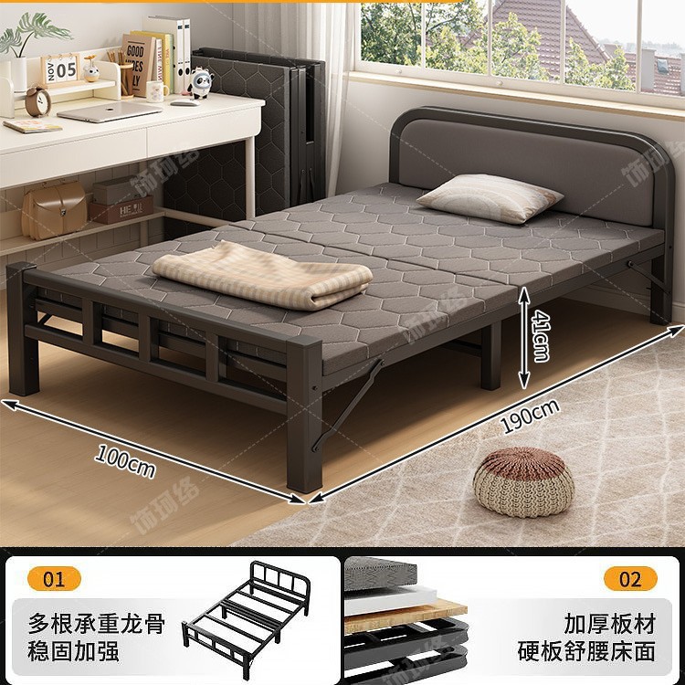 새로운 접이식 침대 가정용 싱글 침대 간단한 점심 시간 유아용 침대 휴대용 1.0m 성인 기숙사 추가 침대 더블 하드 보드